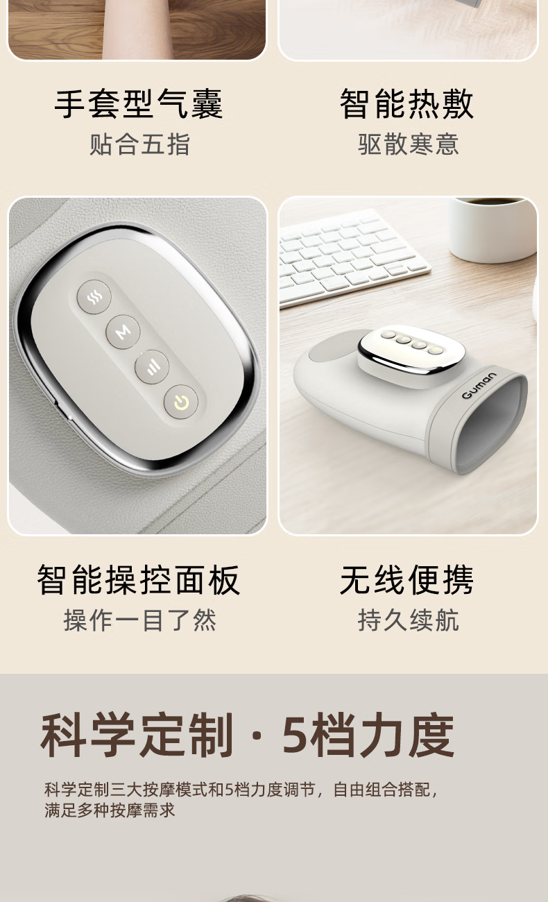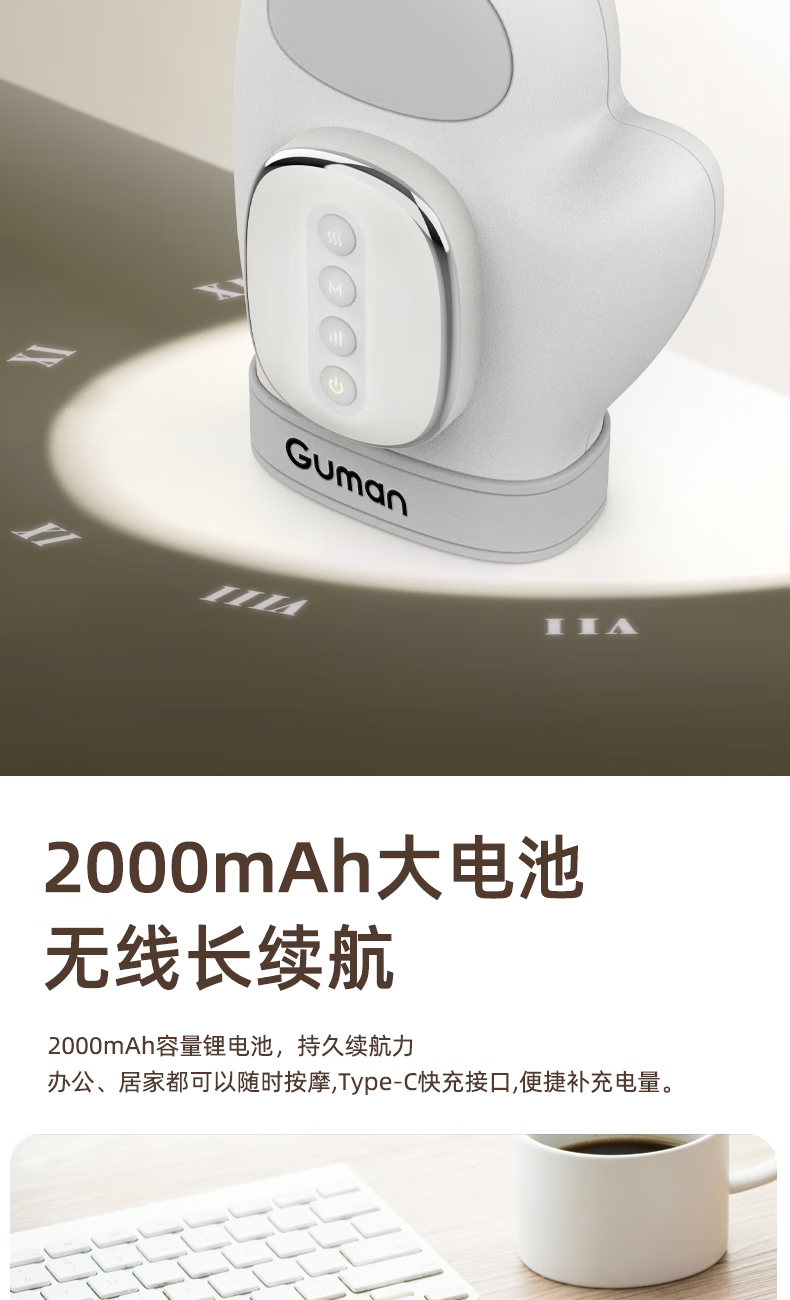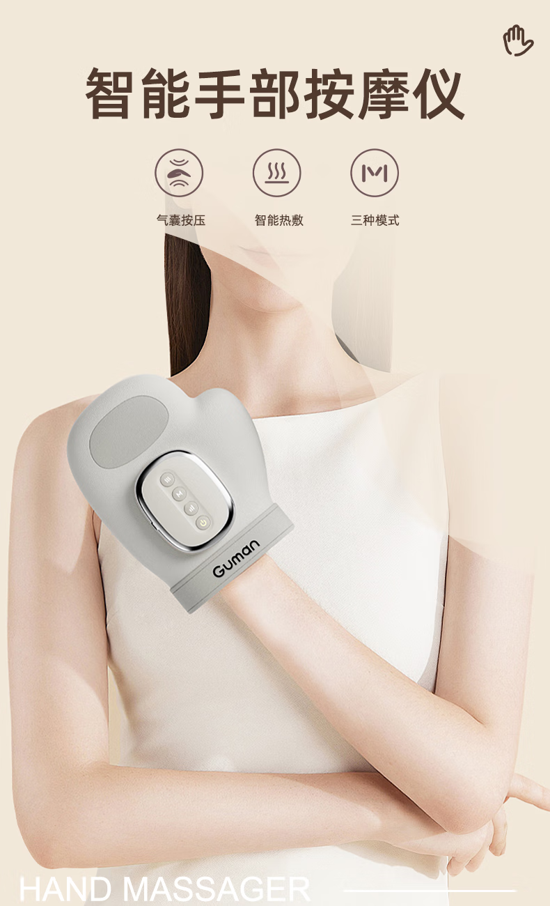 GUMAN official store hand massager for numbness of finger and metacarpal joints, fully automatic kneading acupoints, meridians, hot compresses for relaxation, gray, three modes and five levels of intensity