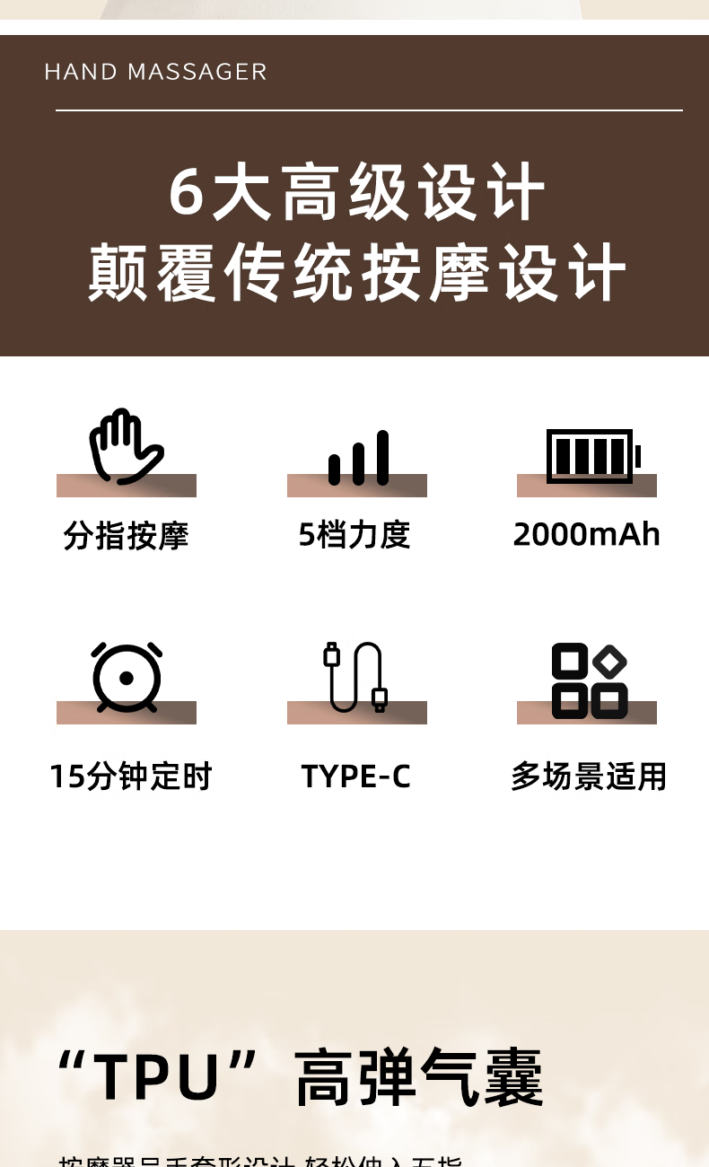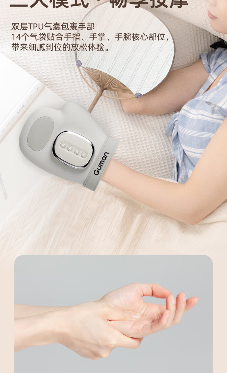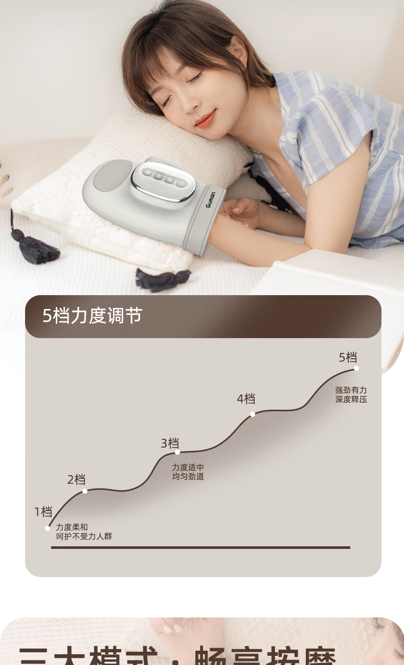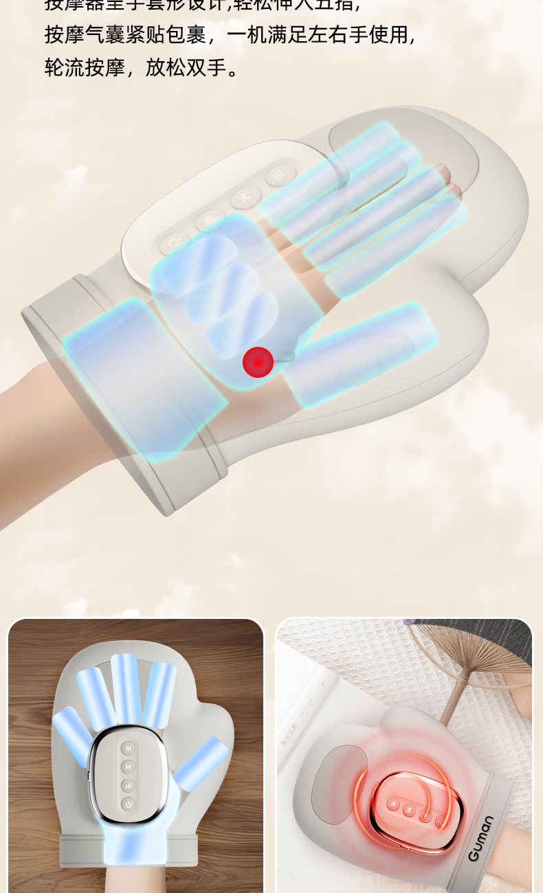 GUMAN official store hand massager for numbness of finger and metacarpal joints, fully automatic kneading acupoints, meridians, hot compresses for relaxation, gray, three modes and five levels of intensity