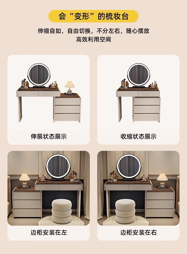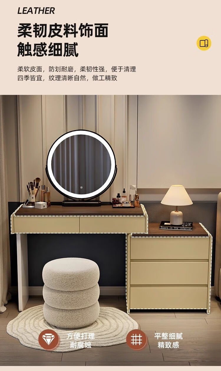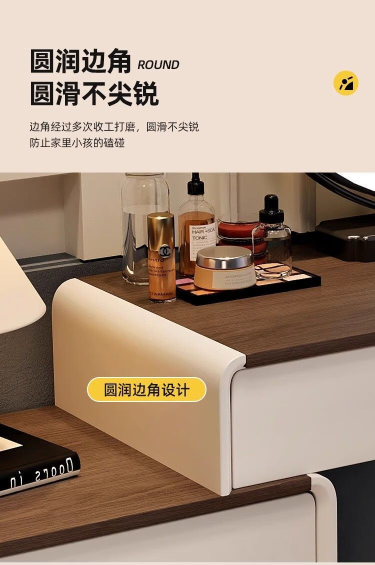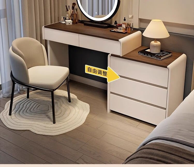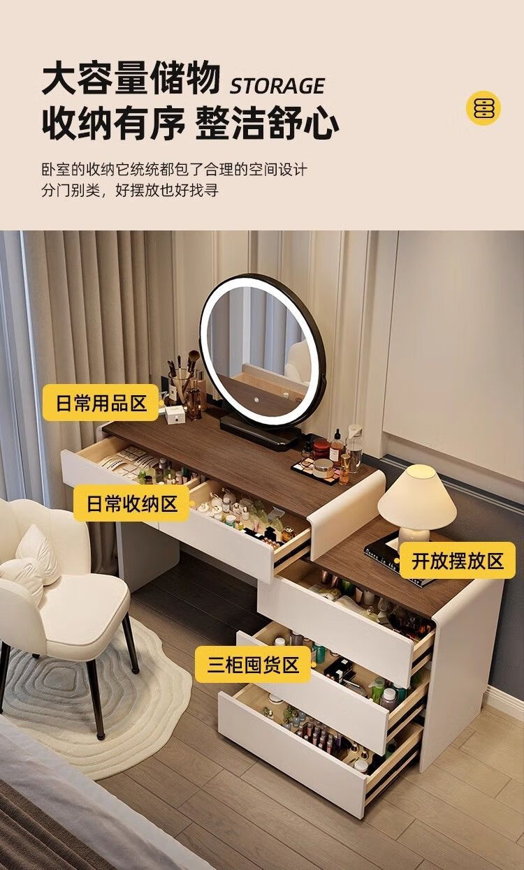 Ogisen Dressing Table Modern Simple Drawer Cabinet Integrated Dressing Cabinet Small Apartment Cream Style Bedside Cabinet Bedroom Solid Wood Dressing Table Solid Wood White Table 80+ Cabinet + Round Mirror + Petal Chair