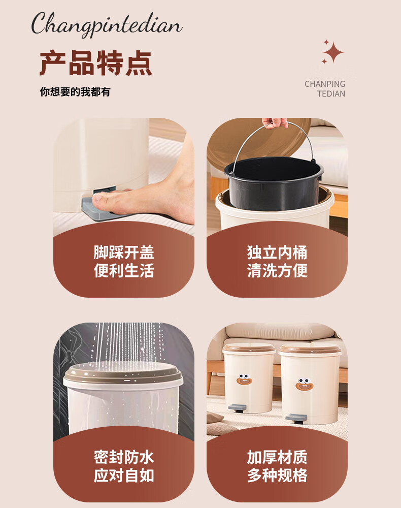 2025 New Toilet Bathroom Covered Kitchen Living Room Foot Trash Can Large Large Capacity Foot Trash Bucket 4040 Thickened Random Color