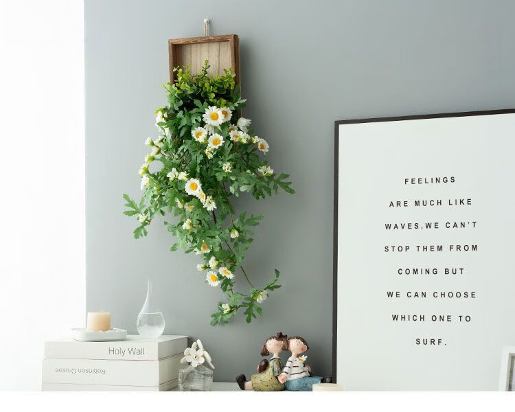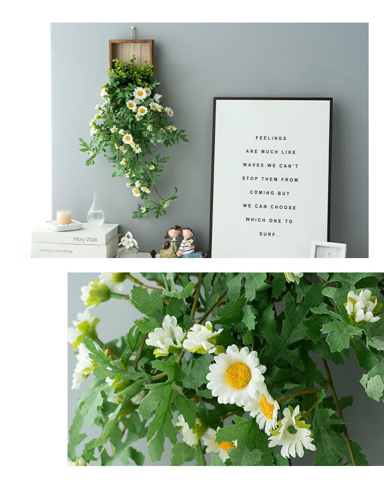 LZJVins style small daisy wall hanging artificial flower vines and vine strips wrapped around the wall to block the decoration of green plants and artificial flowers wall decorations. Daisy wall hanging comes with free traceless nails. A complete set