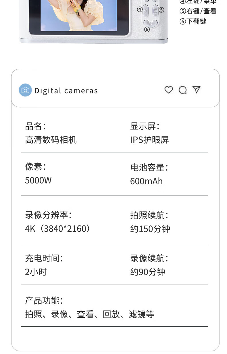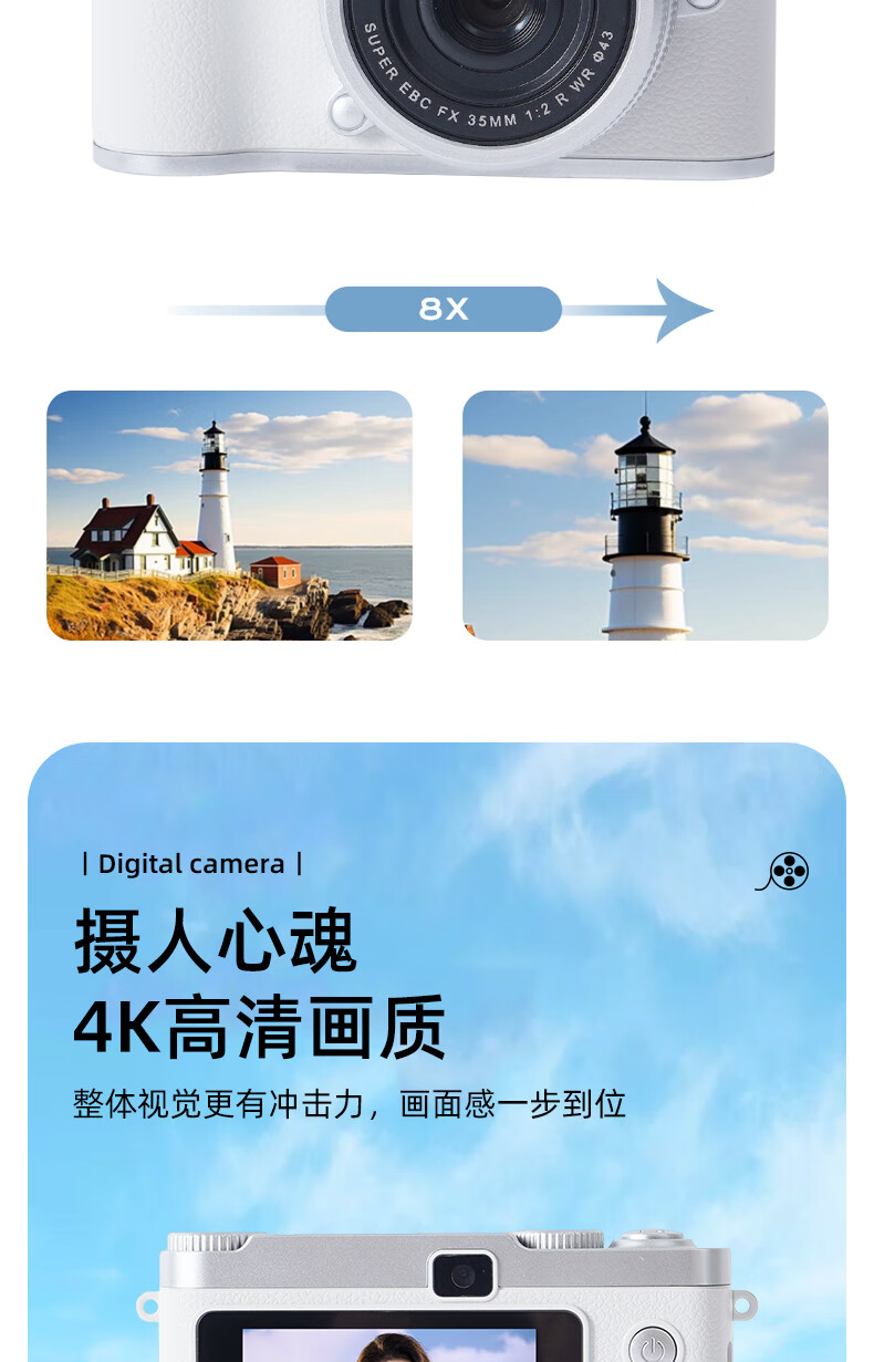 HKMW Canon machine (CANNO) same model Gu Xixi same model dual camera retro student selfie ccd digital camera HD CCD campus portable H6 white (HD dual camera + flash) gift box 128G high-speed memory card + photo guide gift bag