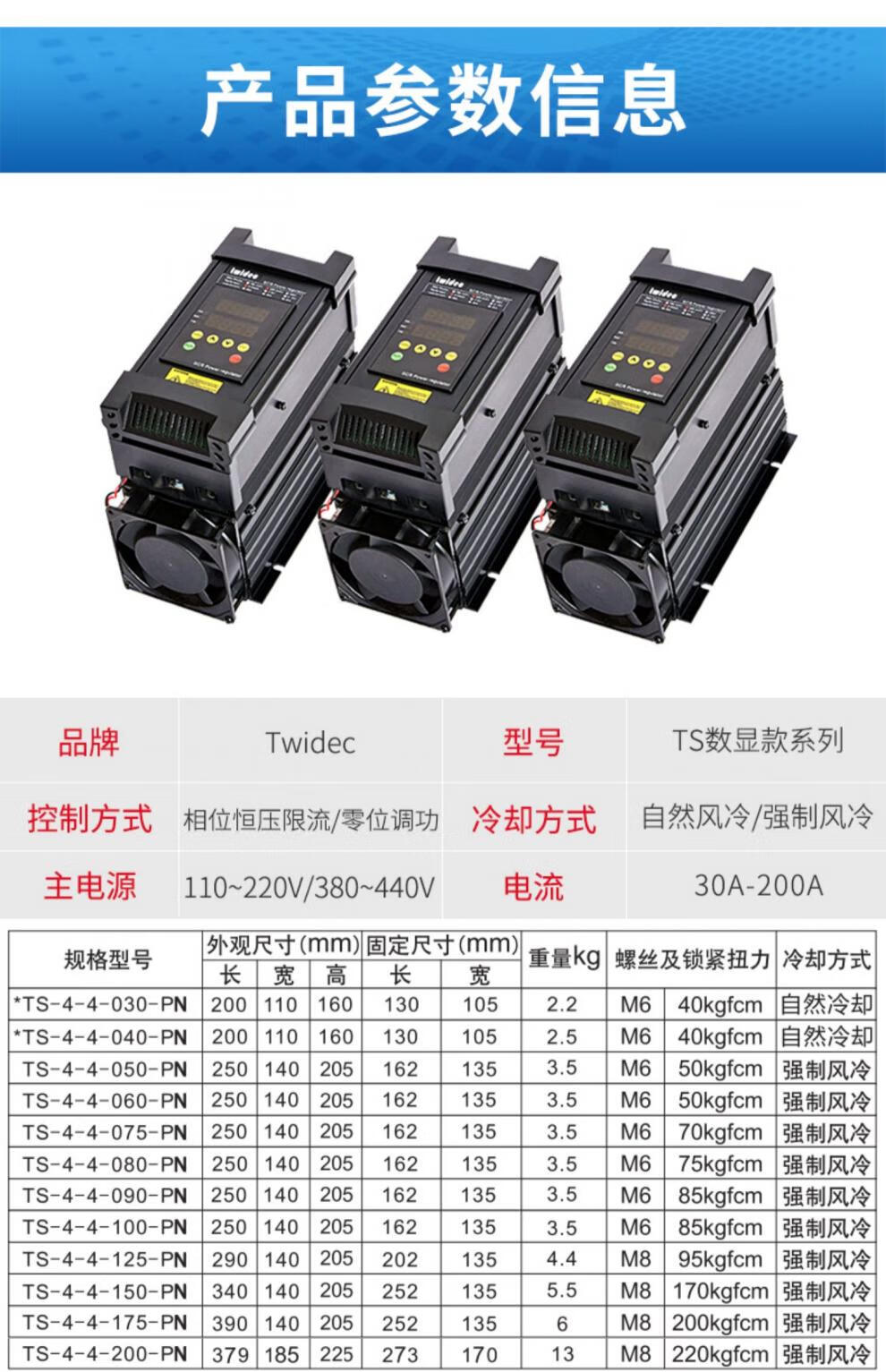 Twidec Hequan TS digital display three-phase power regulator SCR silicon controlled power control regulator 30-175A TS-4-4-200-PN 200A