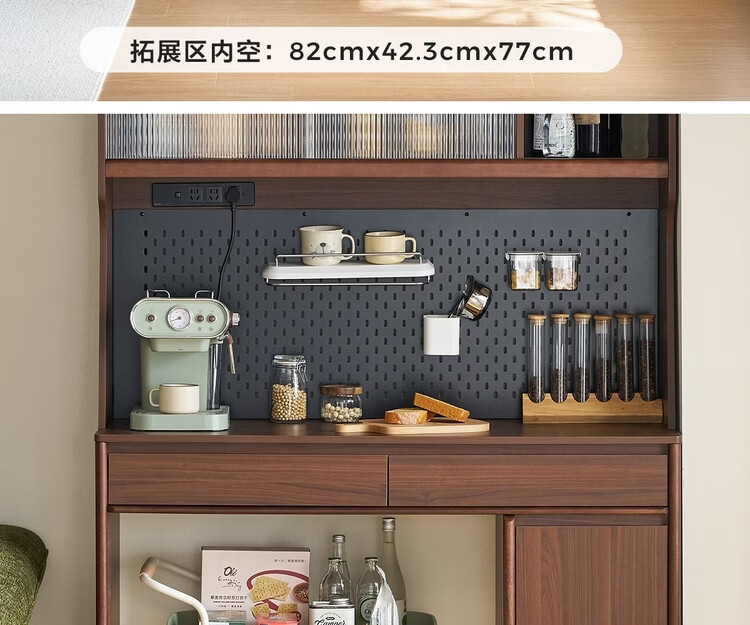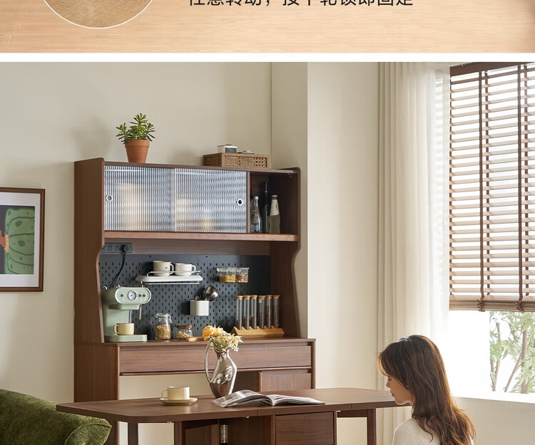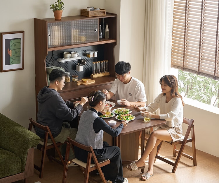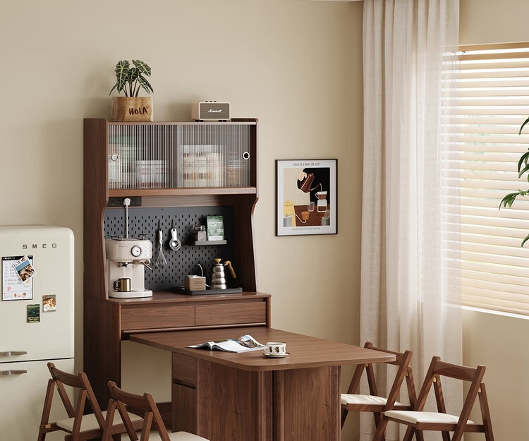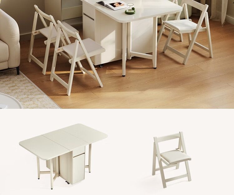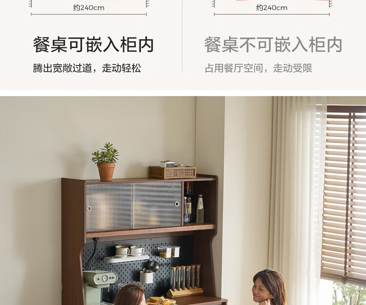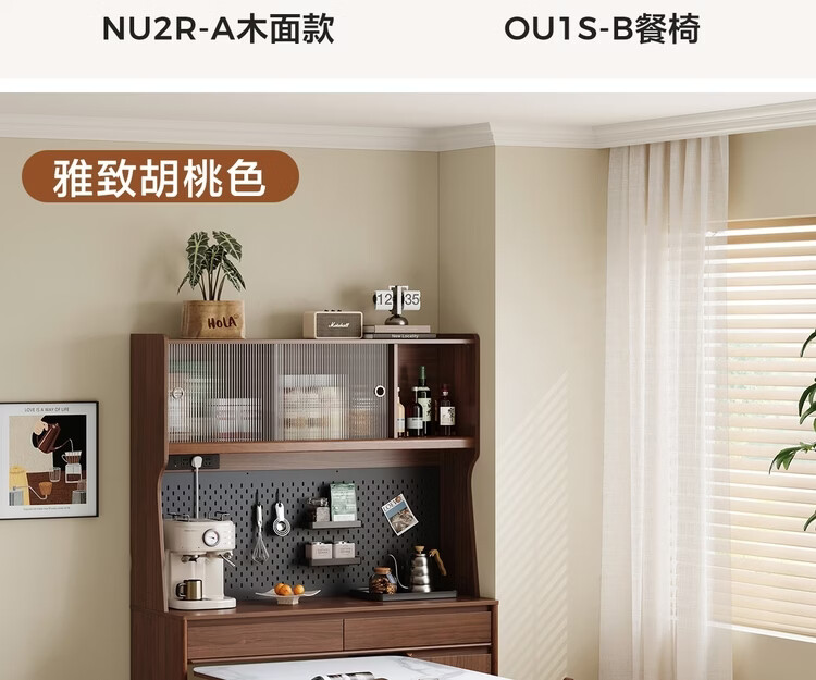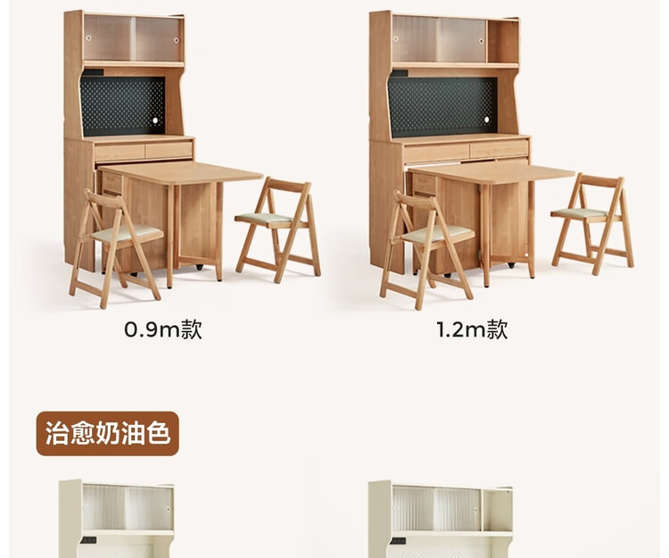 Lin's home multi-functional sideboard with dining table, integrated wall storage cabinet, small apartment storage high cabinet furniture NU11T Cream | 1.2m slate style 1 cabinet, 1 table and 4 chairs