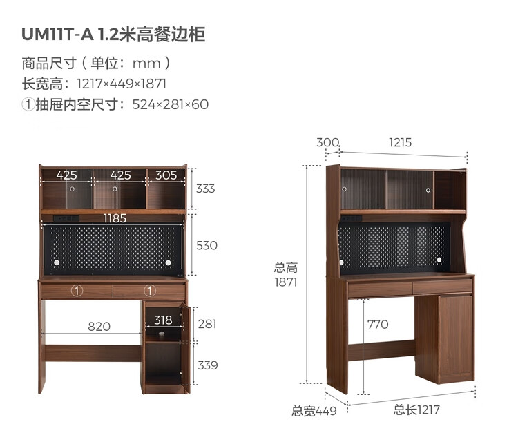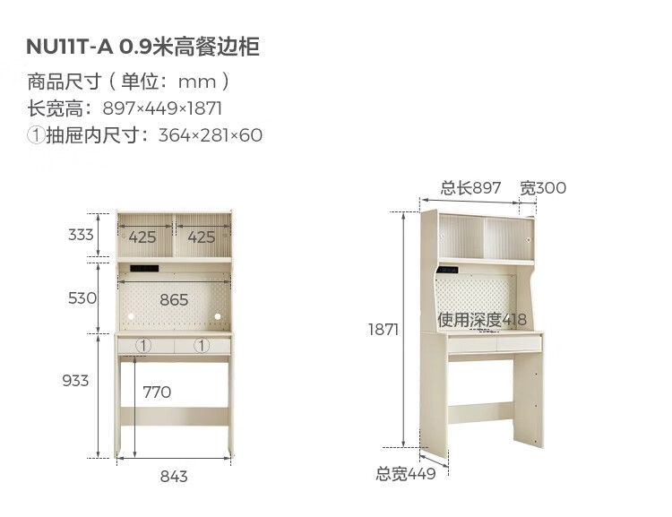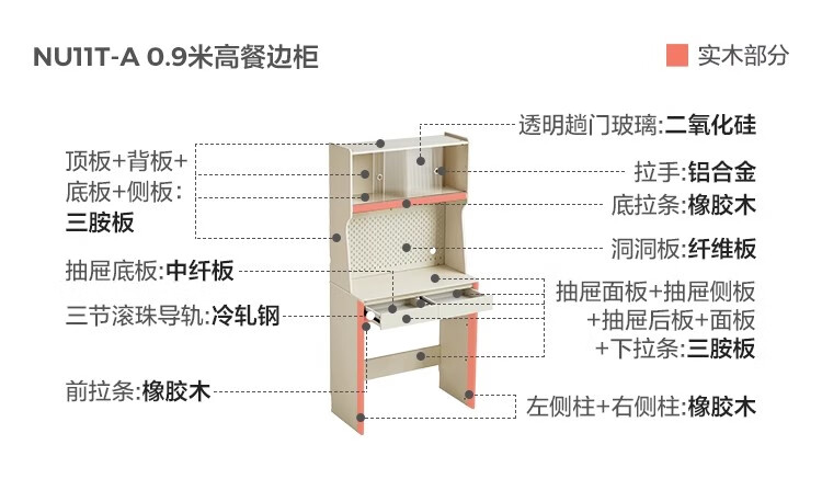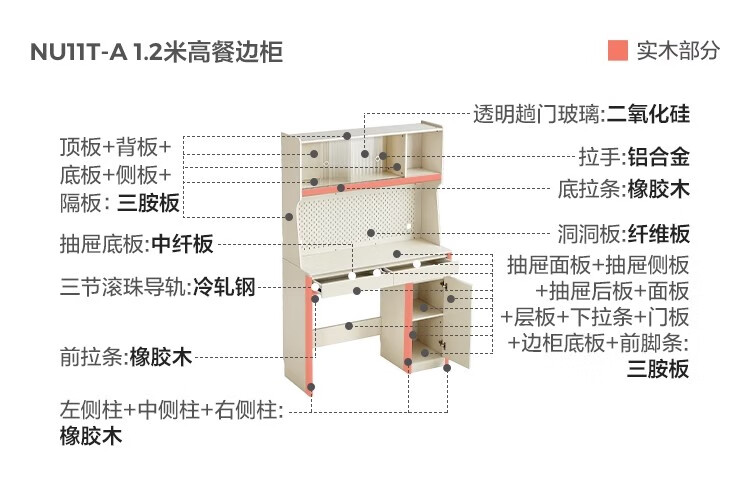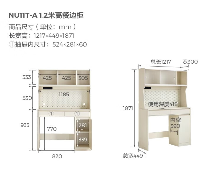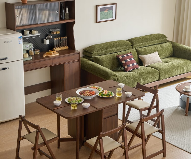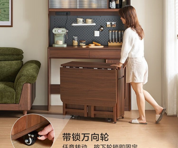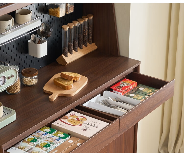 Lin's home multi-functional sideboard with dining table, integrated wall storage cabinet, small apartment storage high cabinet furniture NU11T Cream | 1.2m slate style 1 cabinet, 1 table and 4 chairs