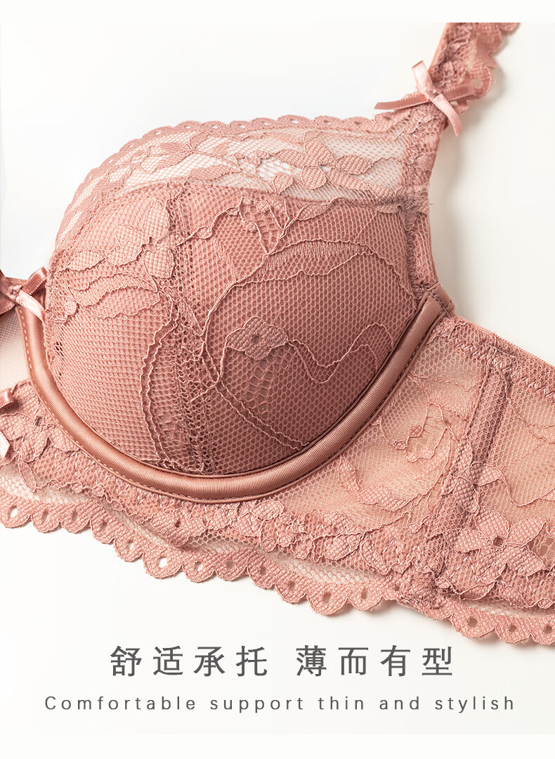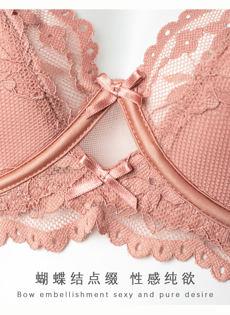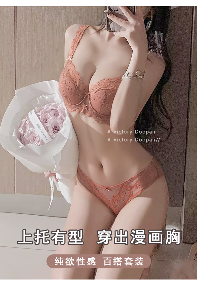 Victoria's style sexy secret French lace underwear for women push up small breasts thin anti-sagging sexy bra set apricot suit 75B 34
