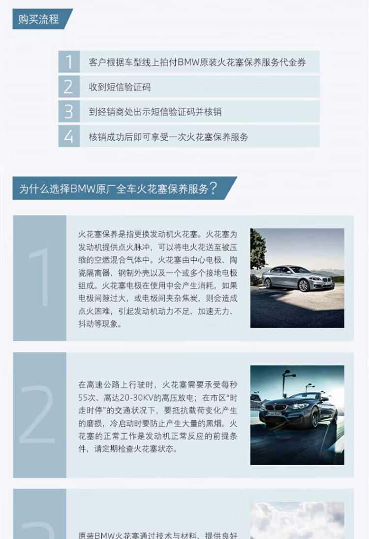 BMW Official Original Car Engine Spark Plug Maintenance Service Voucher B Series Engine 4 Cylinder-Non-F35&F30