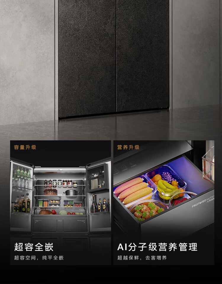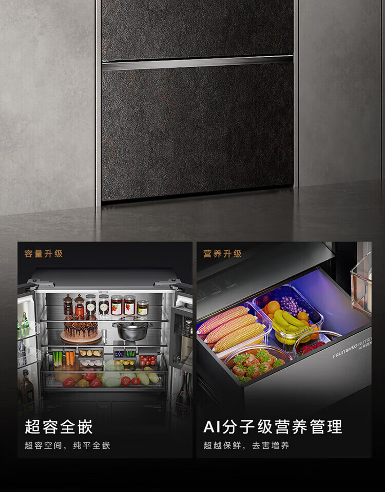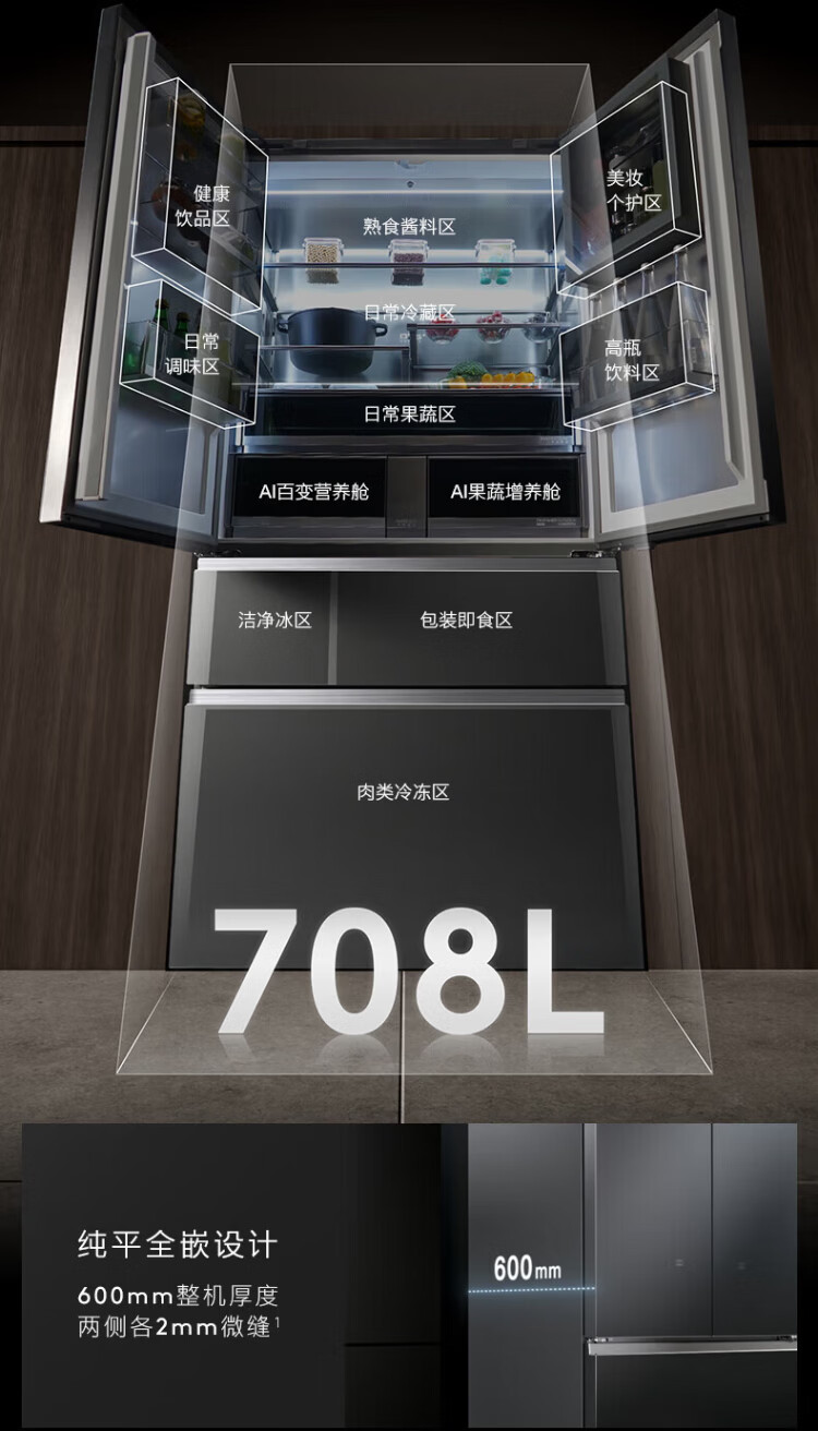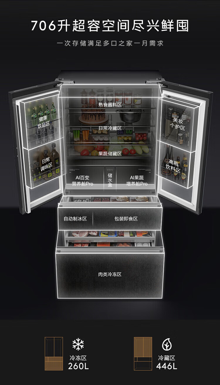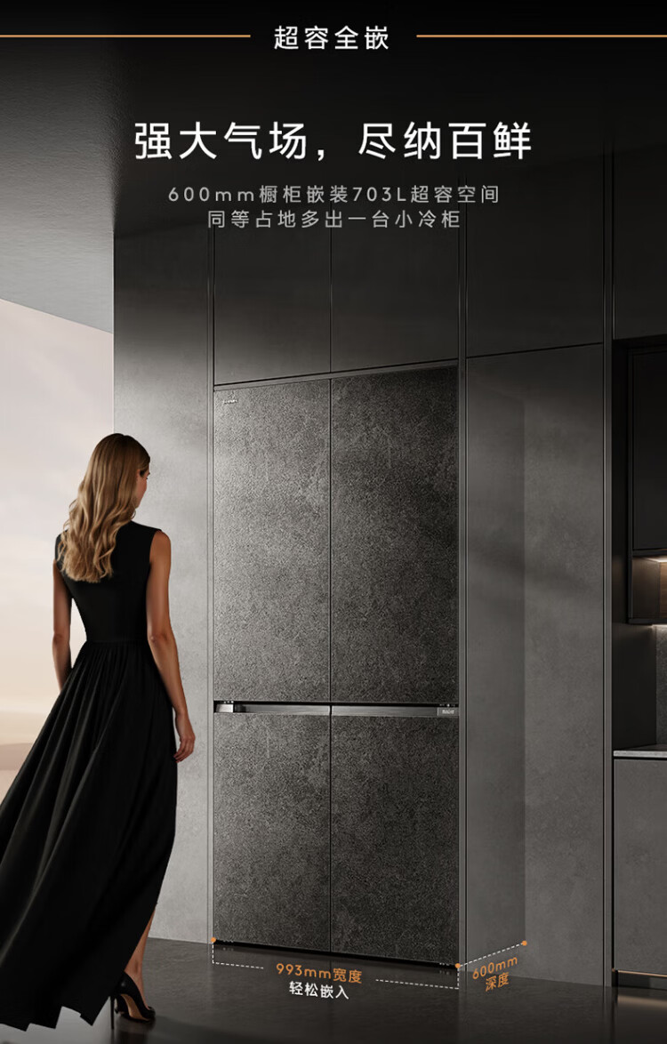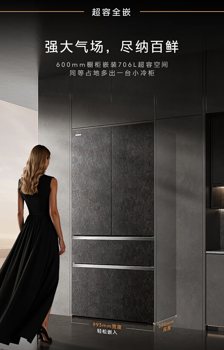 COLMO706L French four-door 703L cross-shaped four-door super-capacity fully embedded antibacterial, odor-free and fresh-keeping automatic ice-making household smart large refrigerator The store manager recommends 706L French four-door-Lava Mantle Rock