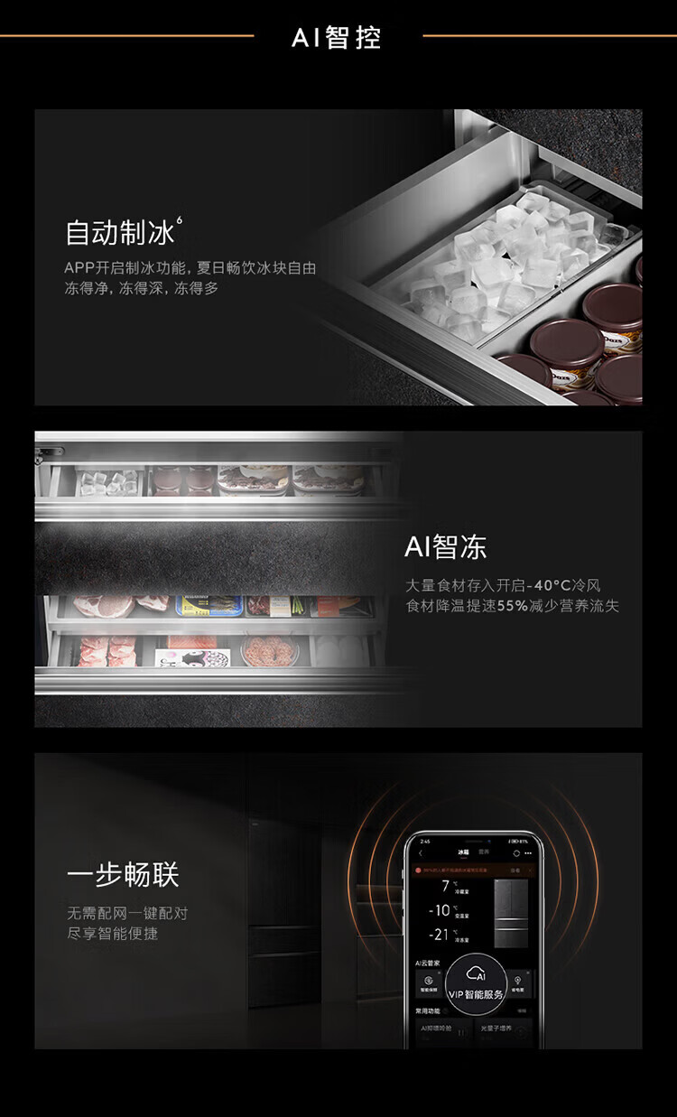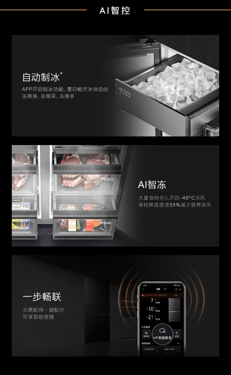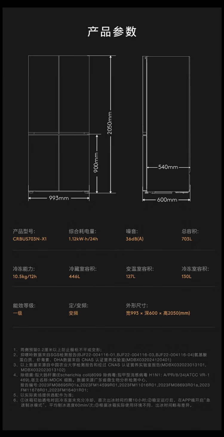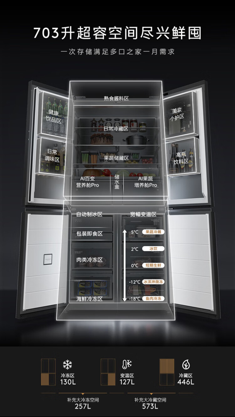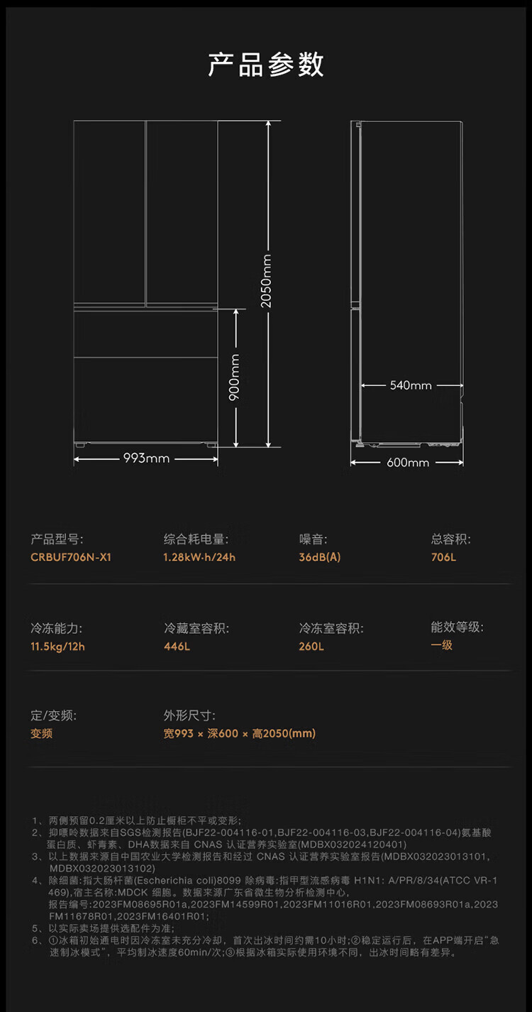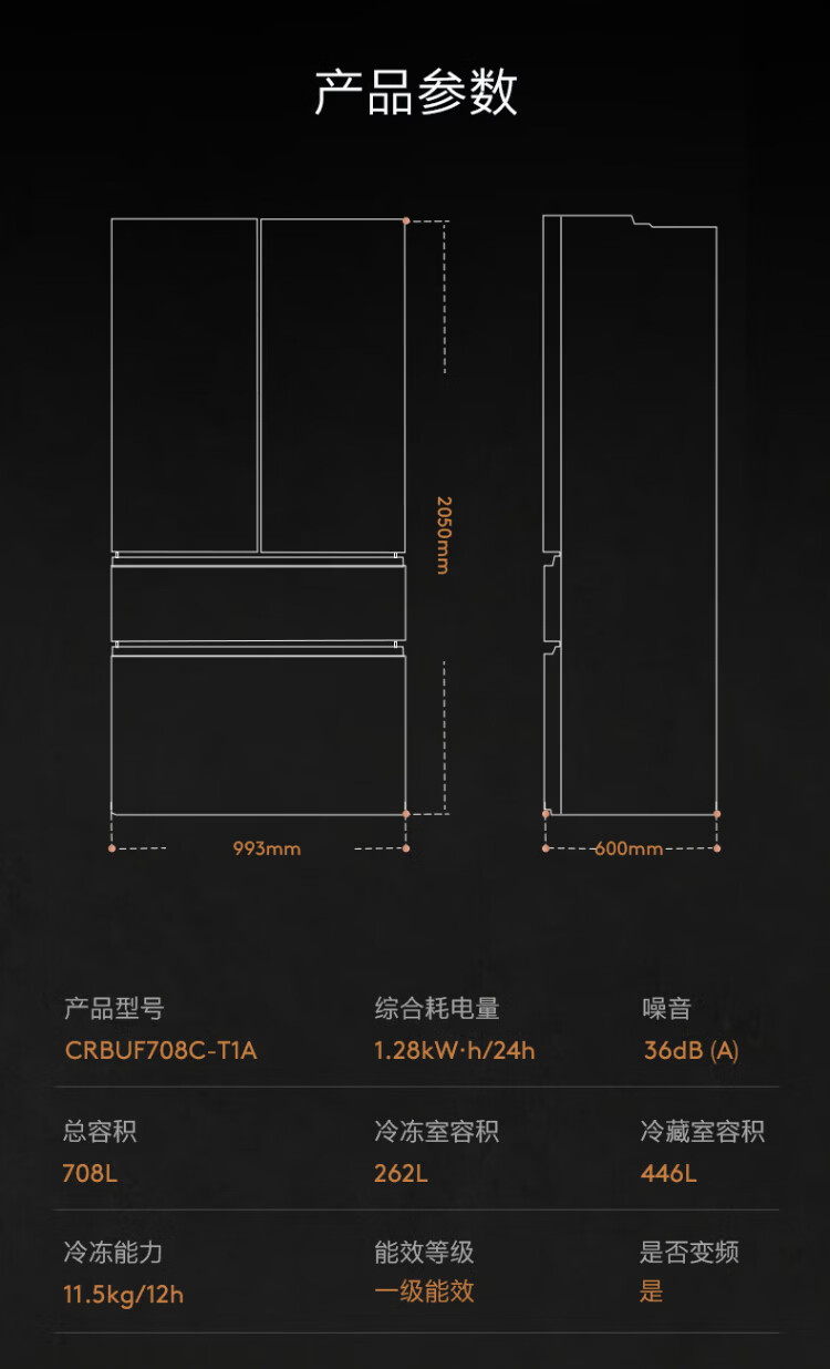 COLMO706L French four-door 703L cross-shaped four-door super-capacity fully embedded antibacterial, odor-free and fresh-keeping automatic ice-making household smart large refrigerator The store manager recommends 706L French four-door-Lava Mantle Rock