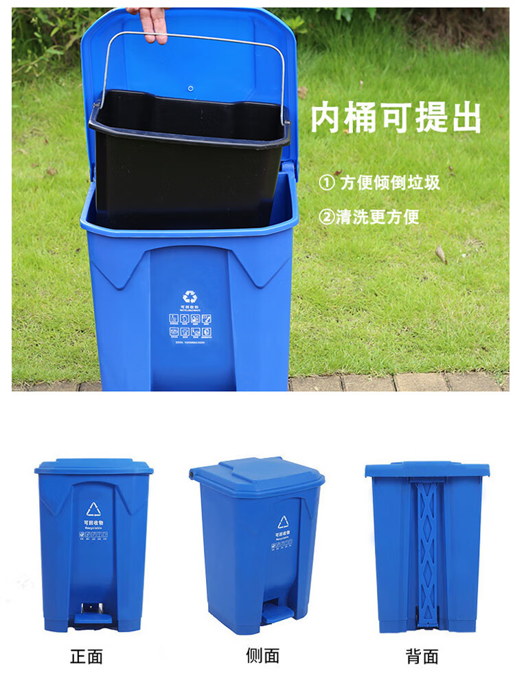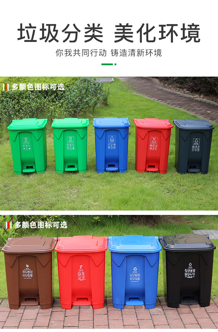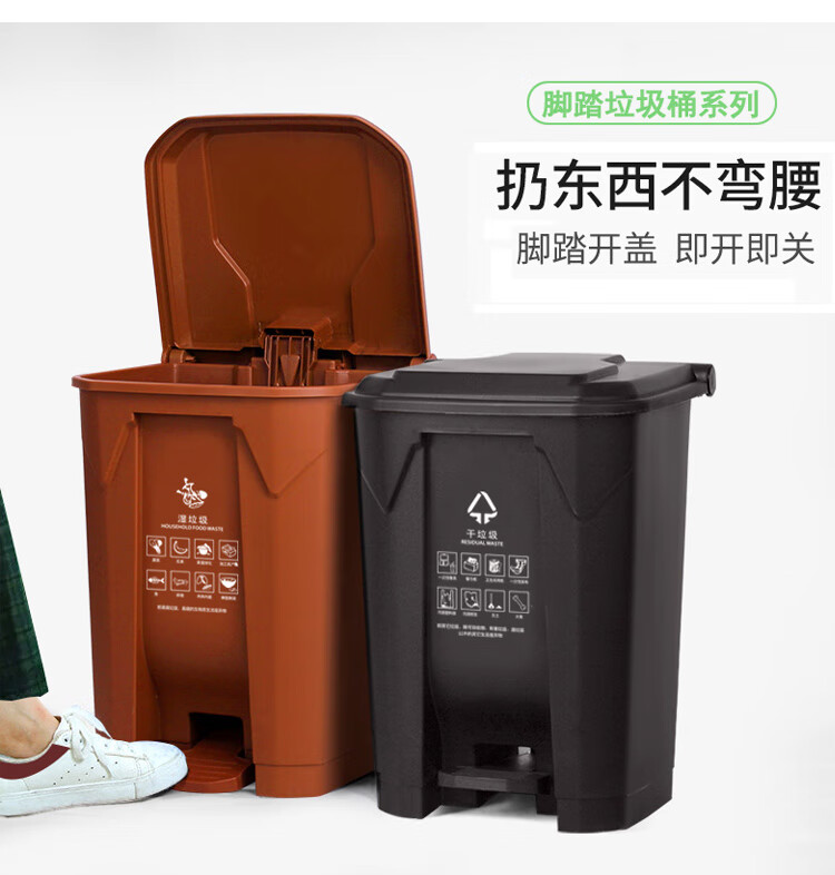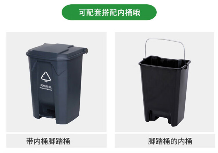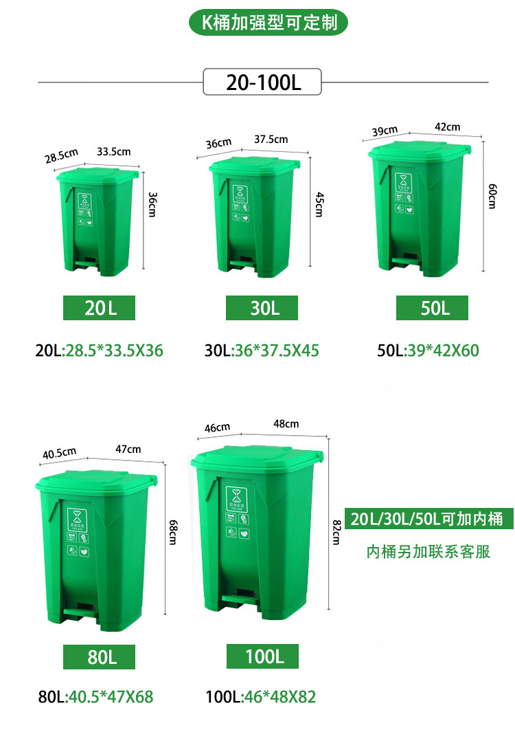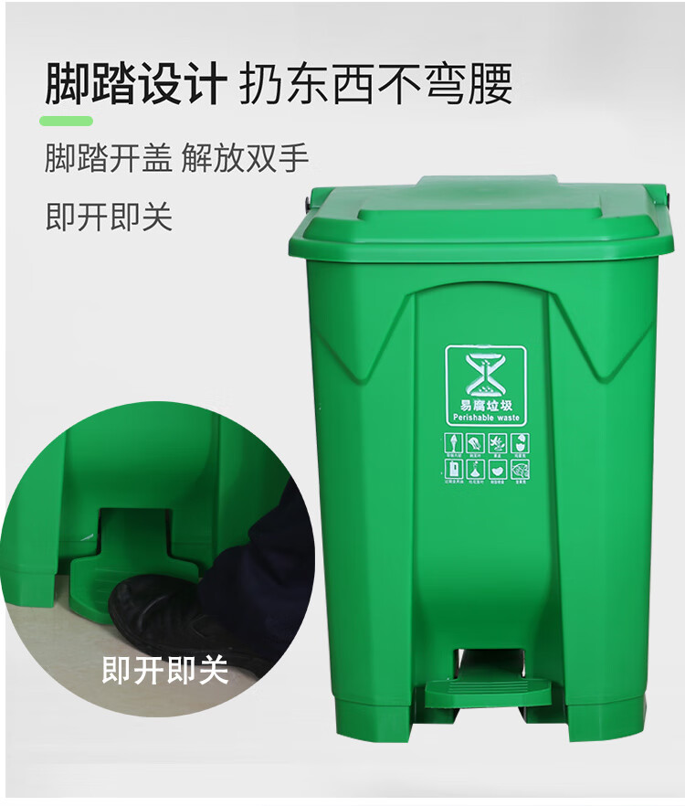 Pedal-operated trash can for commercial garbage classification, large with lid, kitchen, hotel, red, blue, green, gray, outdoor, 100L80, 15 liters of green food waste + inner barrel (comes with garbage bag)