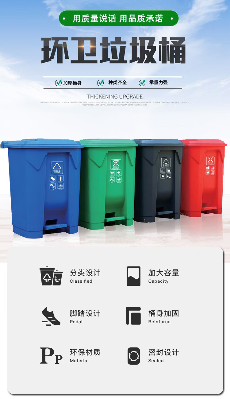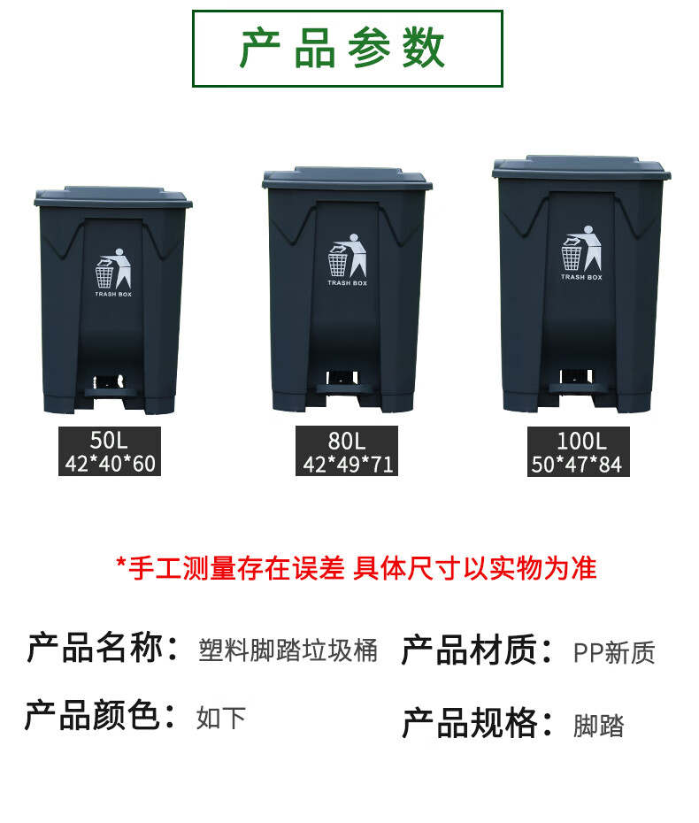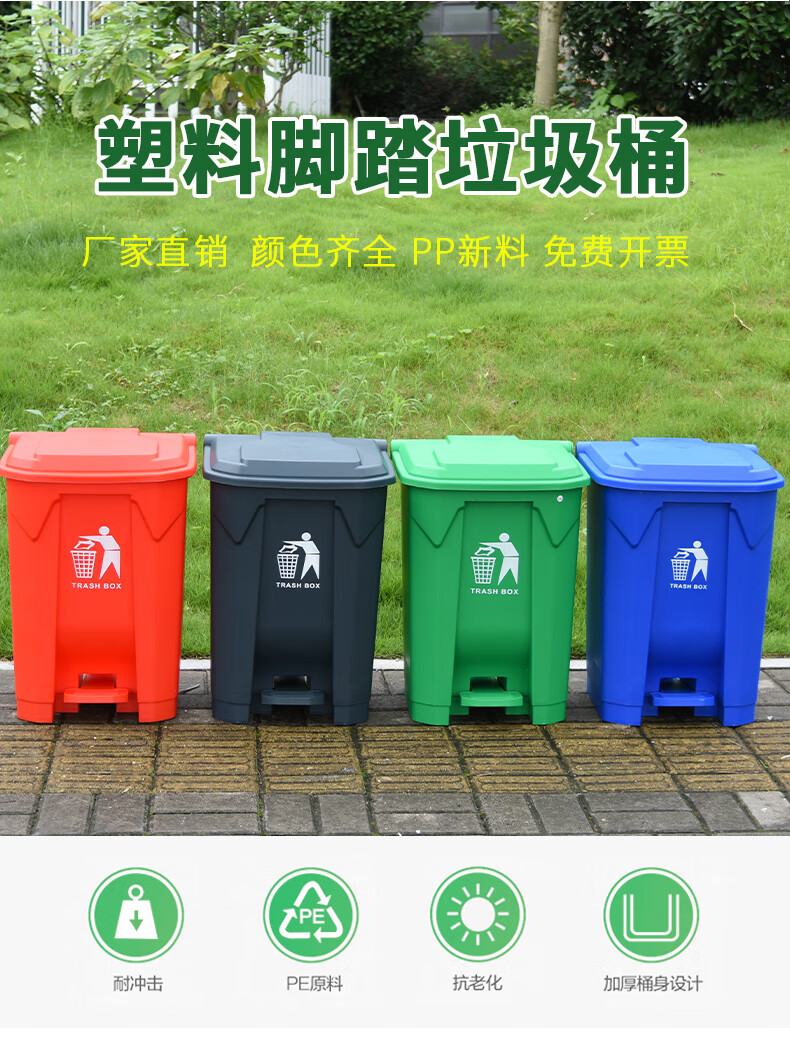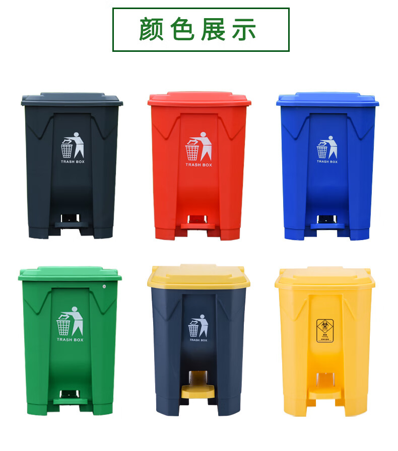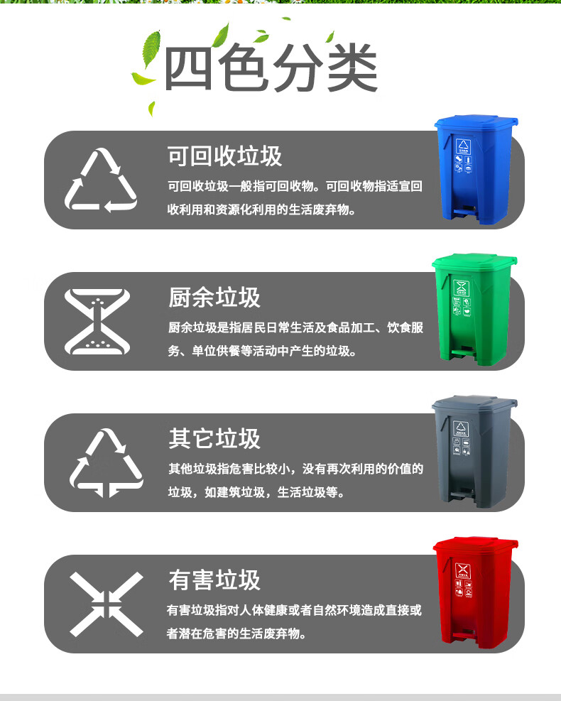 Pedal-operated trash can for commercial garbage classification, large with lid, kitchen, hotel, red, blue, green, gray, outdoor, 100L80, 15 liters of green food waste + inner barrel (comes with garbage bag)