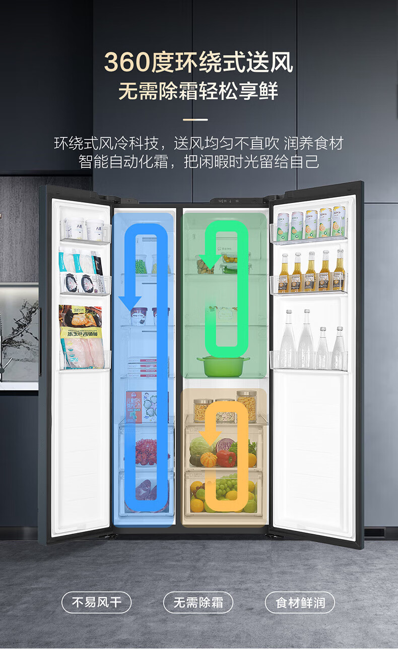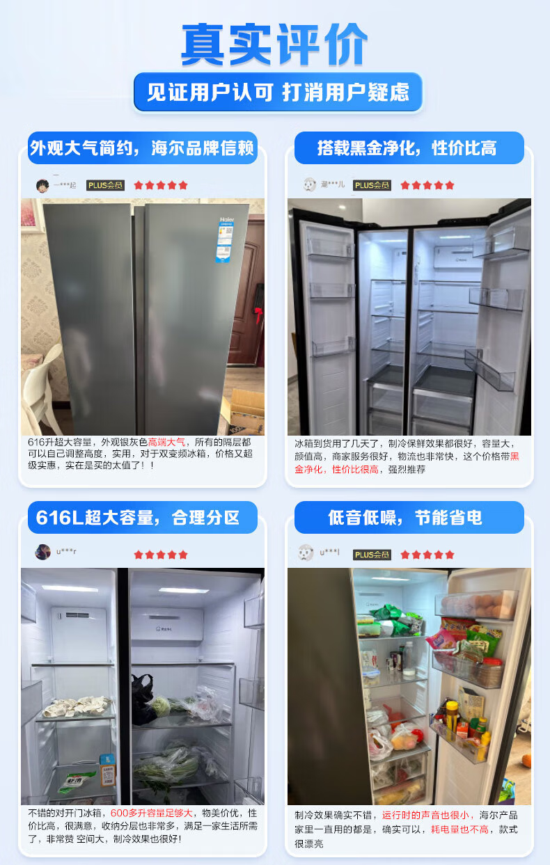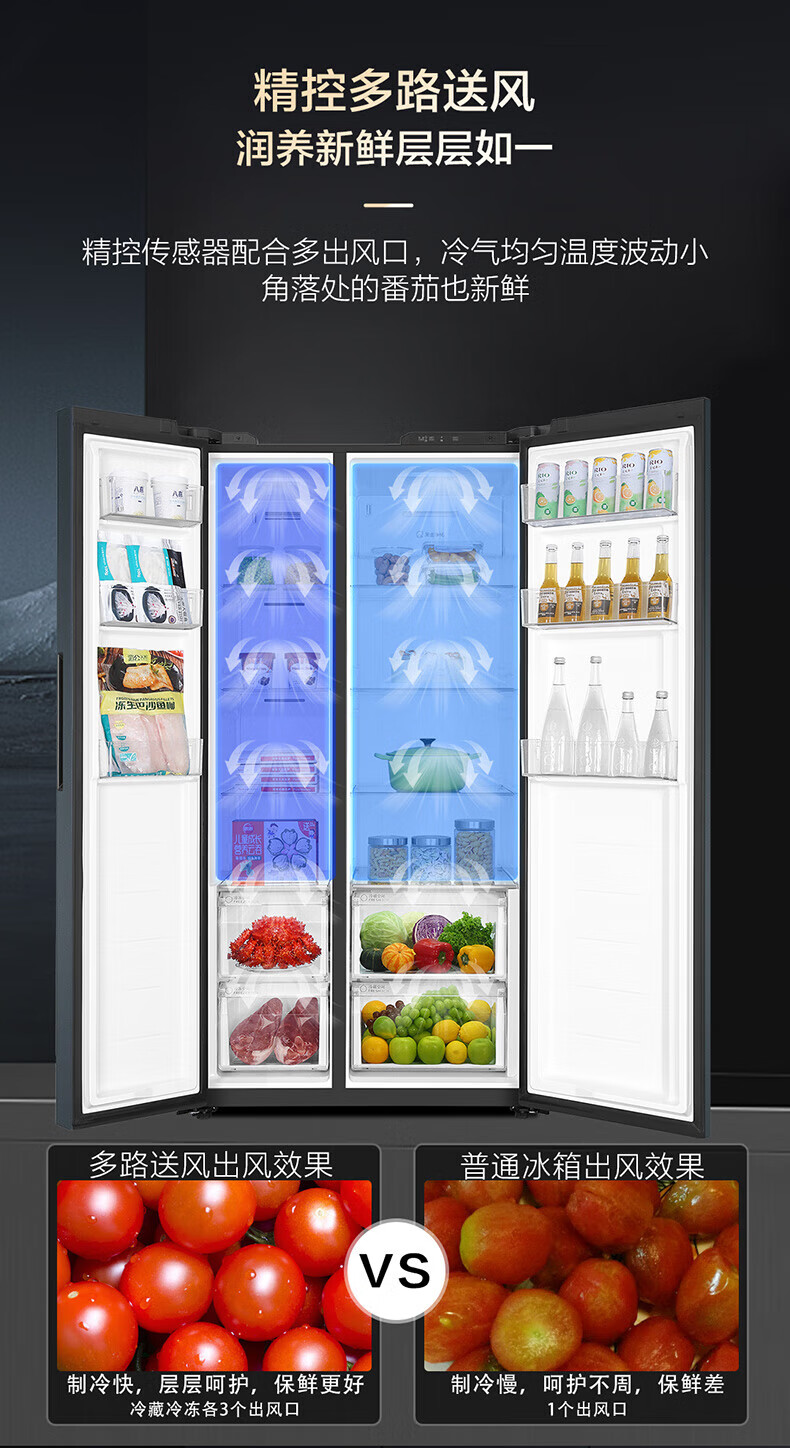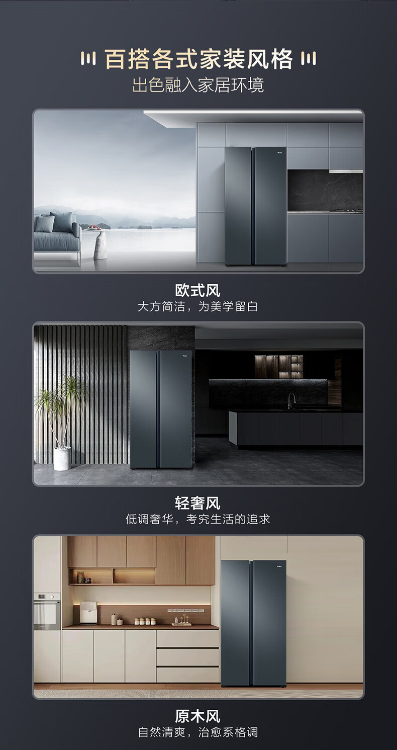 Haier refrigerator double door 616 liter large capacity refrigerator household side-by-side refrigerator first-class energy efficiency variable frequency large capacity ultra-thin household refrigerator air-cooled and frost-free black gold purification + free package installation BCD-616WGHSSEDC9