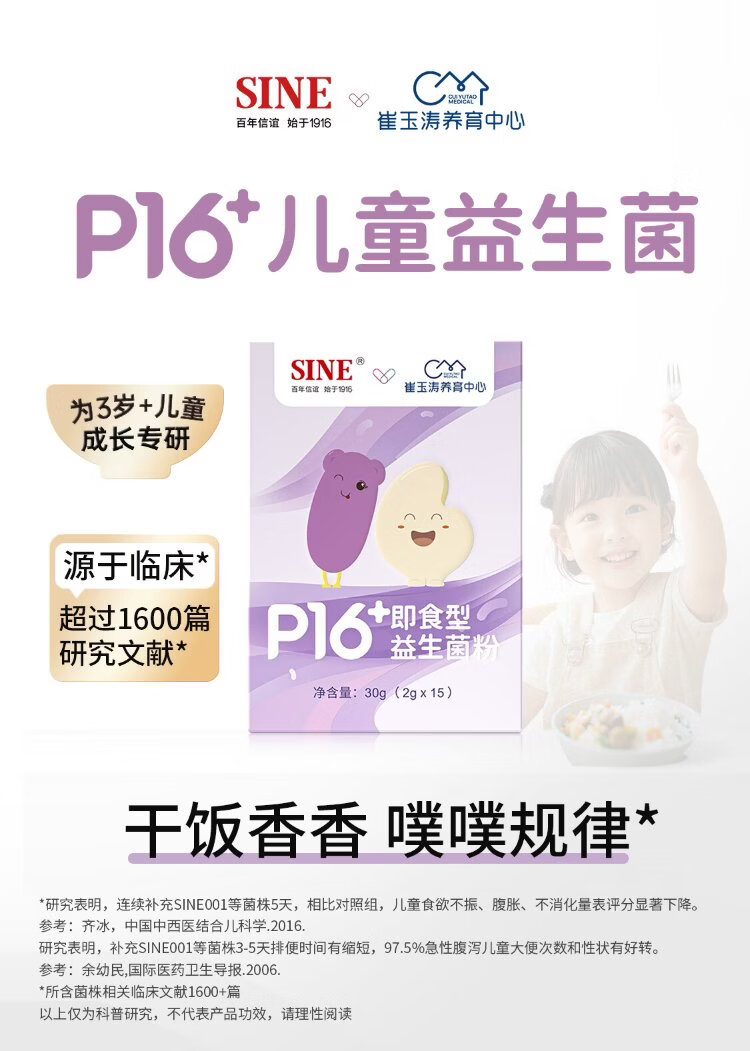 Xinyi SINE Cui Yutao team jointly researched P16+ children's probiotics for baby development and growth dry rice fungus SINE006 15 pieces * 4 boxes dry rice, puff-accelerated colonization package Plus
