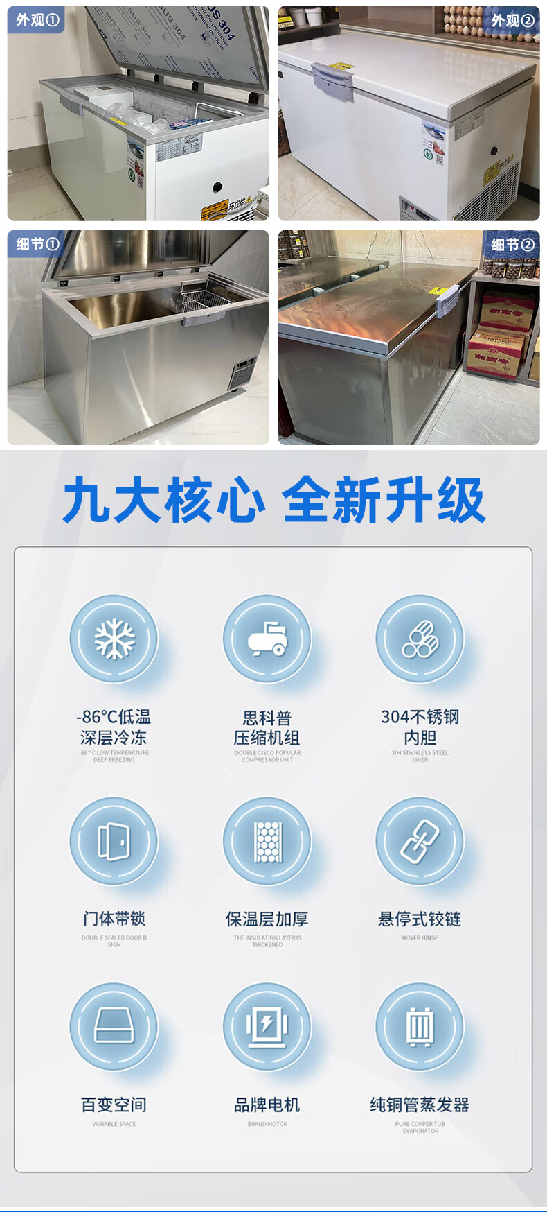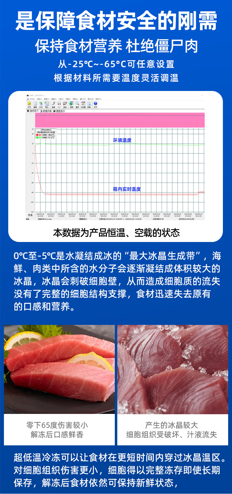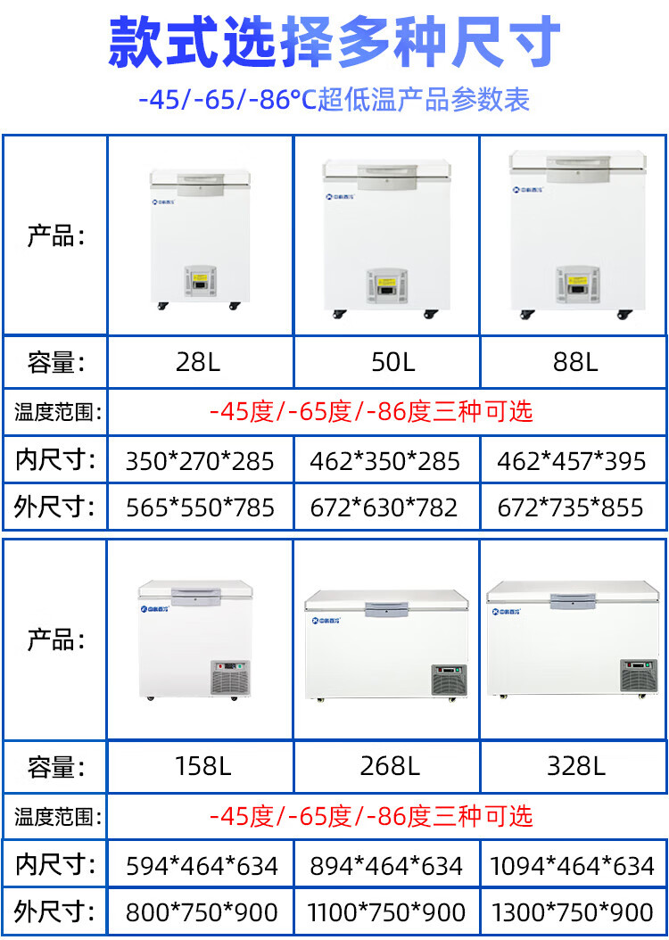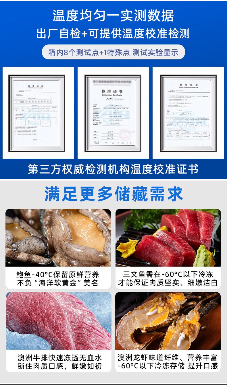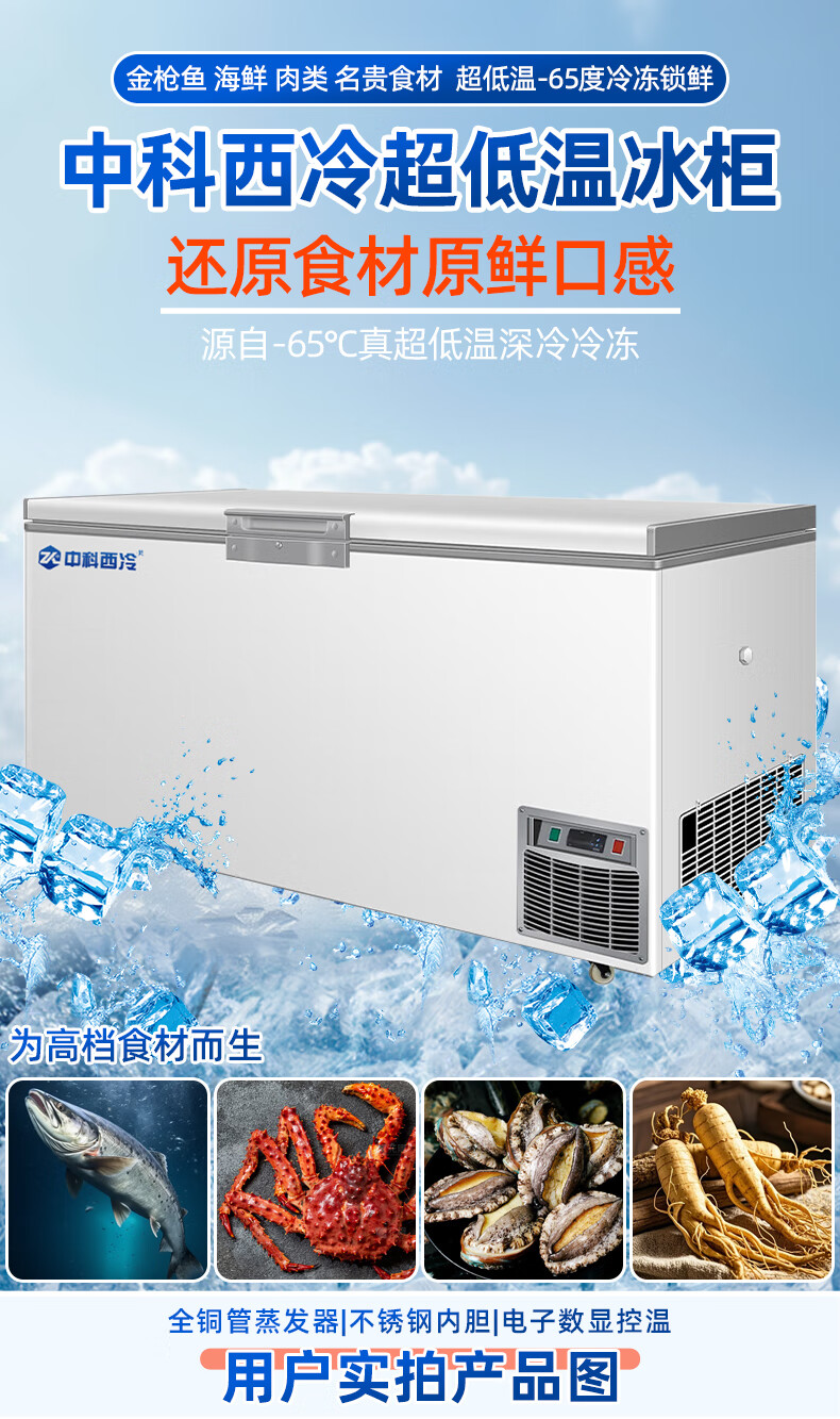 Zhongke Siren ultra-low temperature freezer -60 degrees Frozen tuna seafood large capacity household storage horizontal refrigerator - 40-80 cell level cryogenic high-end food storage box 328L (three options available) -65 degrees (-25 degrees to -65 degrees adjustable)