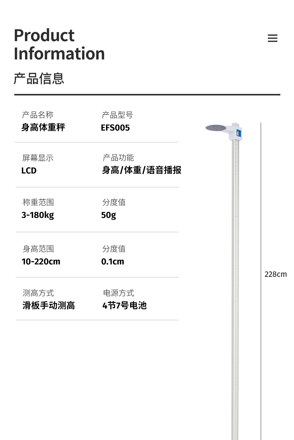 Huachao height and weight scale measuring instrument for adults and children, home school, kindergarten, hospital, physical examination, pharmacy, high-precision all-in-one sub-scale EFS005 automatic voice broadcast