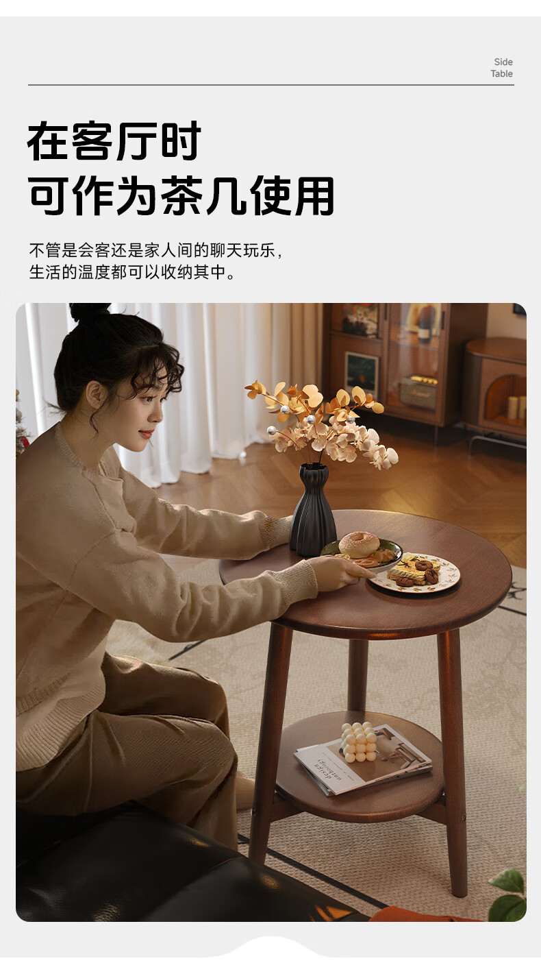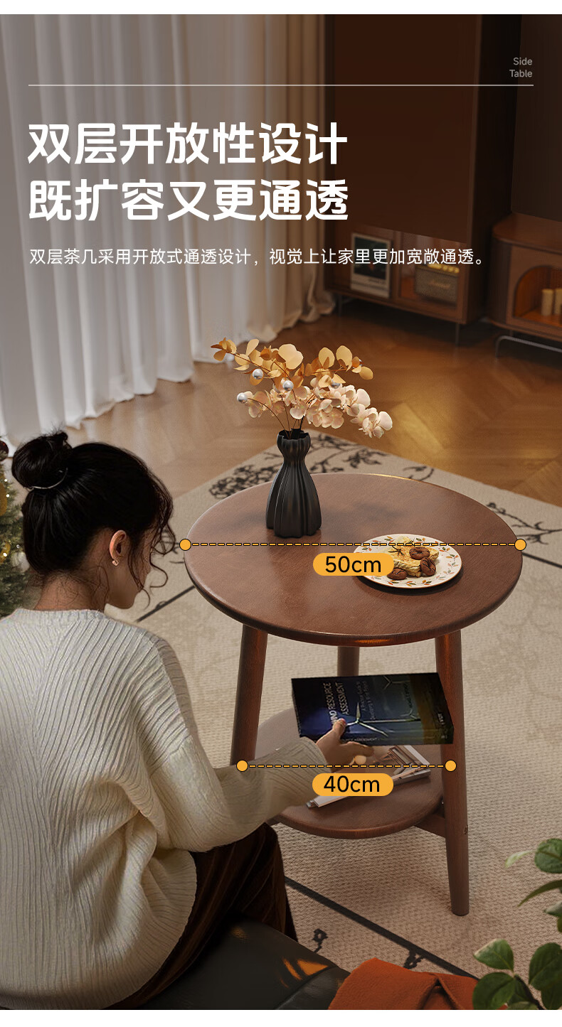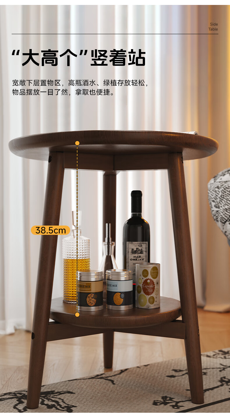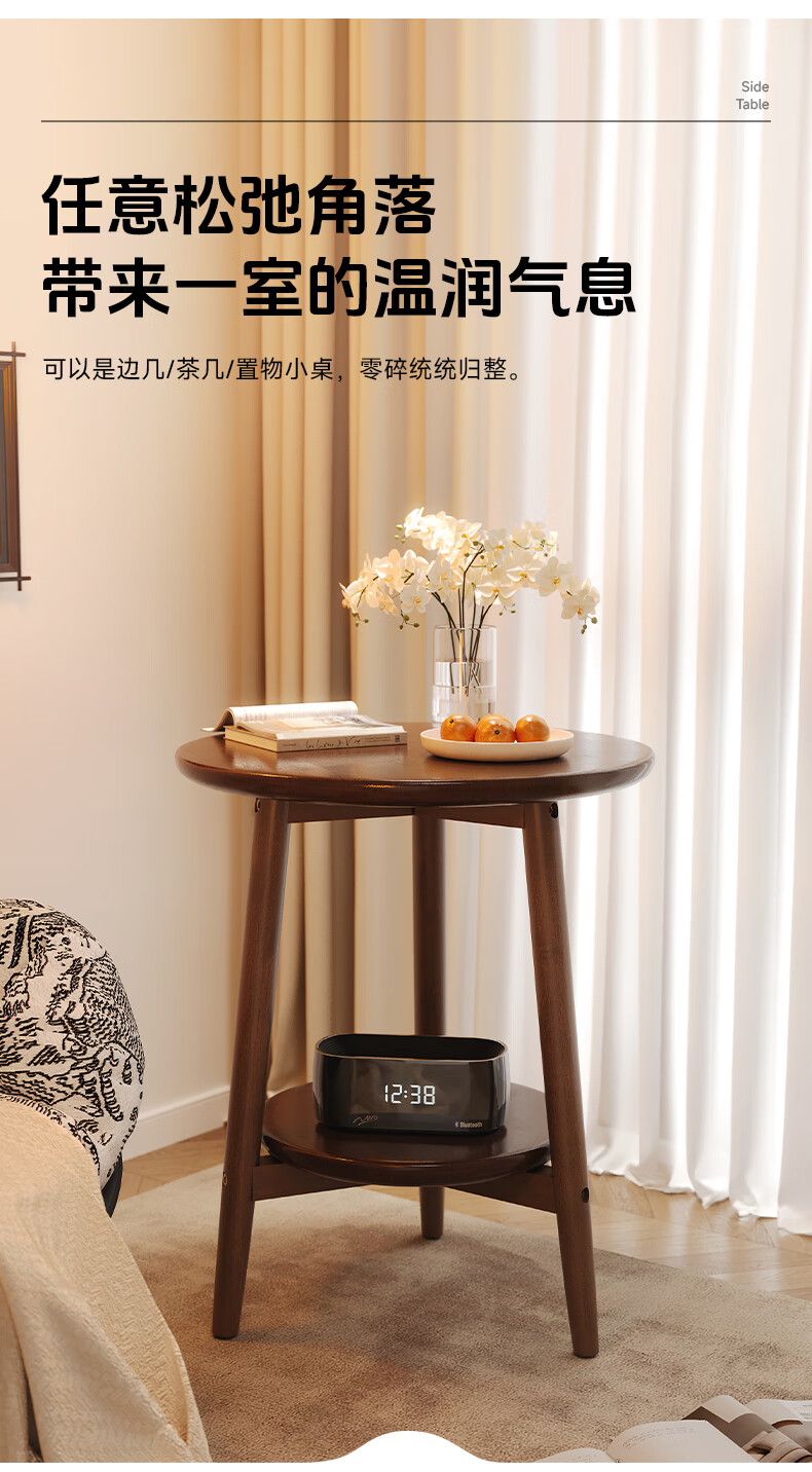 Solid wood small round table coffee table living room household small side table balcony small tea table bedroom bedside table small sofa side table rubber wood imported from Thailand walnut color 40cm
