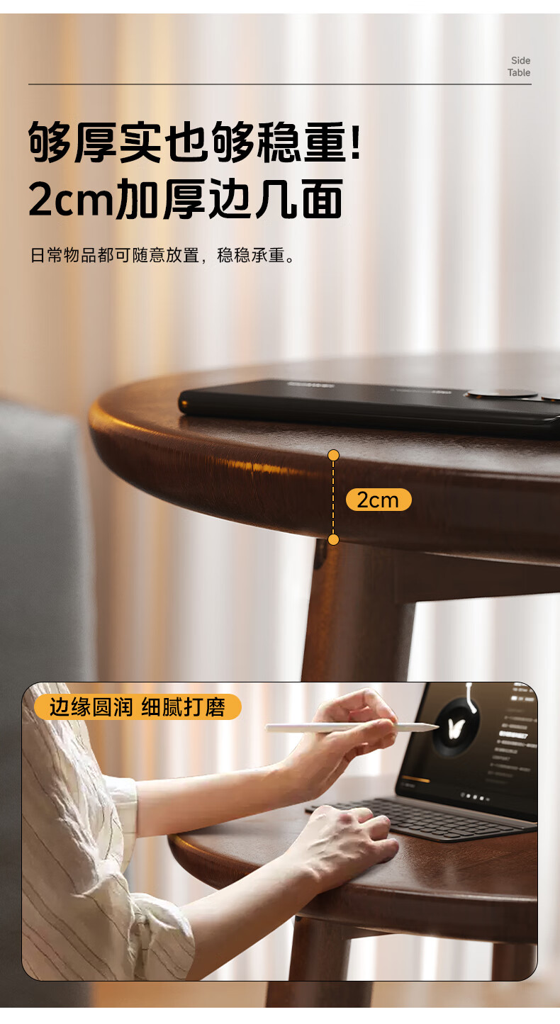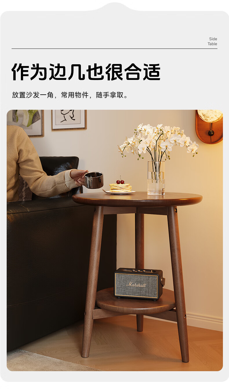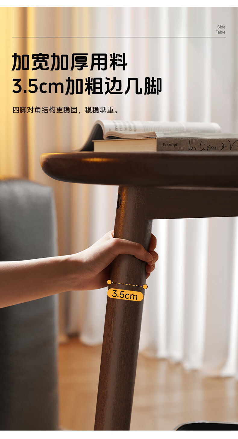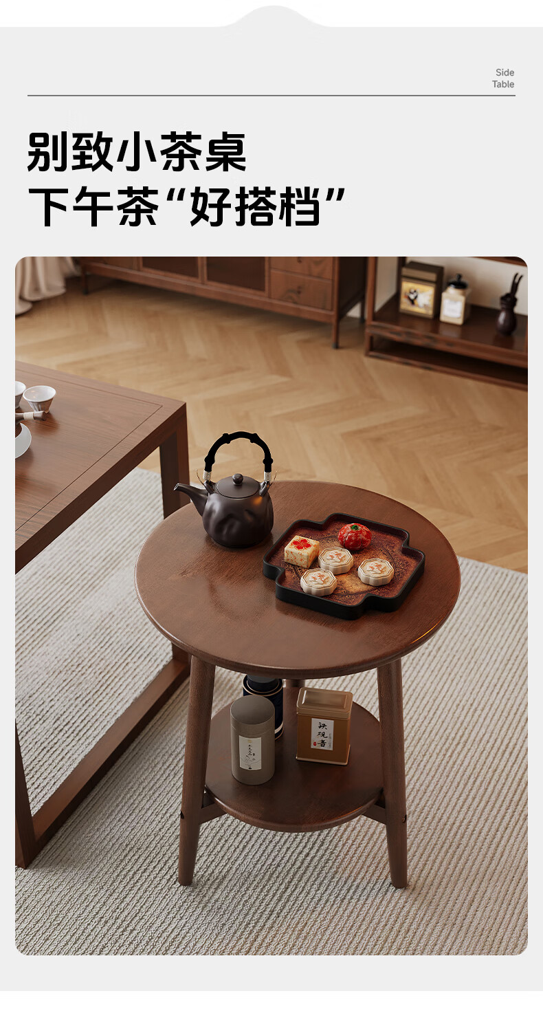 Solid wood small round table coffee table living room household small side table balcony small tea table bedroom bedside table small sofa side table rubber wood imported from Thailand walnut color 40cm