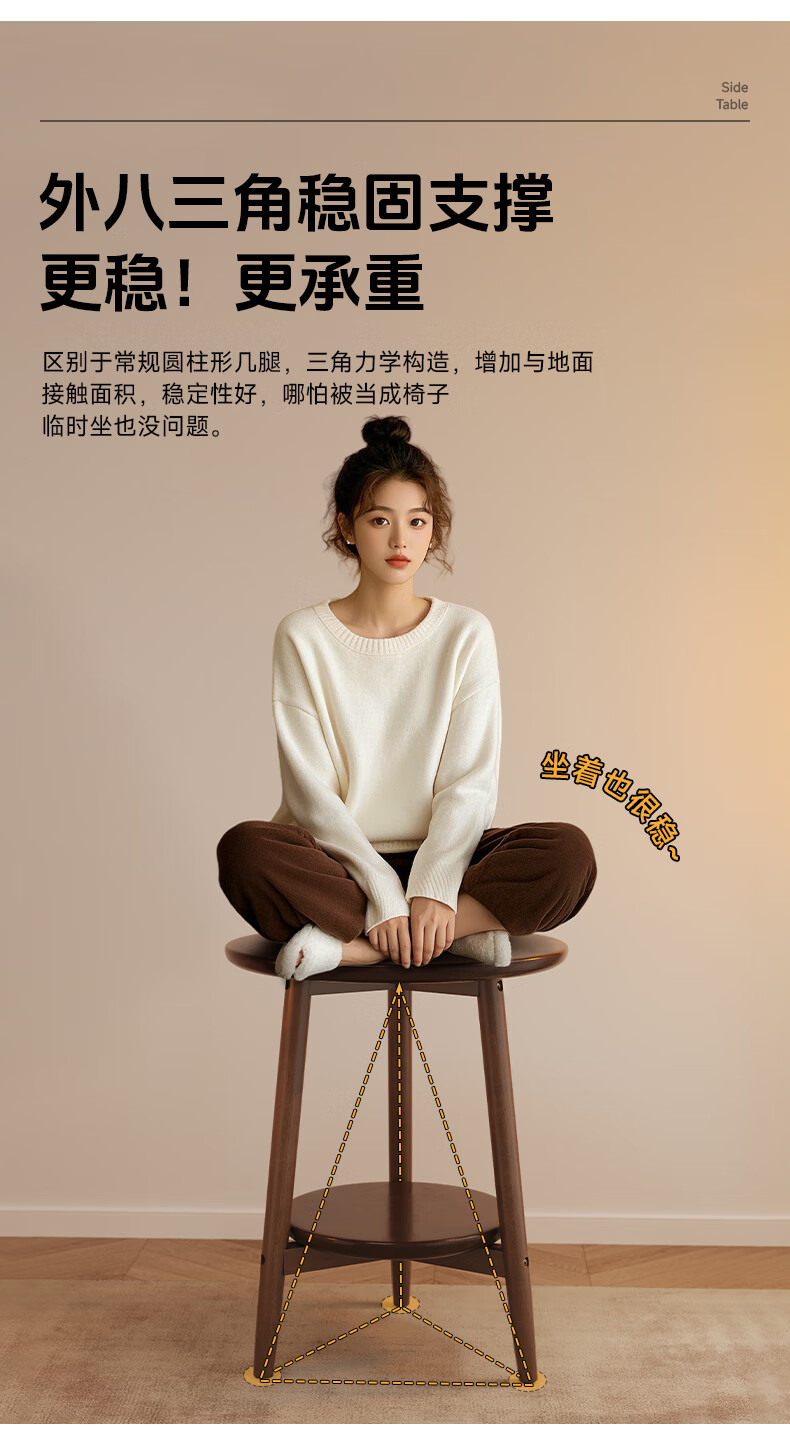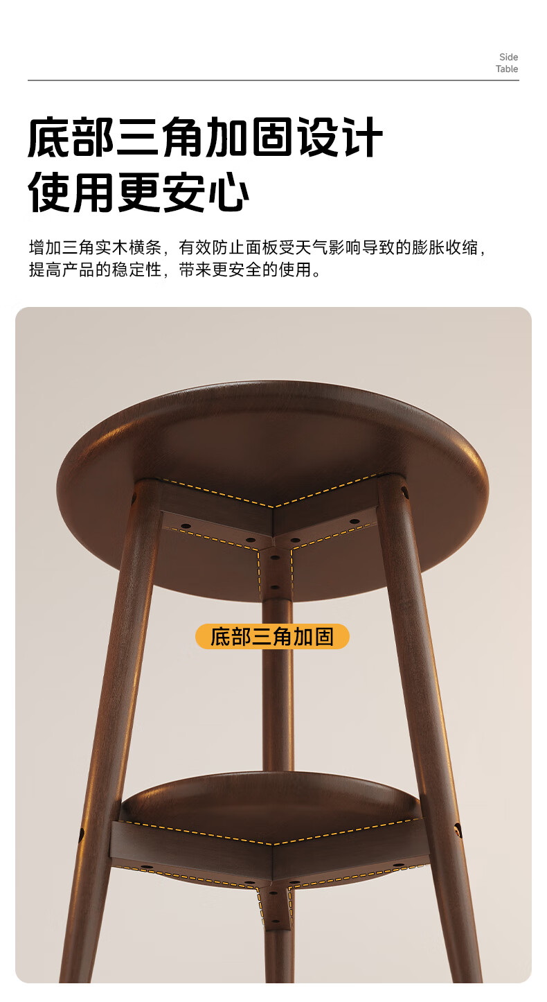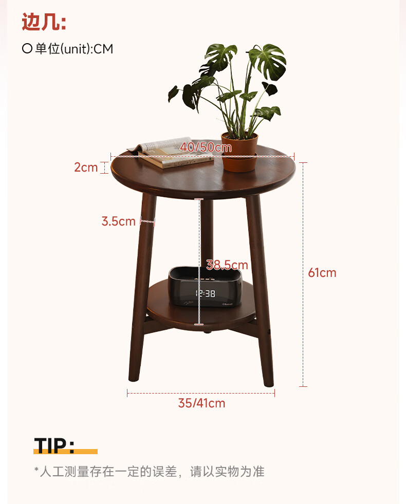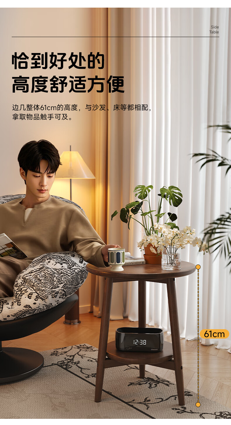 Solid wood small round table coffee table living room household small side table balcony small tea table bedroom bedside table small sofa side table rubber wood imported from Thailand walnut color 40cm