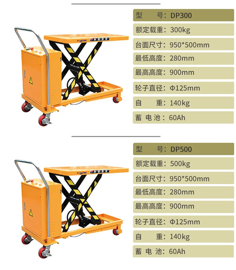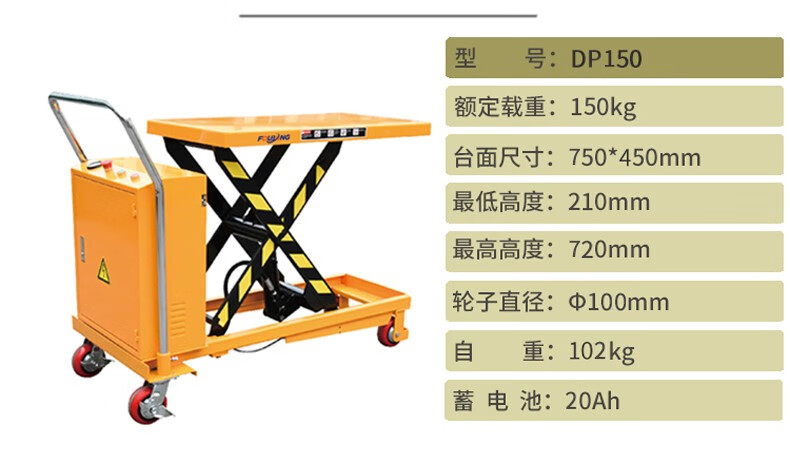 Shantou Lincun electric hydraulic lifting platform truck mobile scissor lift mold hand lift truck export to domestic sales DP150 semi-electric 150 kg 0.72 m