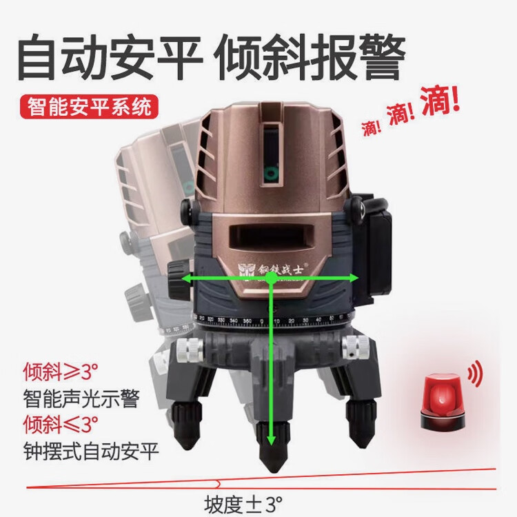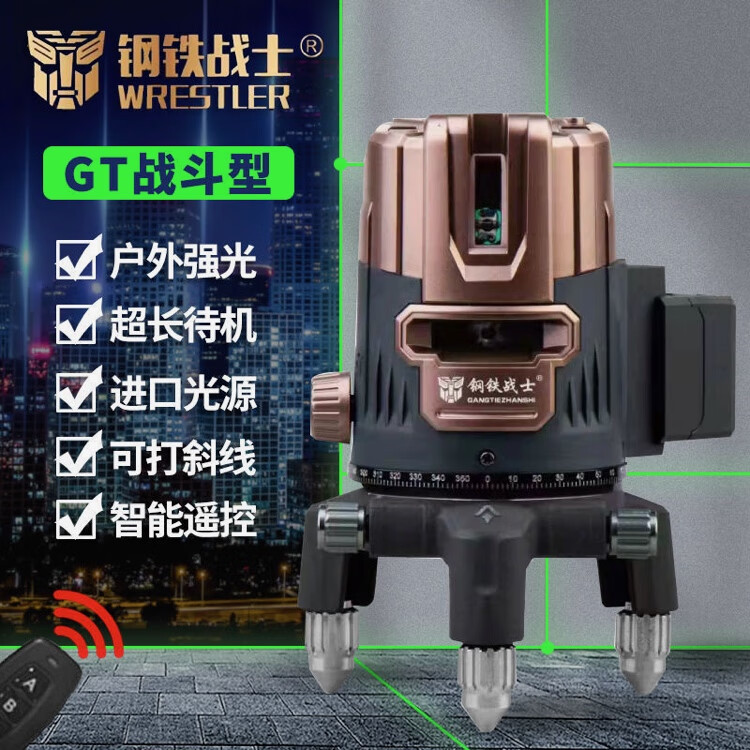 Steel Warrior anti-fall infrared laser level green light 2 lines high-precision strong light 3 lines 5 lines outdoor cast line automatic leveling Steel LD flash 2 lines with suitcase green light