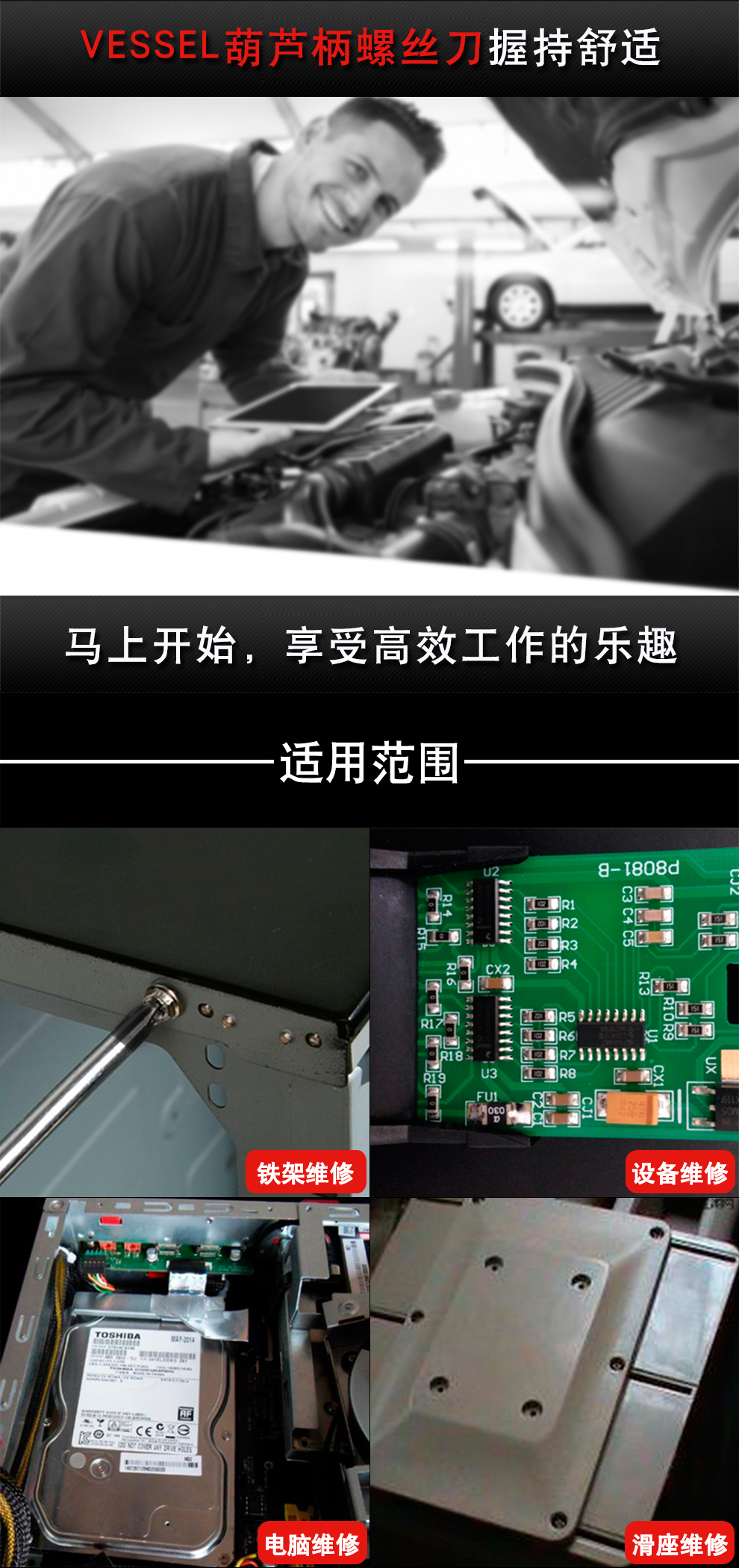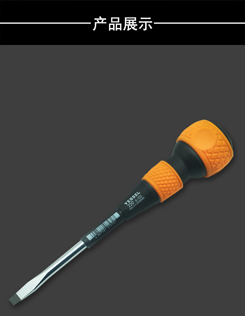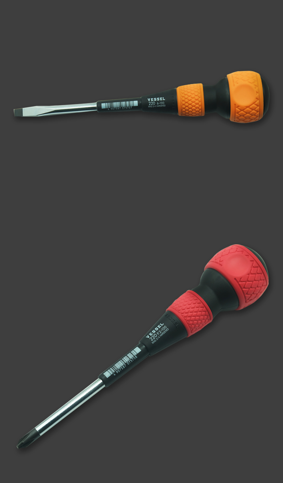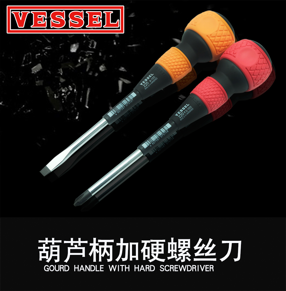 VESSEL Japan original imported gourd handle screwdriver one cross rubber handle screwdriver batch 220 computer repair tools PH1*75mm (cross magnetic)