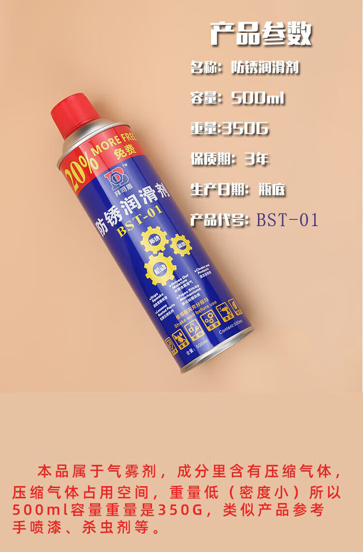 Multifunctional rust removal and anti-rust lubricant 500ml spray for loosening metal screws, whole box rust removal Linghui 1 box (24 bottles) 500ml/350g-Classic version