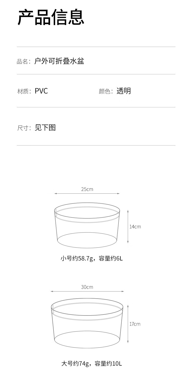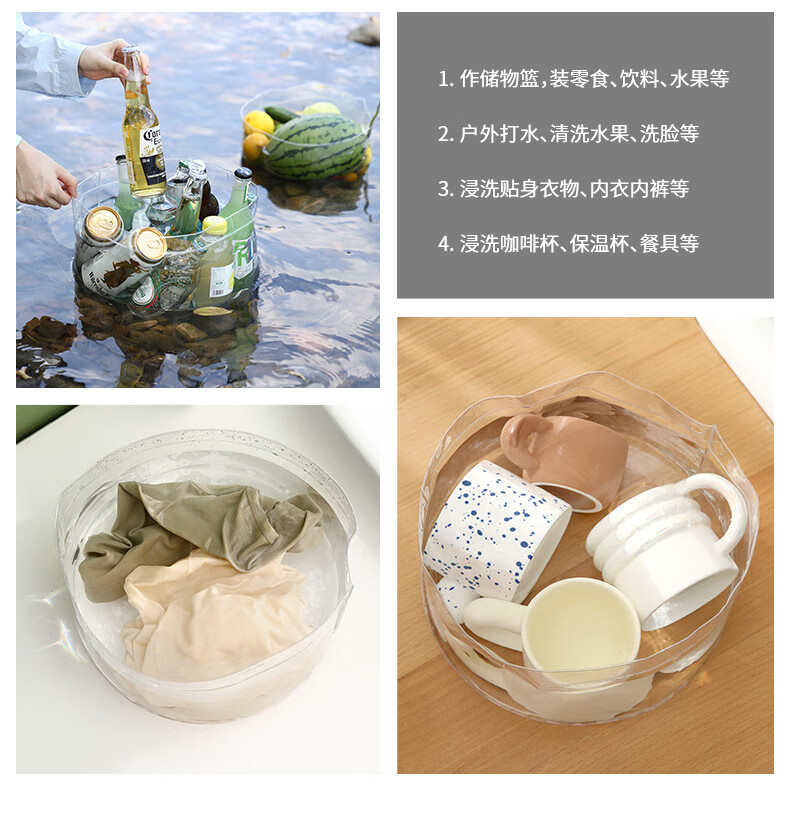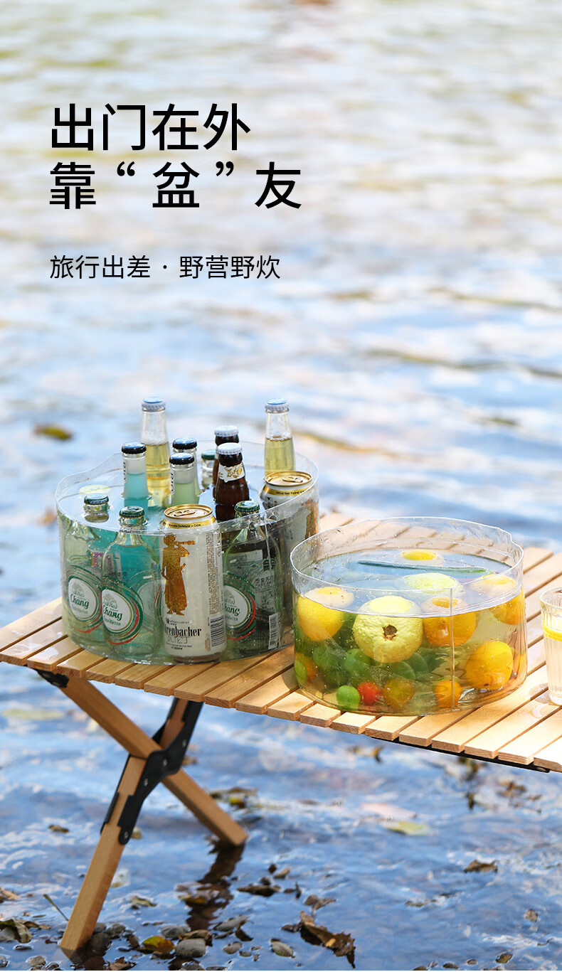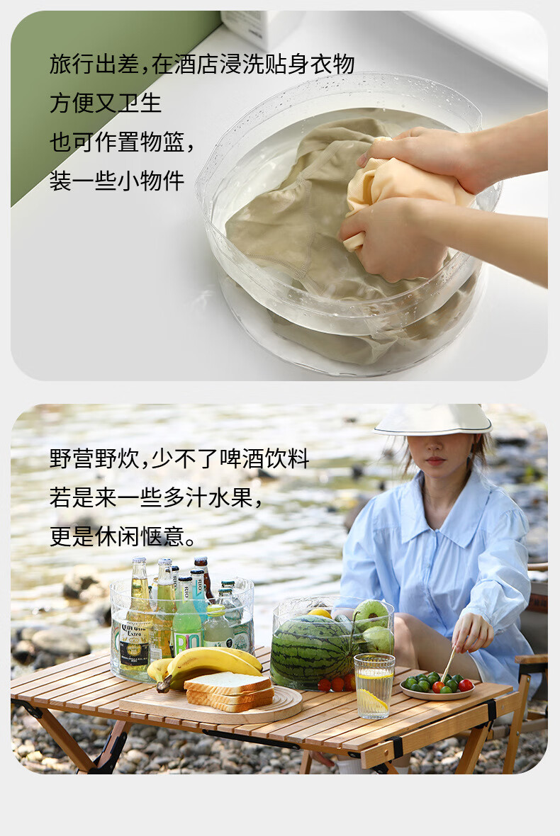 Foldable water basin travel outdoor business trip washbasin washing laundry basin vegetable basin transparent basin large + small 2 pieces