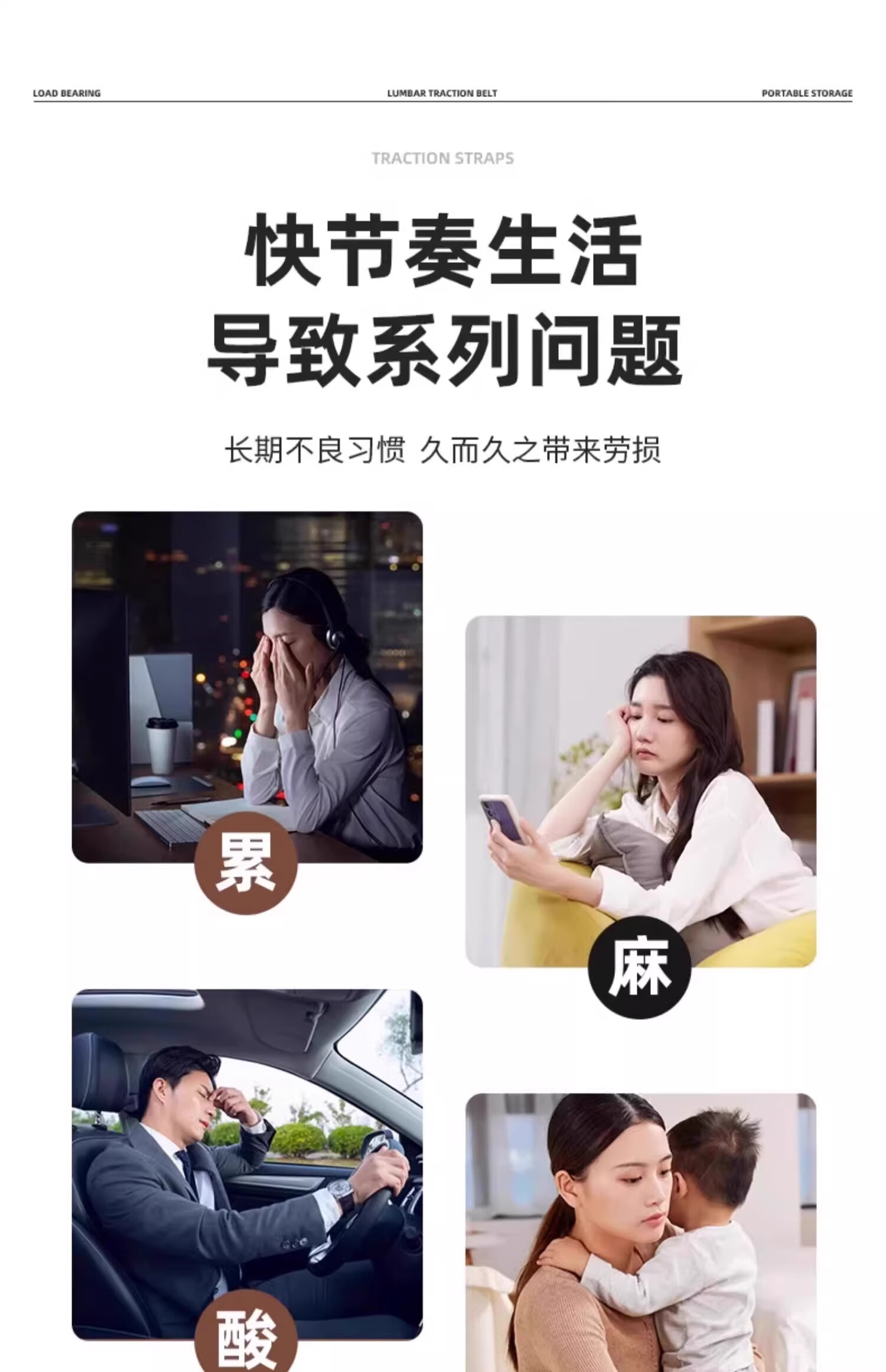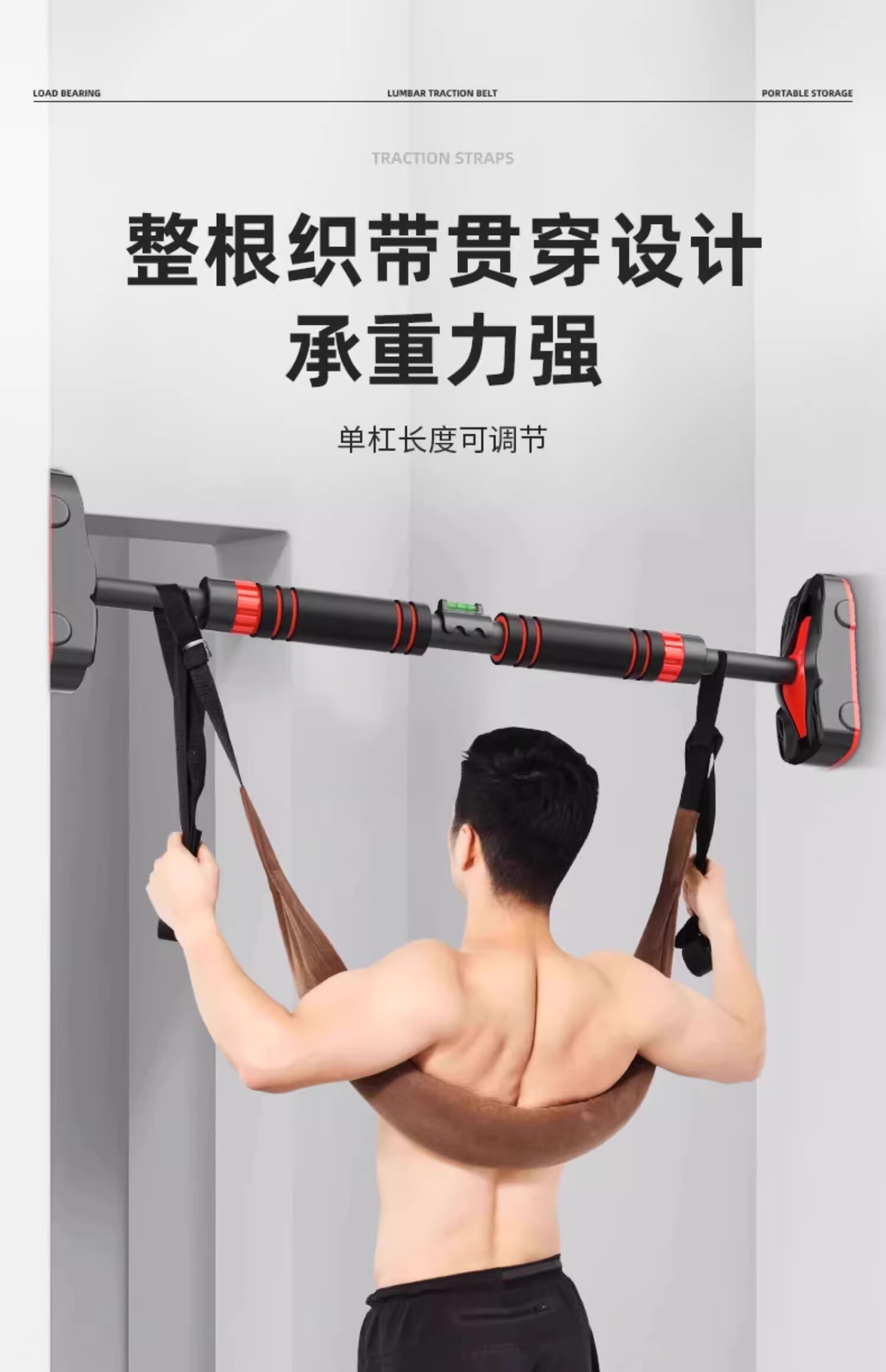 Lumbar traction belt, horizontal bar, lumbar traction stretcher, household strong waist sling to assist lumbar disc herniation artifact, black | with hanging ring | load bearing 400 catties / without horizontal bar