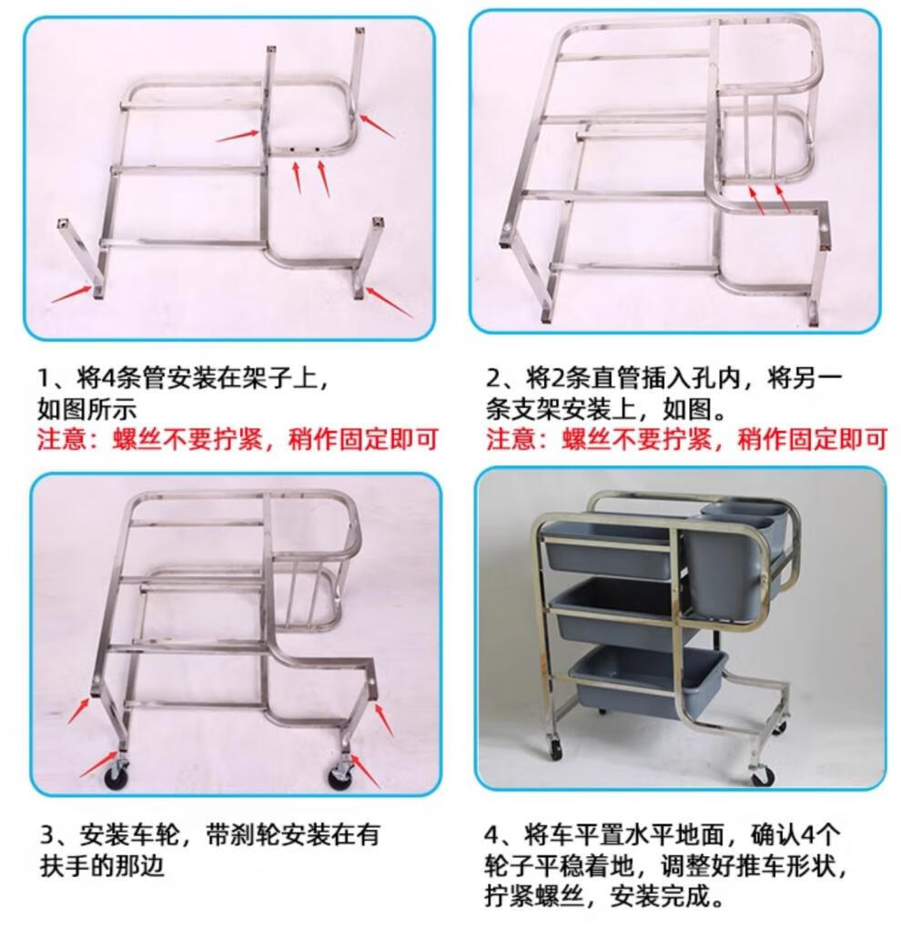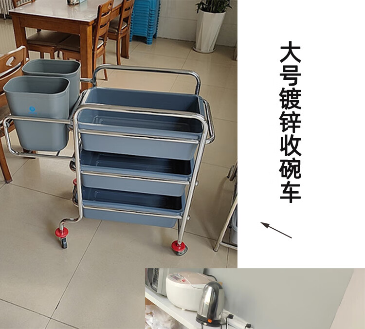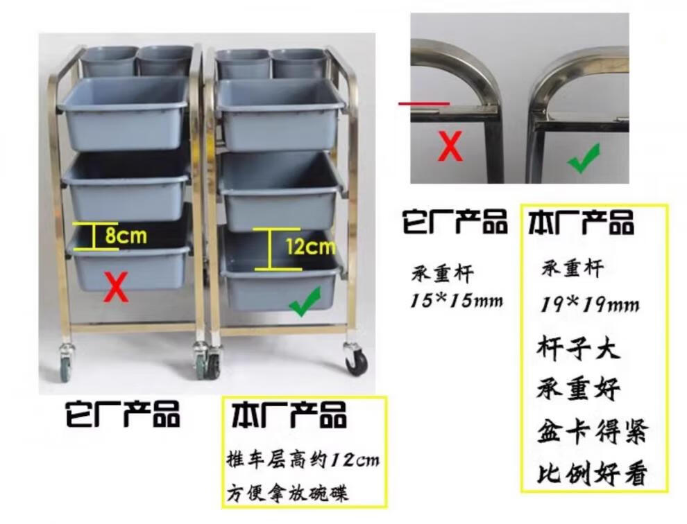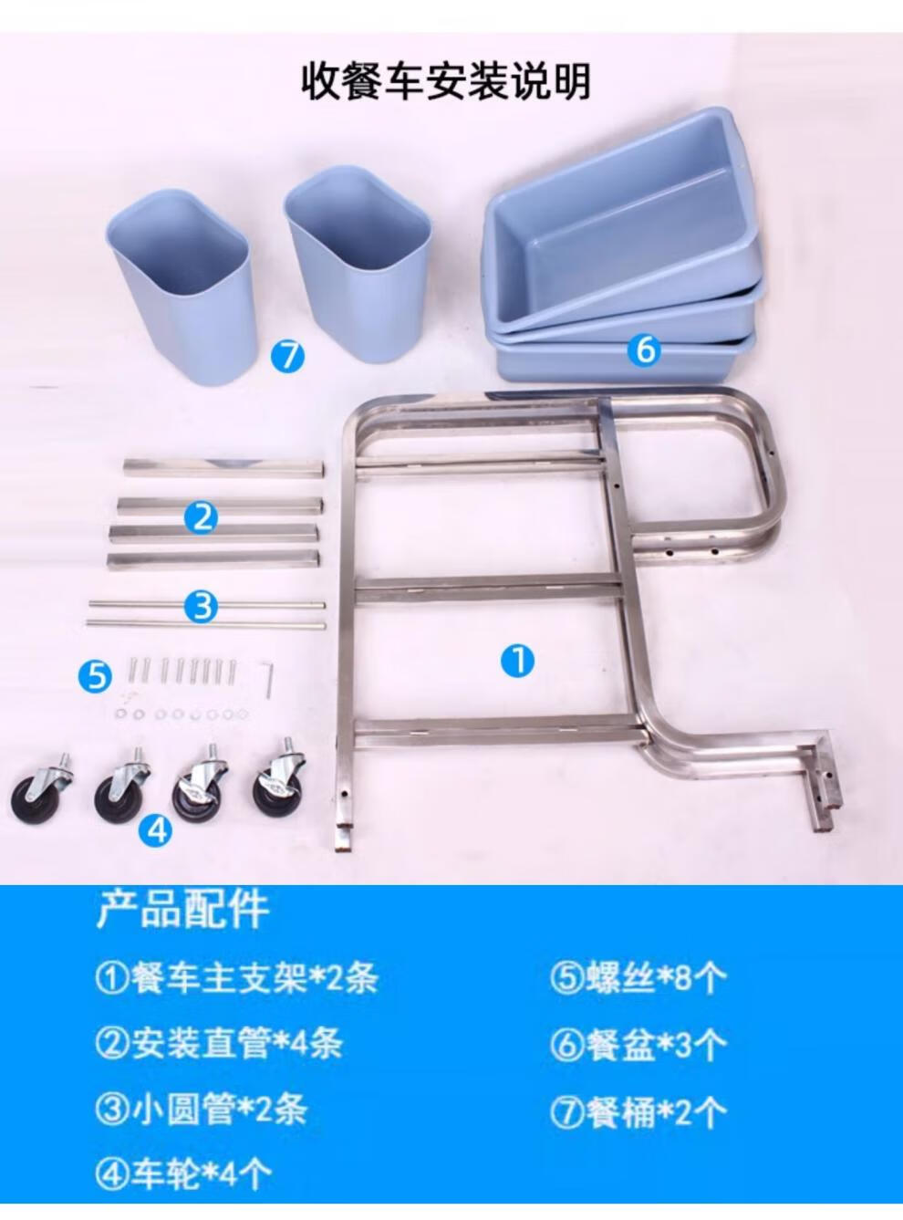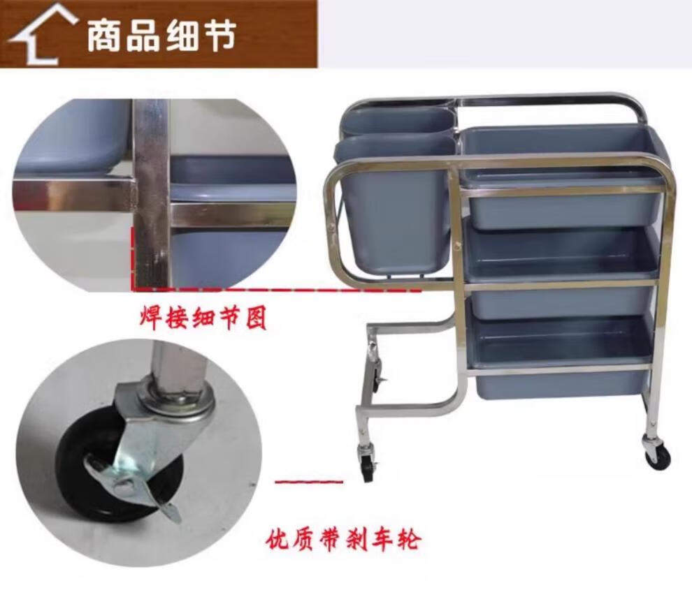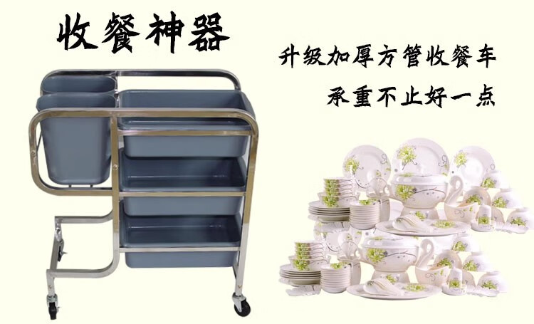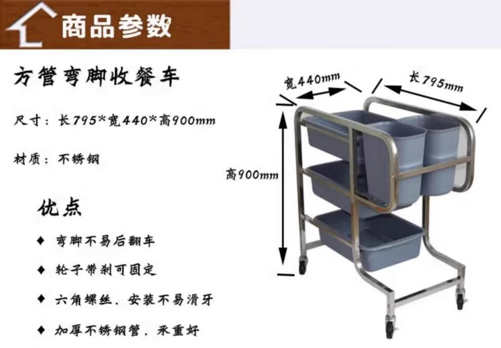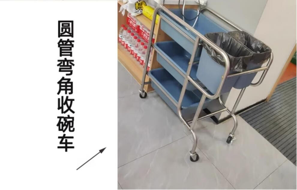 Bowl collection truck, dining truck, restaurant restaurant tableware collection truck, stainless steel plate garbage storage truck, commercial dining truck, thickened and reinforced round tube bent-foot dining truck complete set, anti-official standard configuration