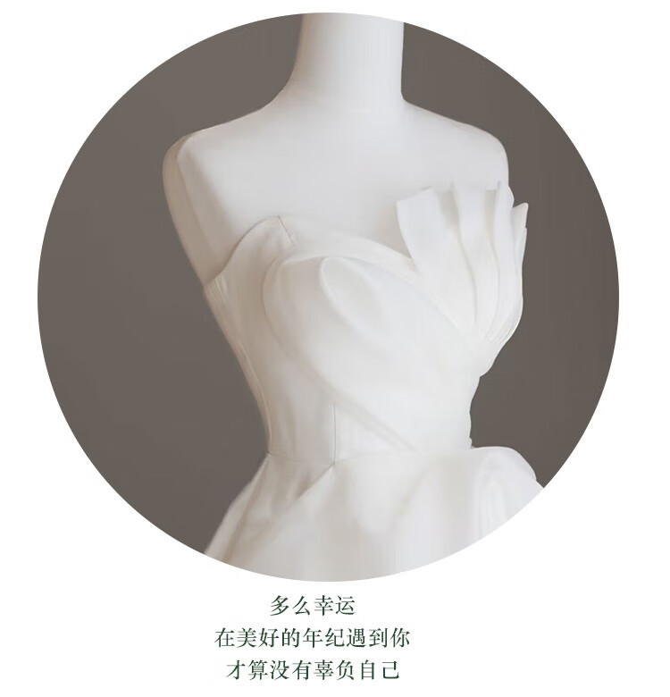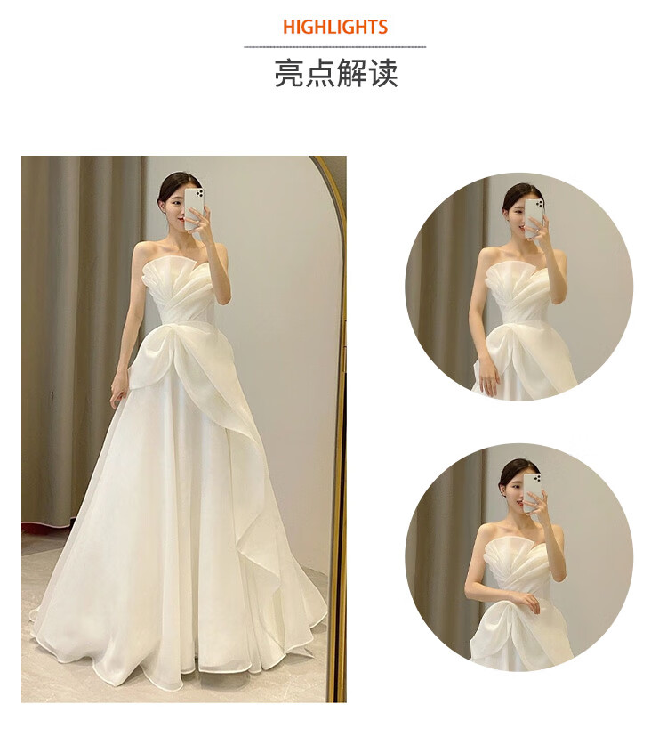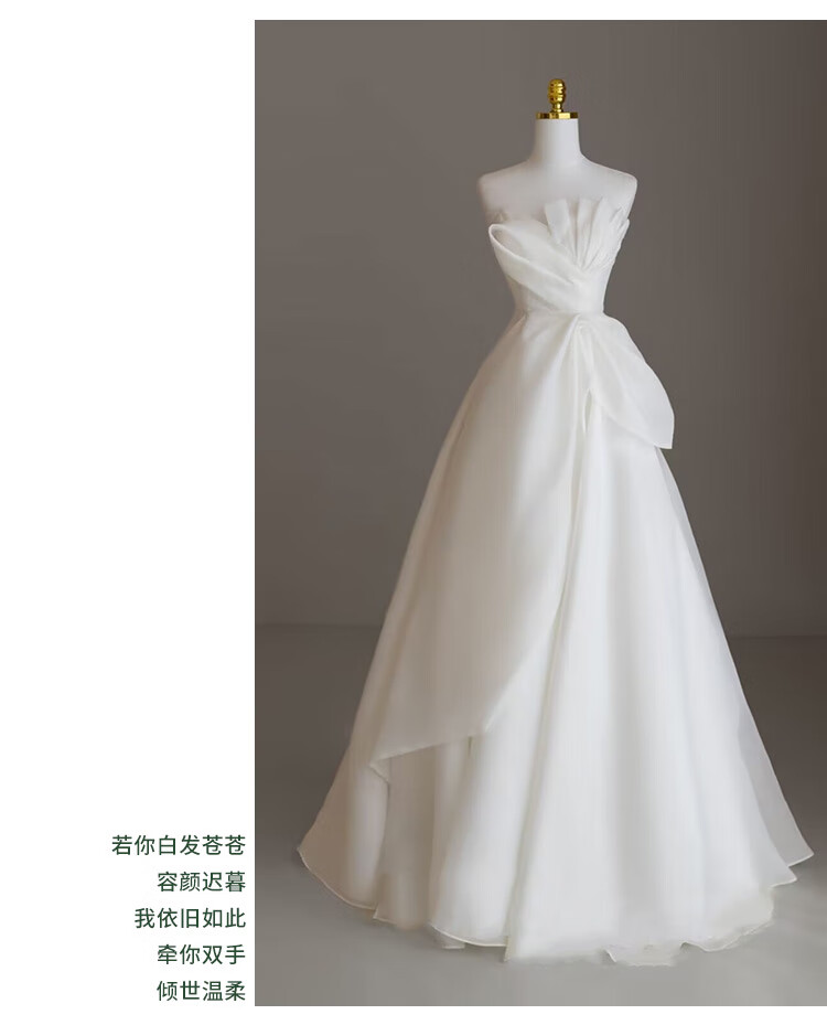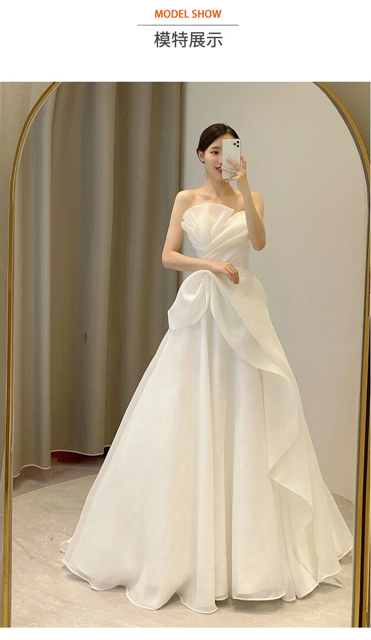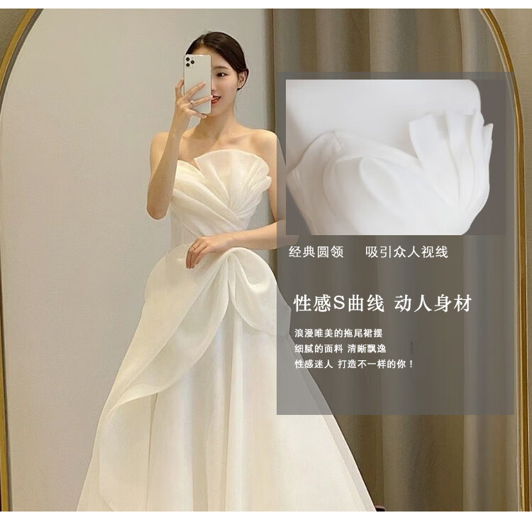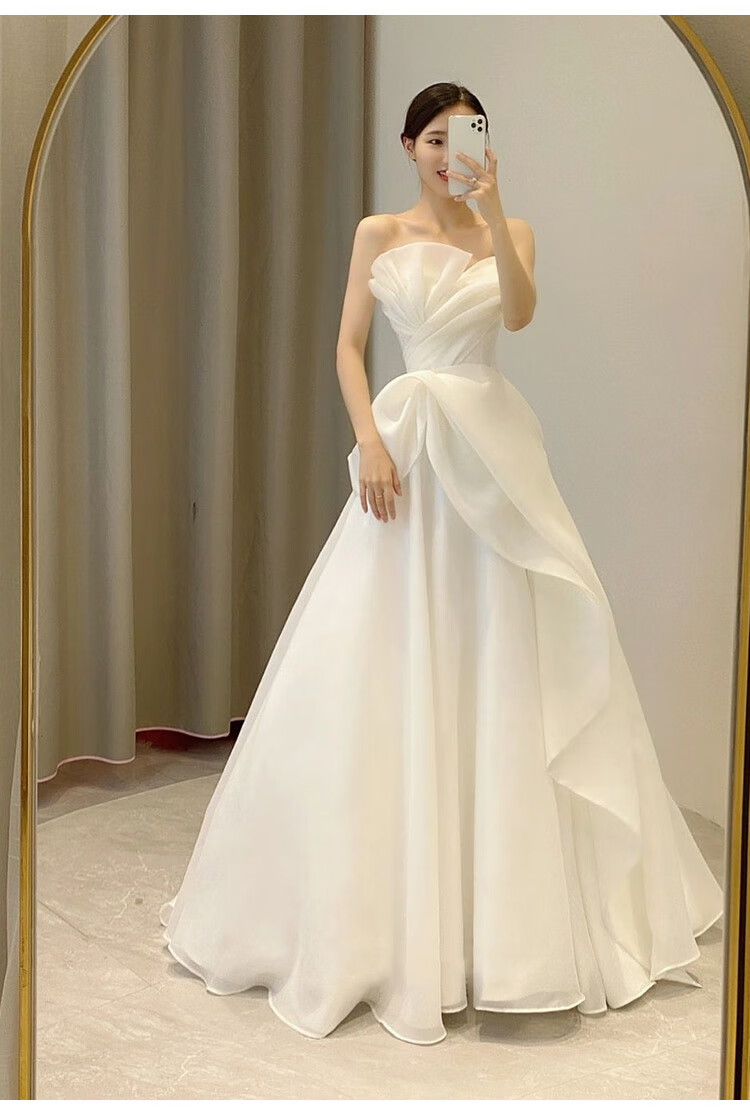 New light wedding dress 2025 bride petite slim satin dress French tube top simple travel photo door veil floor-length style (shape veil gloves) M