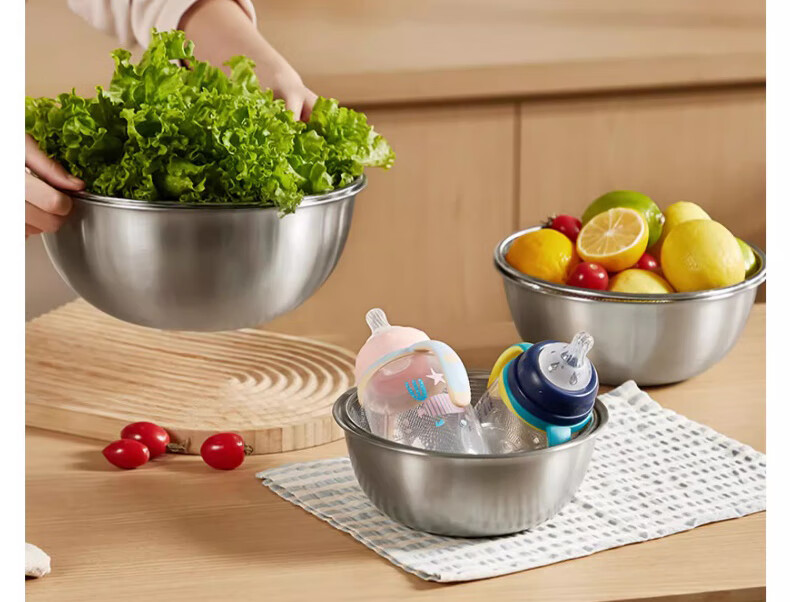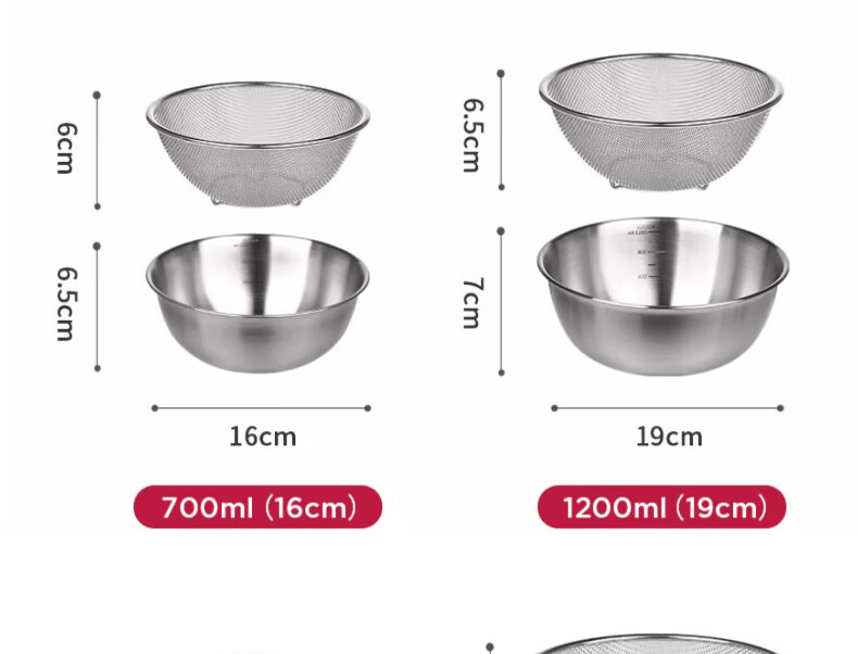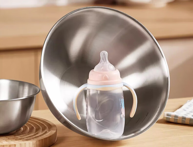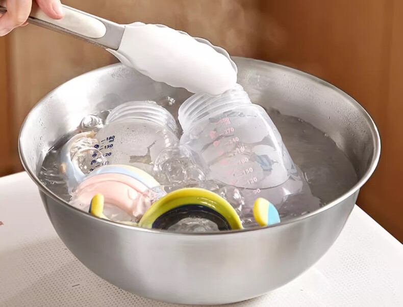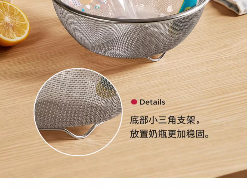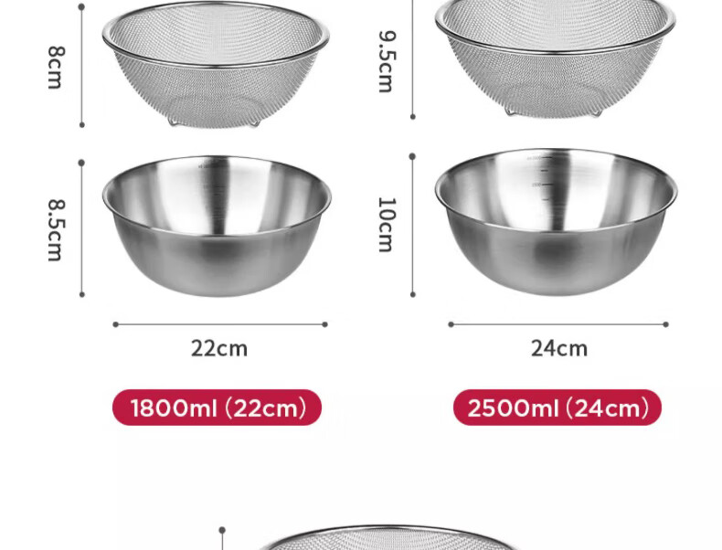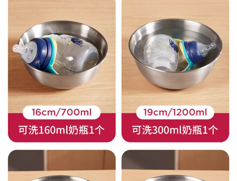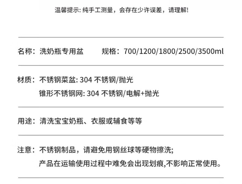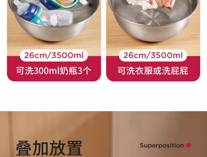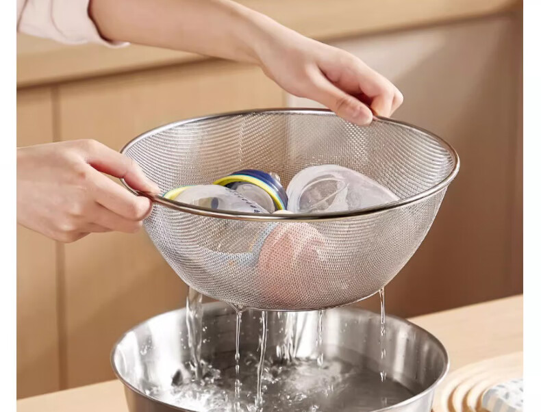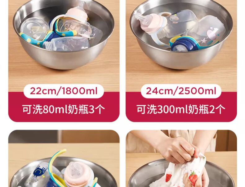WELLMEET special basin for washing bottles, food-grade stainless steel basin drain basket, baby bottle cleaning basin, scalding basin, home kitchen, 26cm basin and sieve two-piece set, suitable for 0-15 months