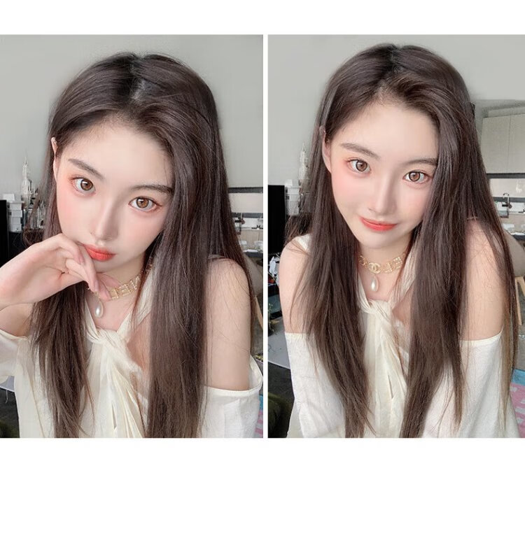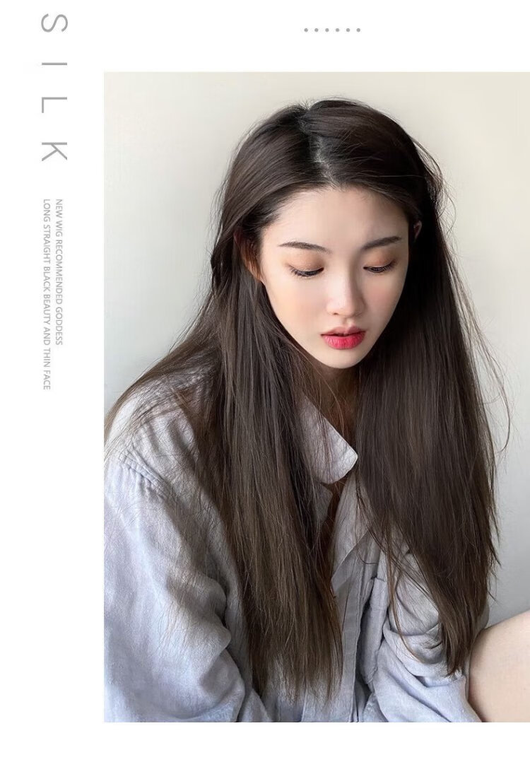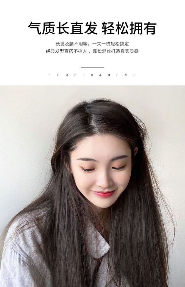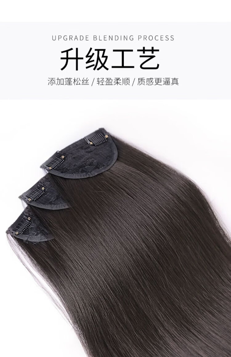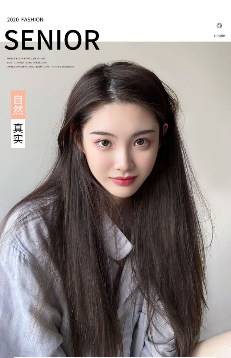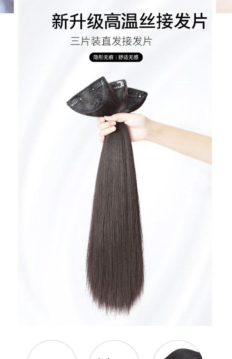 Zhizhou Wig Women's Three-Piece Long Straight Hair Hair Extension Pads Women's Invisible Seamless Fluffy Artificial Hair Pieces Increase Hair Volume Long Straight Hair - Brown Black Black Series 60cm