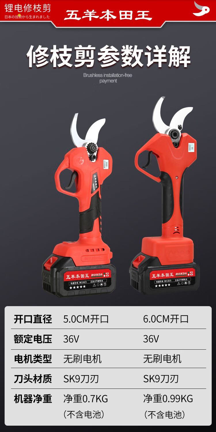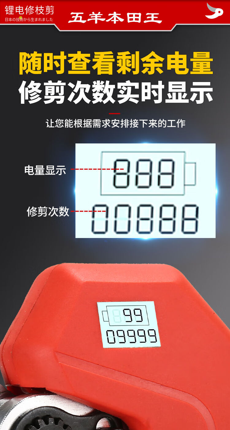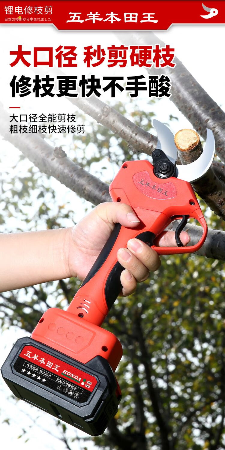 Wuyang Benzong Wuyang Japan imported electric scissors for fruit tree pruning and greening garden scissors for tree branch shears Wuyang Honda King imported technology 15-cell large-capacity battery ordinary model 5.0 LCD display (2 electric 2 knives)