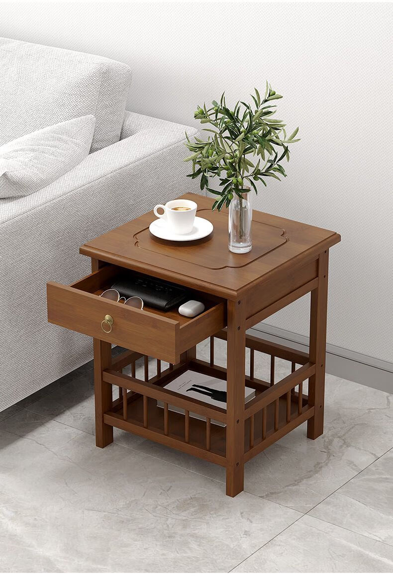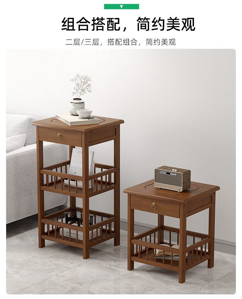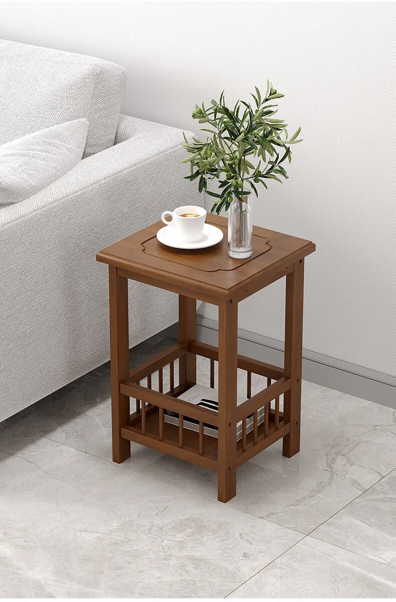 FANCYCHIC home sofa side cabinet small coffee table mahjong table corner corner small square table storage rack tea table tea table side tea cabinet two-story brown fence