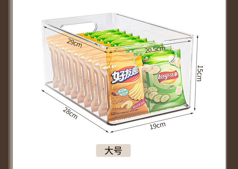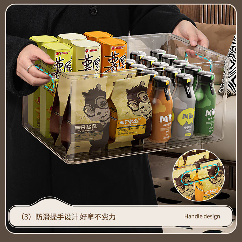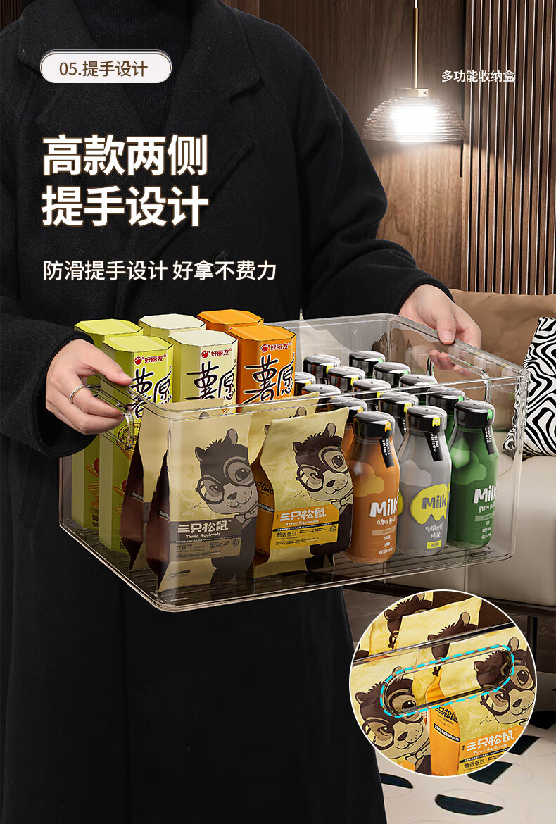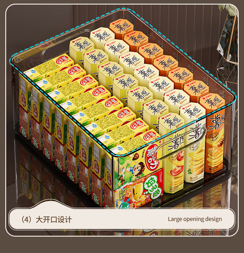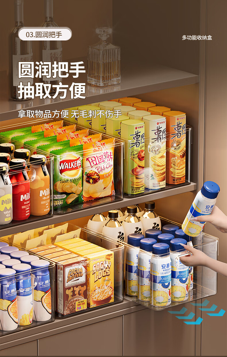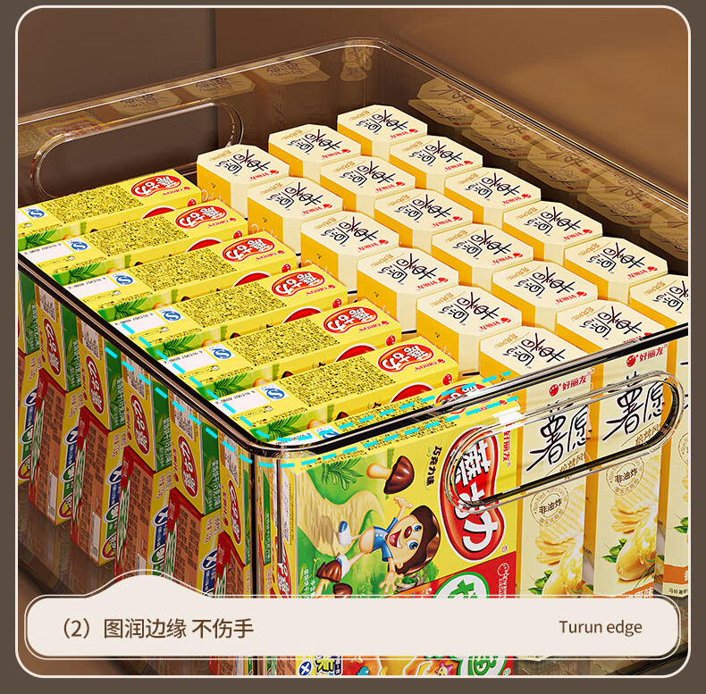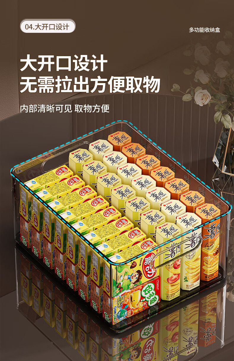 Yuetu cabinet storage box organizes miscellaneous snacks, narrow and long storage basket, desktop transparent acrylic rectangular storage box, extra-large transparent storage box/with handle, damage compensation guaranteed, 4 pieces