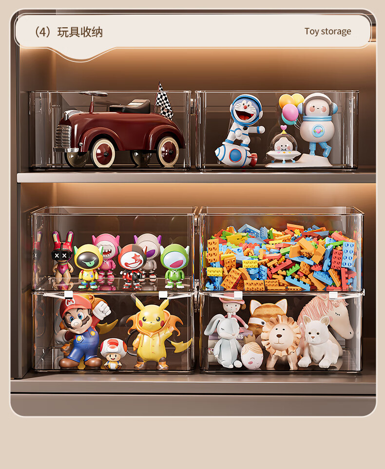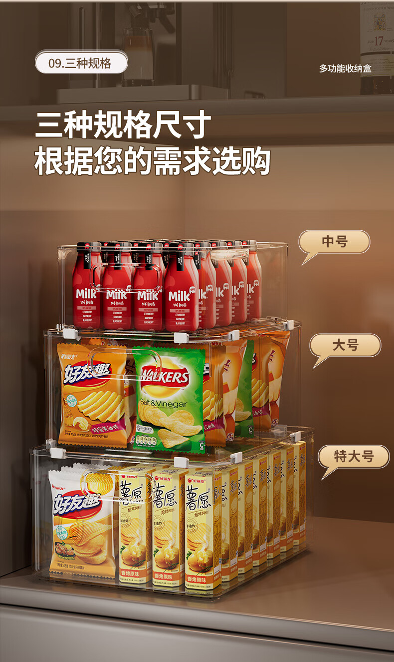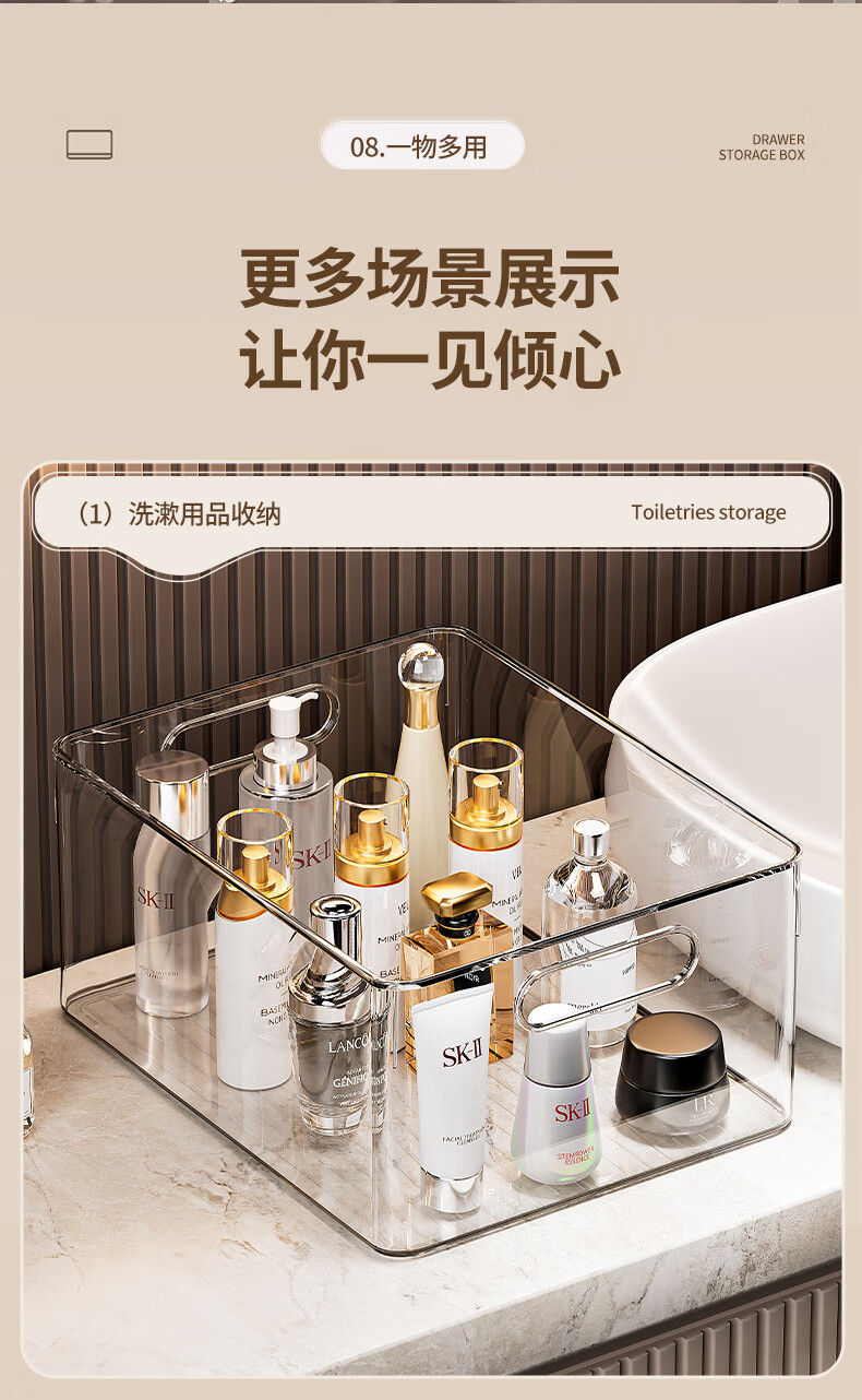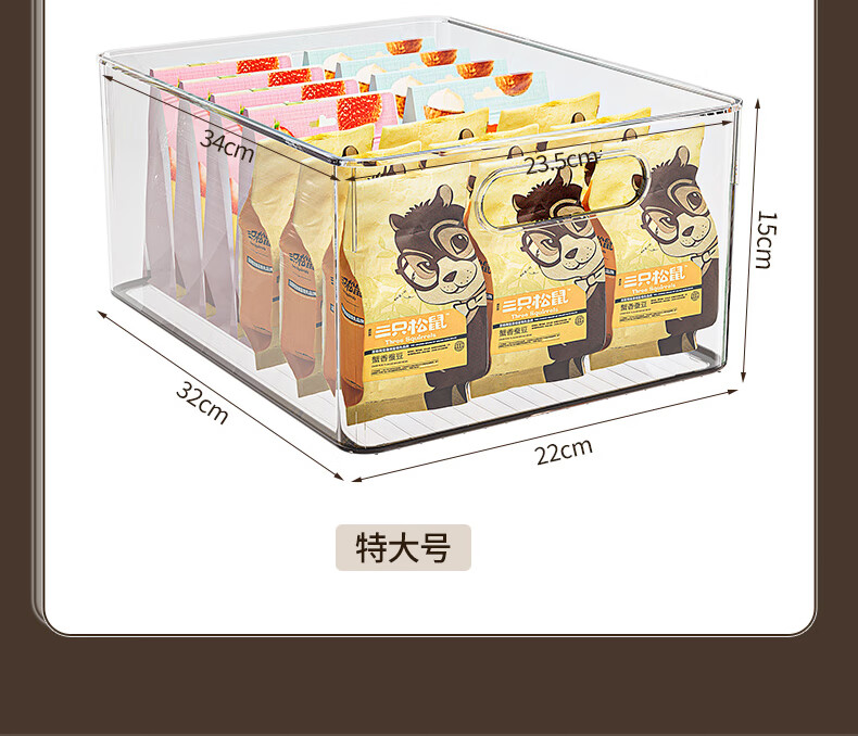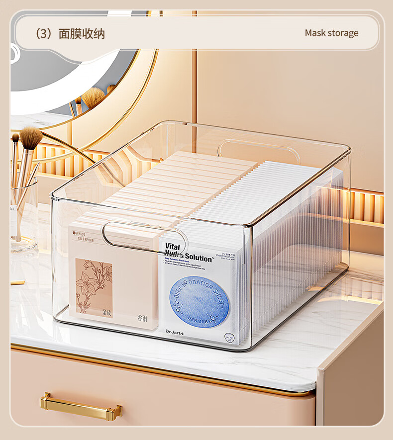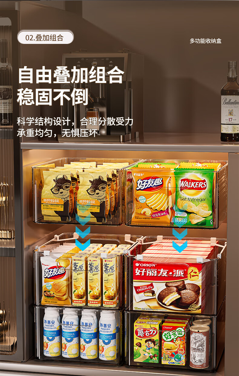 Yuetu cabinet storage box organizes miscellaneous snacks, narrow and long storage basket, desktop transparent acrylic rectangular storage box, extra-large transparent storage box/with handle, damage compensation guaranteed, 4 pieces