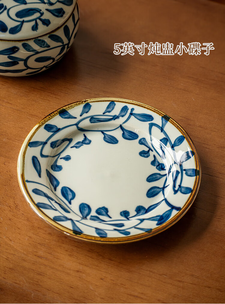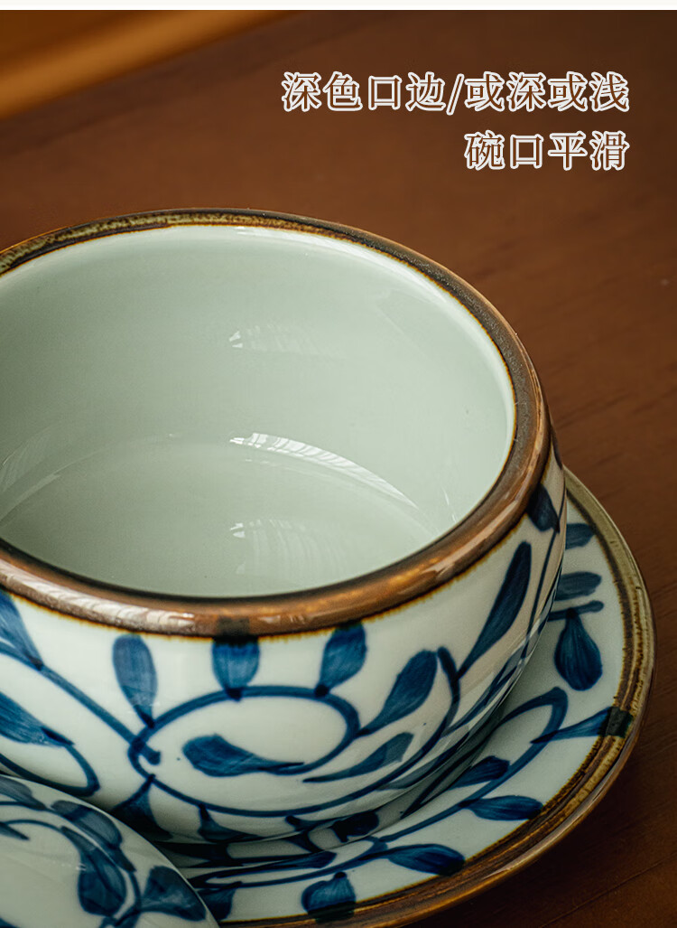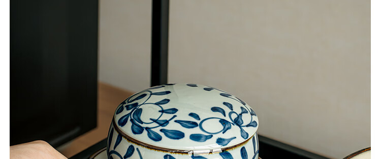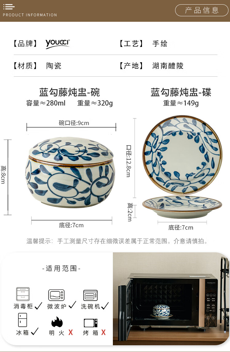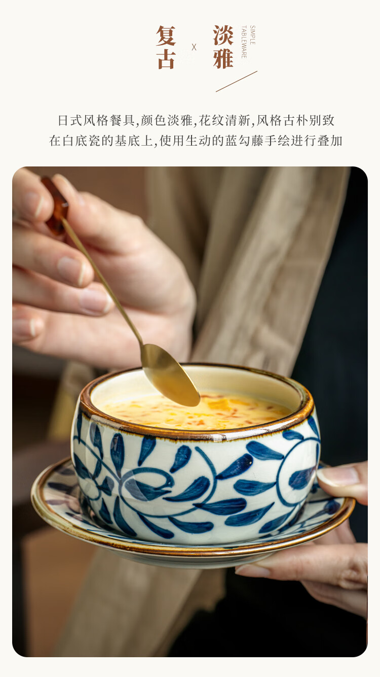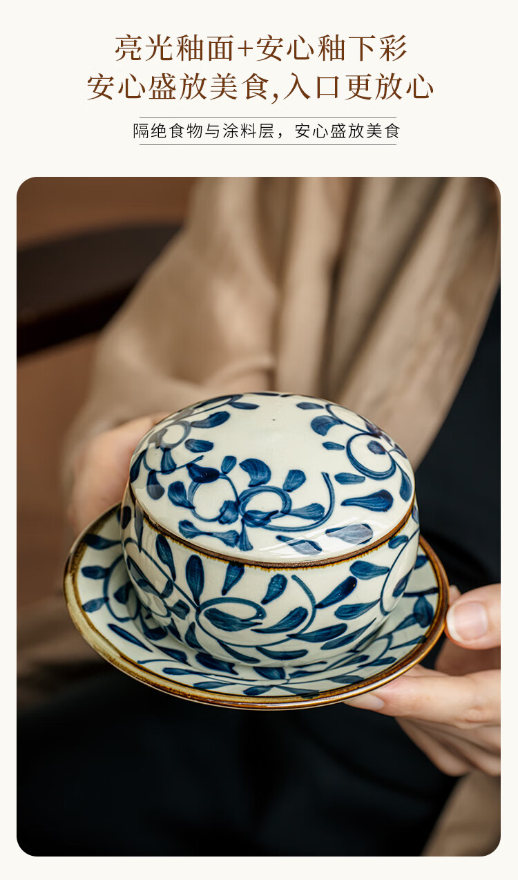 Youcci Blue Gou Teng exquisite hand-painted small stew pot ceramic soup cup with lid Japanese steamed egg cup special bird's nest bowl for one person (2 pieces) 3.5-inch small stew pot - Blue Gou Teng