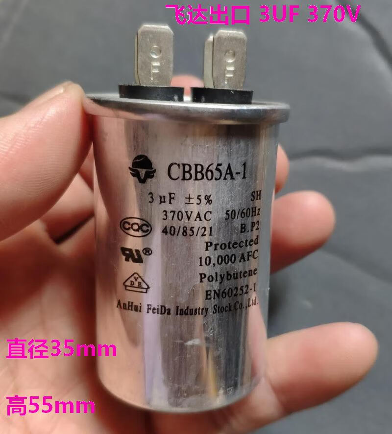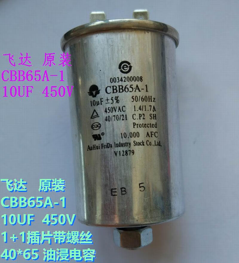 3UF370V Feida aluminum shell oil-immersed capacitor CBB65A-13UF4/5/6UF450V Hongguang with screws 4UF450V with screws