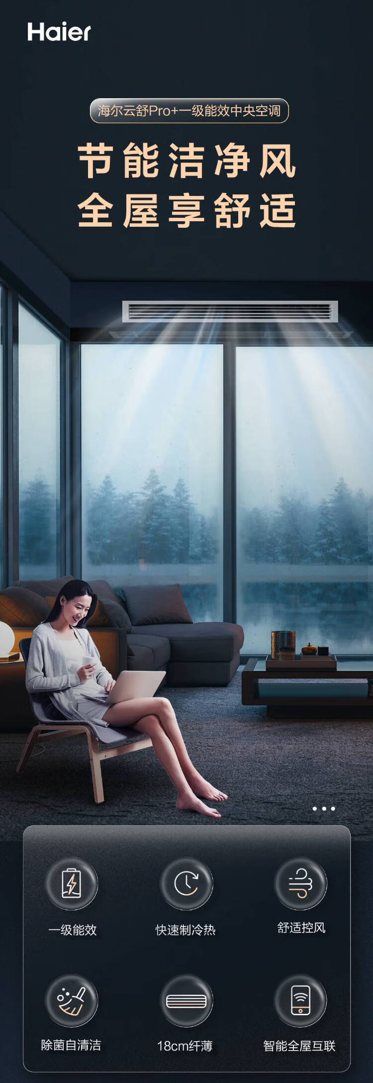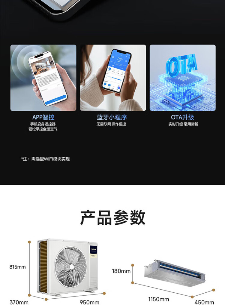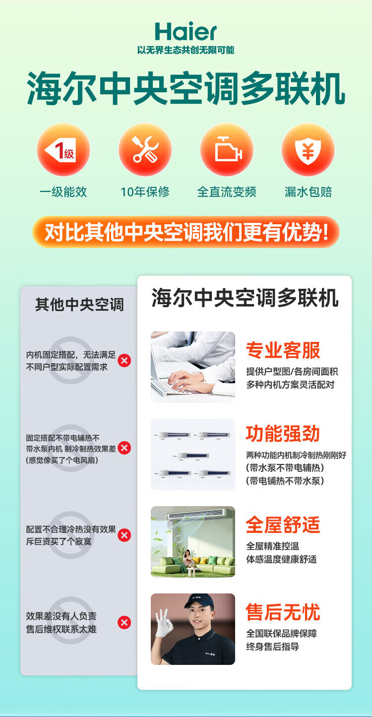 Haier central air conditioning one-to-four multi-split duct machine, new level of energy efficiency, full DC frequency conversion, household and commercial one-to-three, Yunshu Pro+ 6 HP, first-level energy efficiency, three rooms and two living rooms, 90-120 double fans