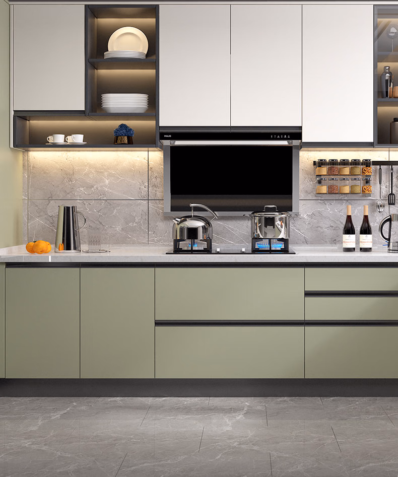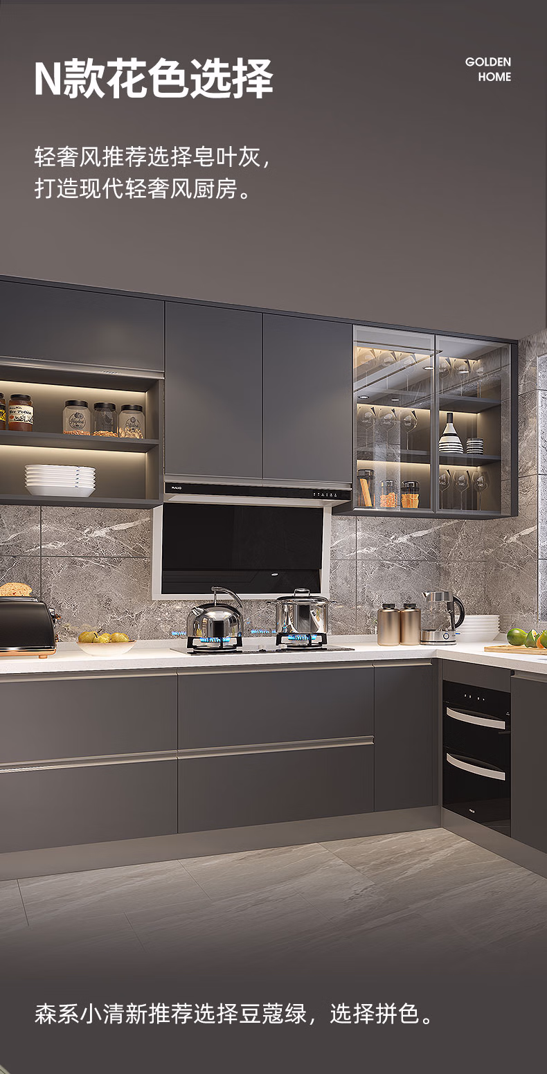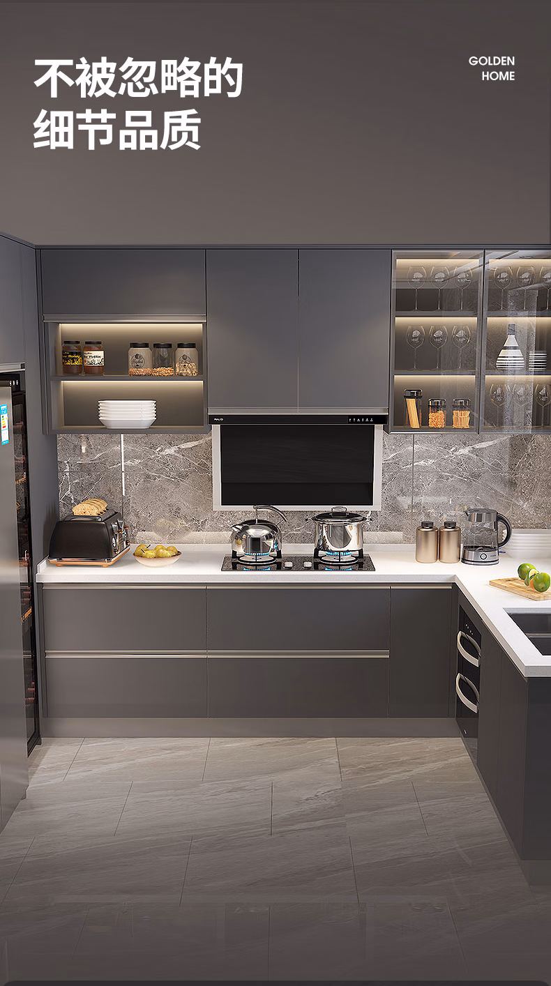 Gold Medal Kitchen Cabinet Kitchen Cabinet Customization Integrated Kitchen Cabinet Decoration Modern Simple Quartz Stone Countertop Cabinet Package 6-meter base cabinet + 6-meter countertop + 6-meter wall cabinet + skirting