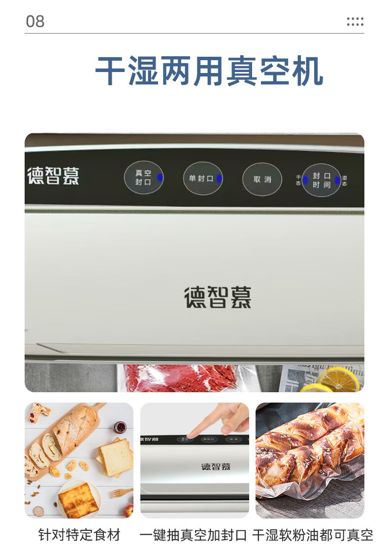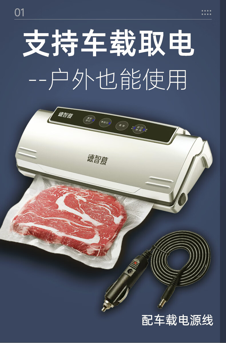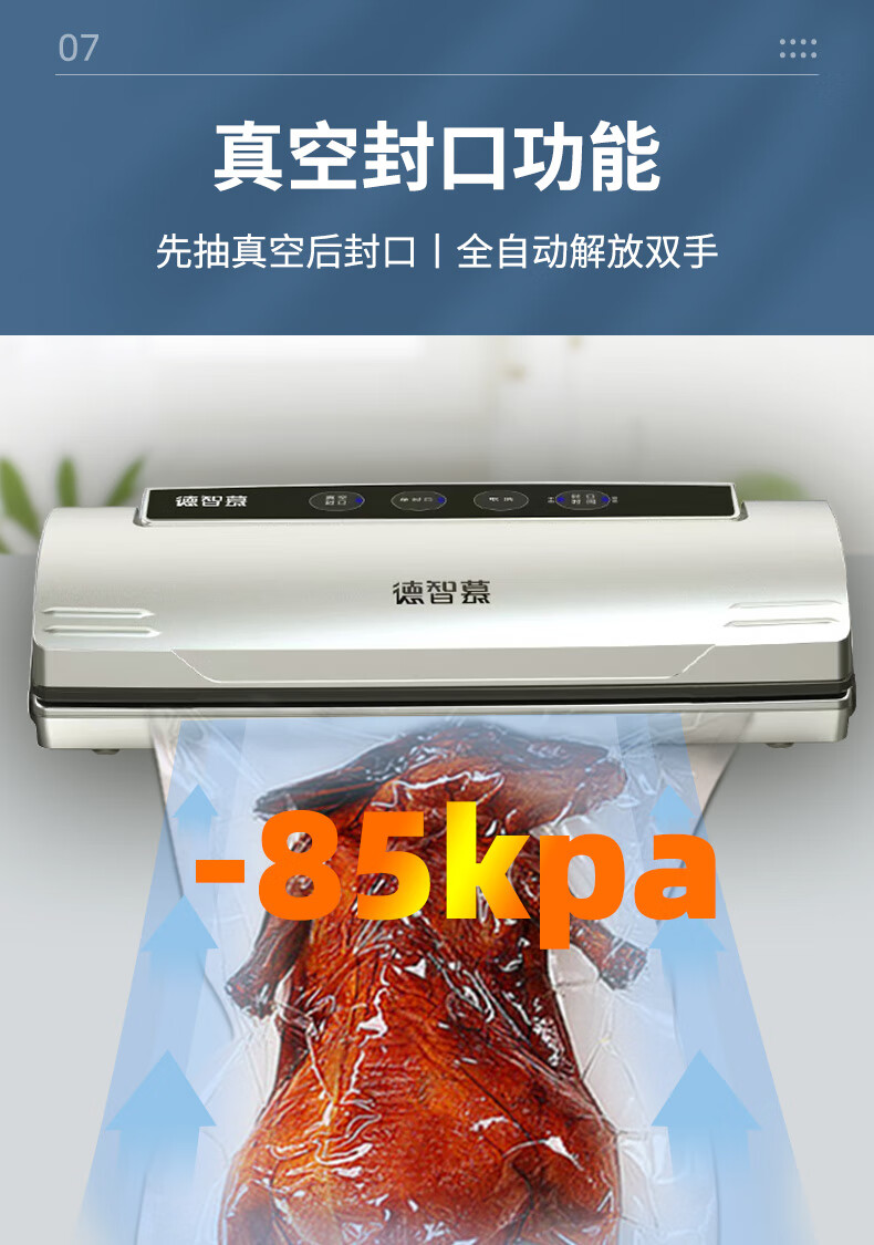 Dezhimo 85kpa vacuum sealing machine packaging sealing machine high suction food preservation machine commercial sealing machine fully automatic preservation vacuum machine home car outdoor portable vacuum machine car model 2113-85KPA free 10 pcs 22*30CM