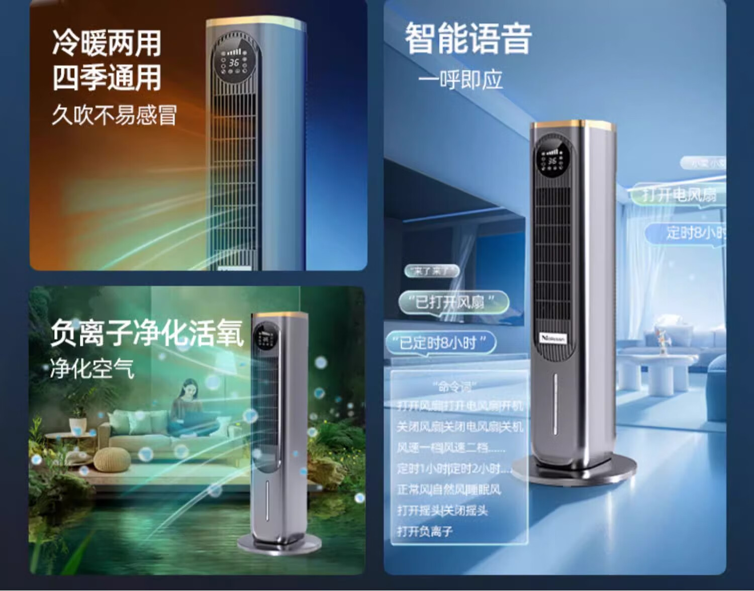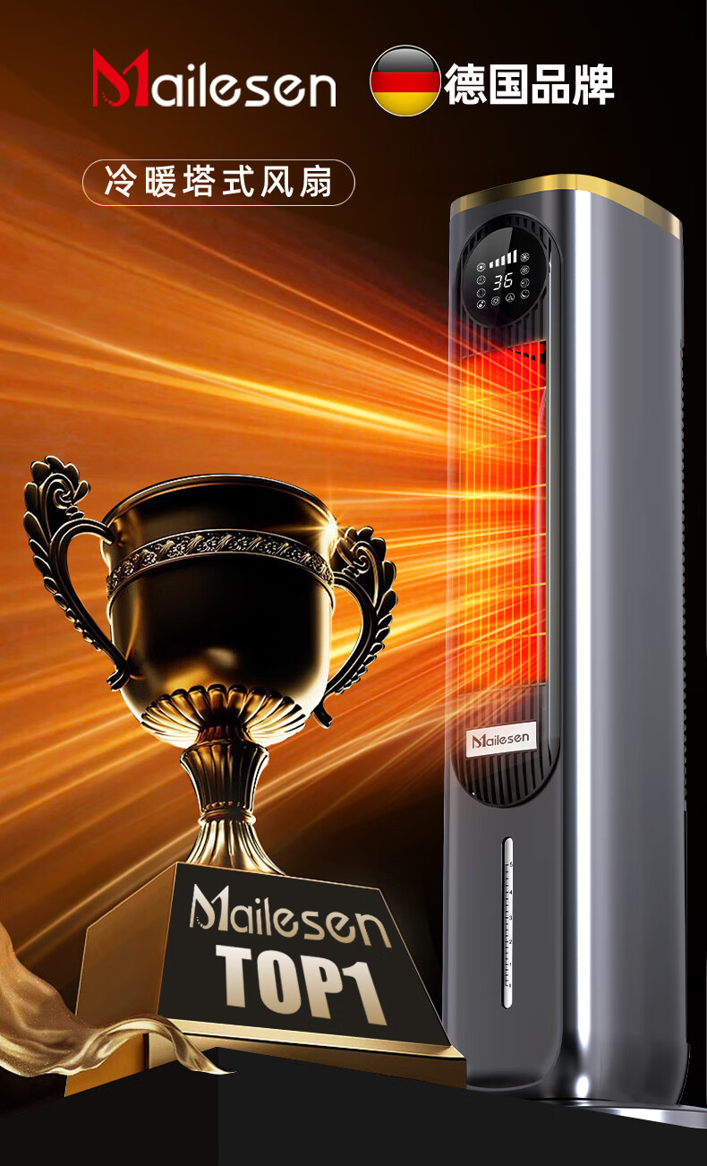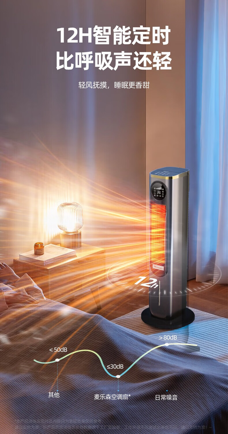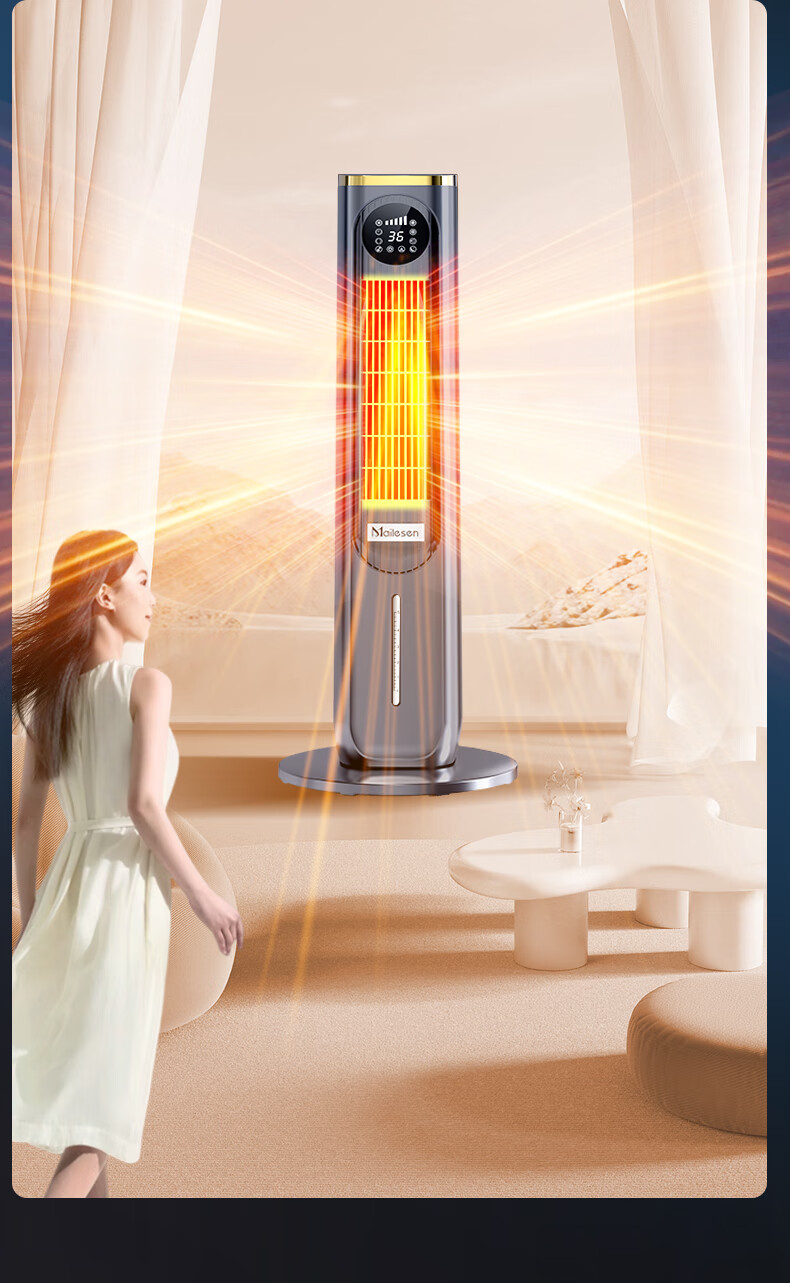 Melosen German Voice Heater Electricity-Saving Fan Heater Household Hot and Cold Air Conditioning Fan Energy-Saving Artifact Whole-House Large Area Heating Cold Yao Gray Deluxe Voice Remote Control Model + 36-level Heating and Cooling + Free Ice Crystal Box