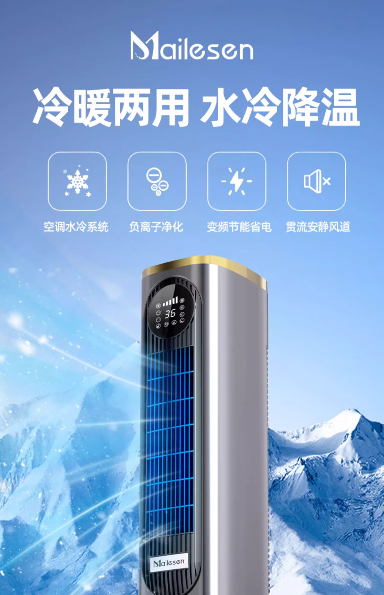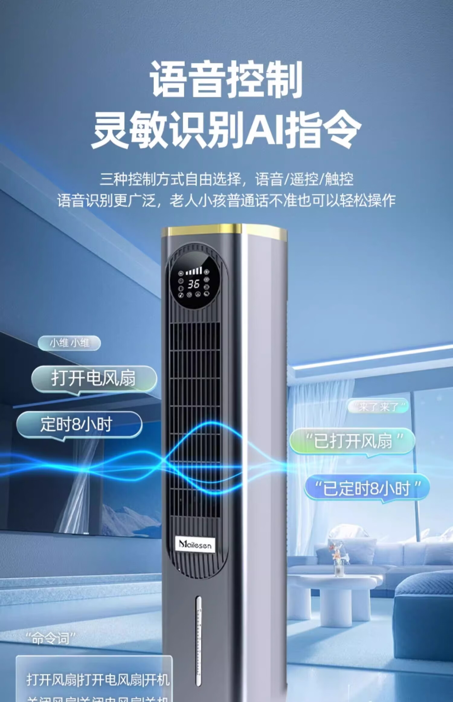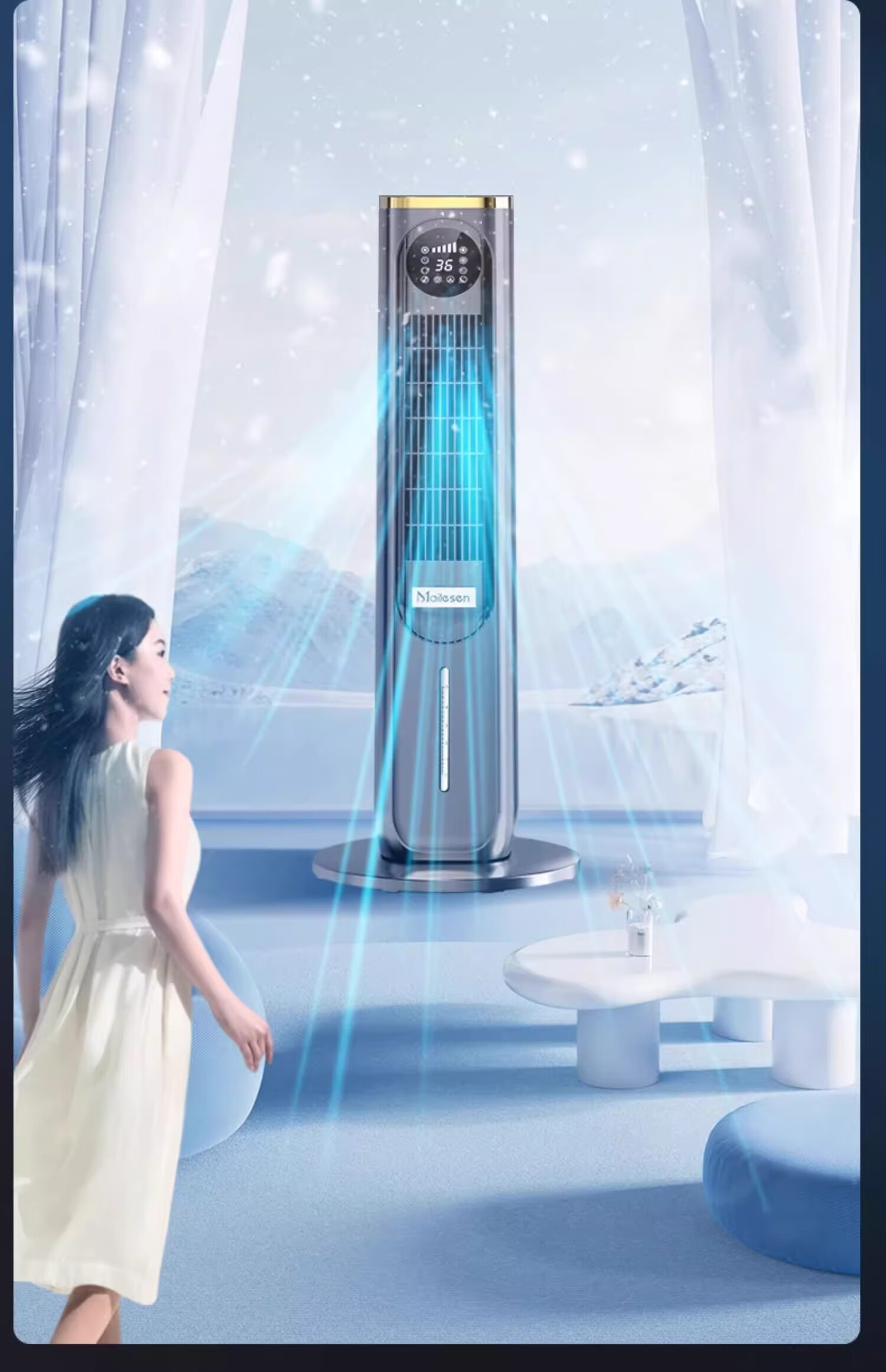 Melosen German Voice Heater Electricity-Saving Fan Heater Household Hot and Cold Air Conditioning Fan Energy-Saving Artifact Whole-House Large Area Heating Cold Yao Gray Deluxe Voice Remote Control Model + 36-level Heating and Cooling + Free Ice Crystal Box