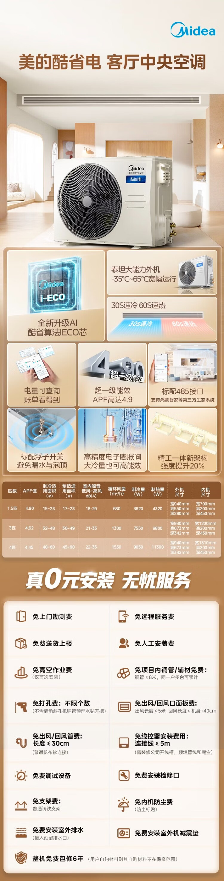 Midea Central Air Conditioning Cool Energy Saving 85 Embedded Duct Machine One Large 3 HP 4 HP Super First Class Energy Efficiency Pure Copper Tube Whole House Intelligent Connectivity One Price All-inclusive Cool Energy Saving 3 HP First Class Energy Efficiency Leading Quality (32-48 Applicable)