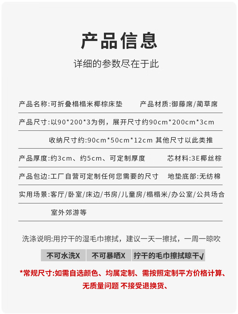 KOKO&KITTY Foldable Tatami Mat School Children's Lunch Mat Customized Hotel B&B Coconut Palm Core Hard Mattress Single-sided Corn Rattan Mat Surface-05 Side-Thickness About 3CM 50*150 Thickness About 3CM3 Folding-Corn 05