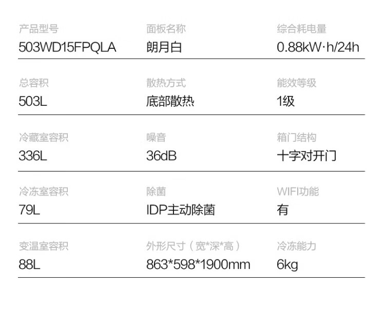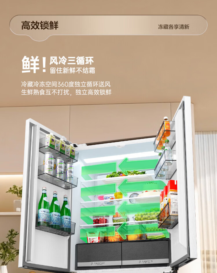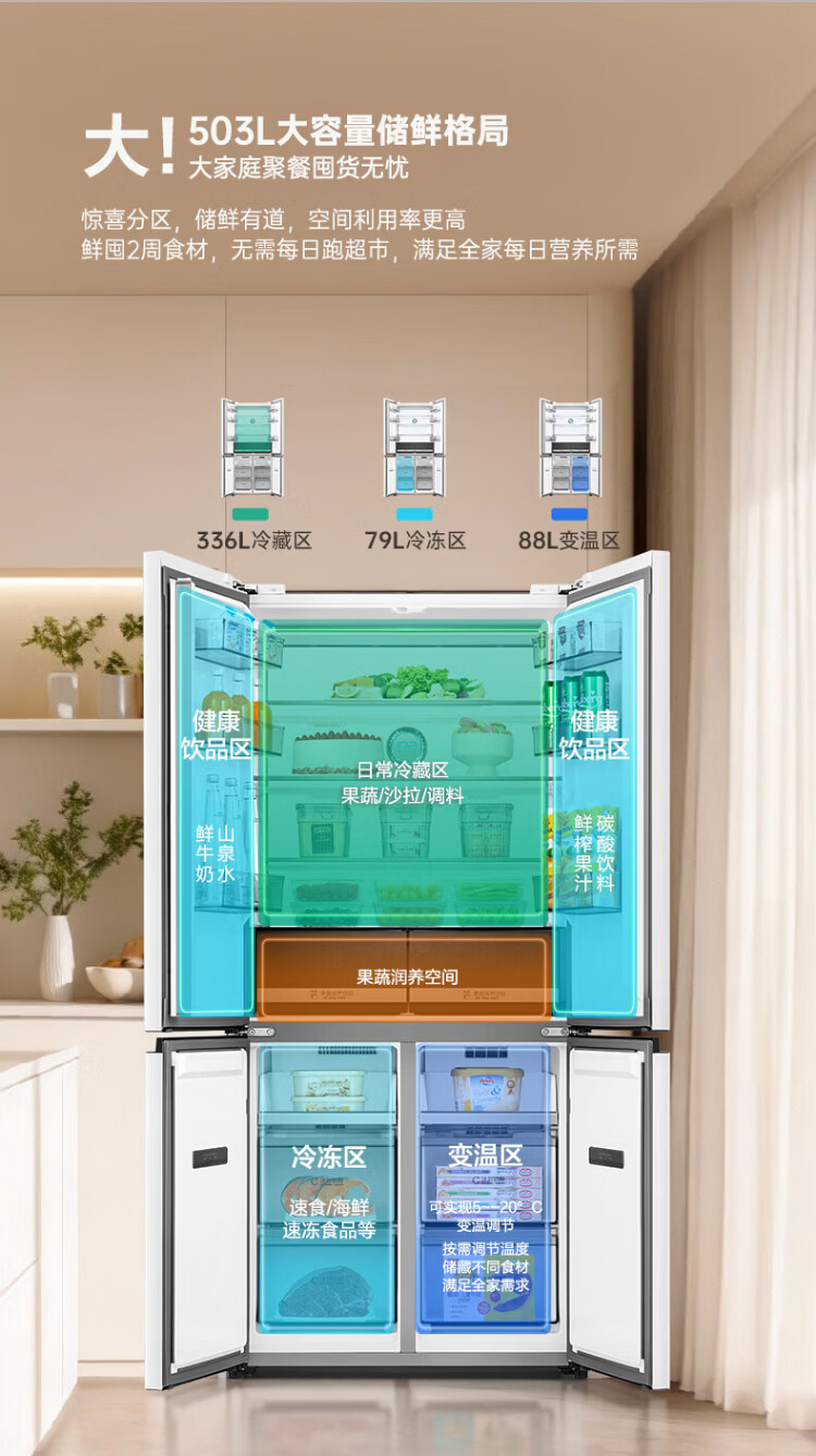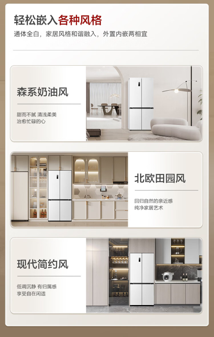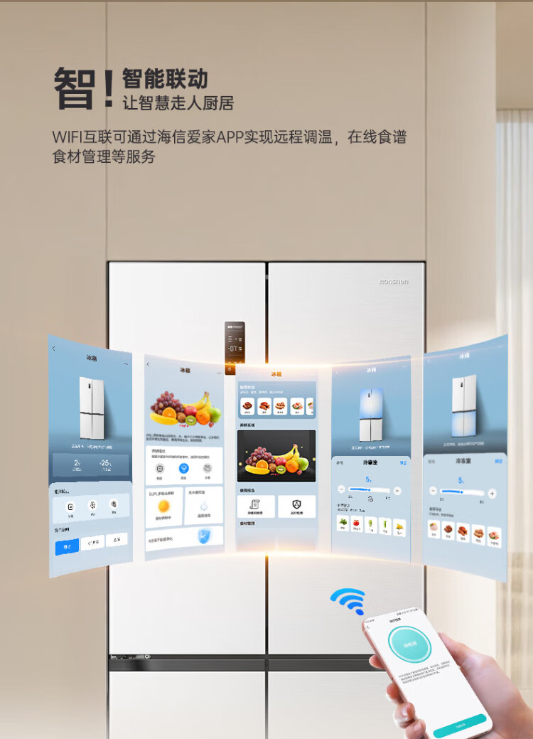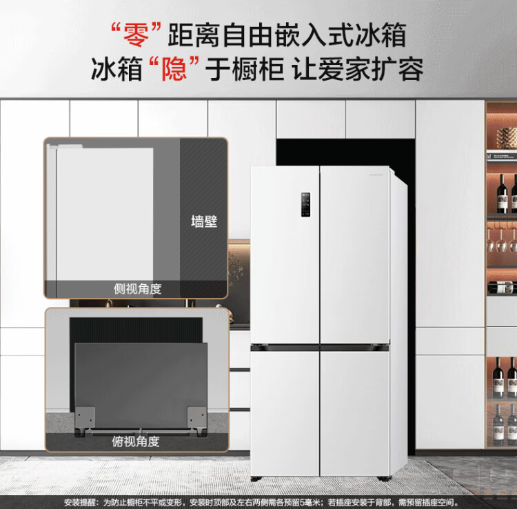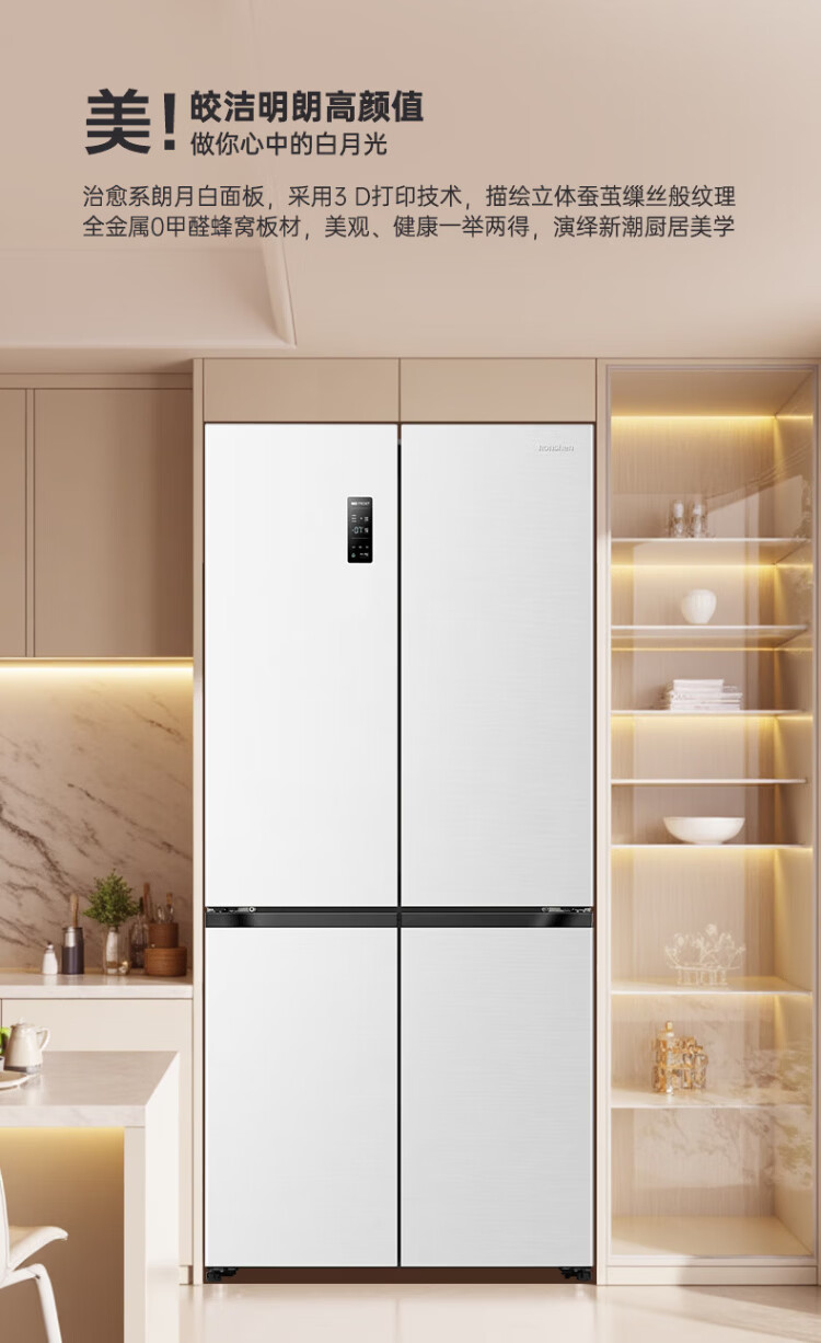 Rongsheng 503pro zero-embedded cross double-open four-door IDP net-odor ultra-thin refrigerator household first-class energy efficiency air-cooled frost-free BCD-503WD15FPQLA white national subsidy