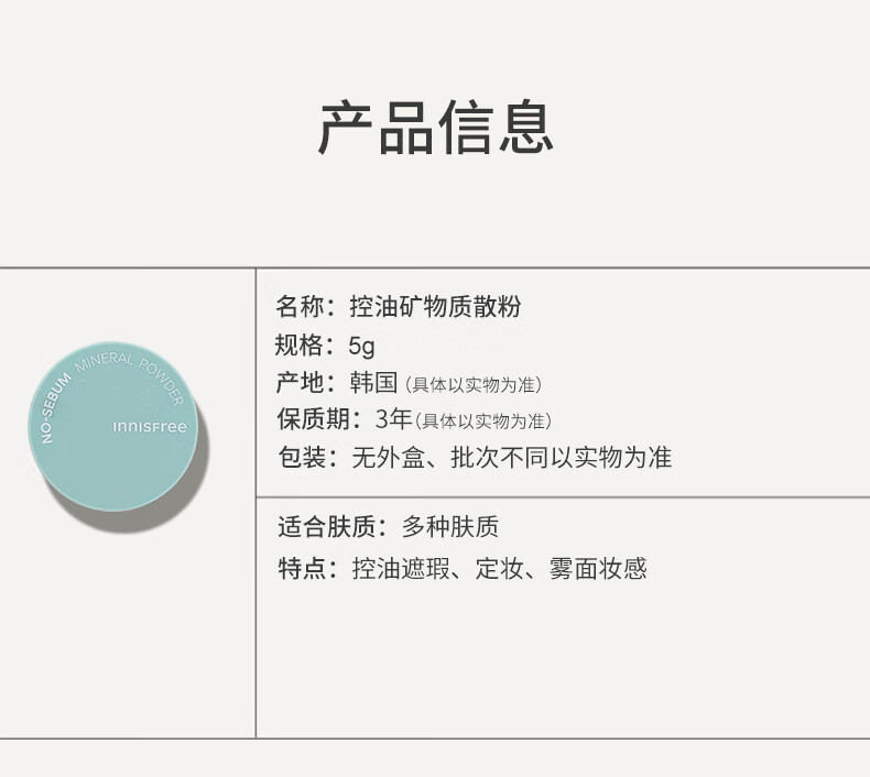 Innisfree Mineral Loose Powder 5g Powder Mint Setting Powder Oil Control Long-lasting Refreshing Natural Honey Waterproof and Sweat Concealer Genuine 2 Boxes Mineral Loose Powder 5g (Valid for 26 years and December)