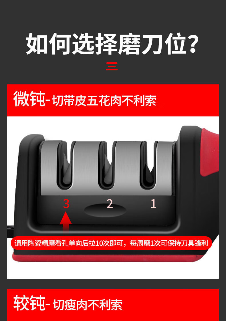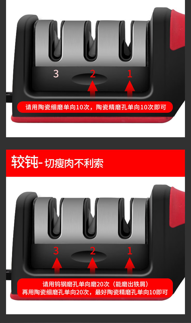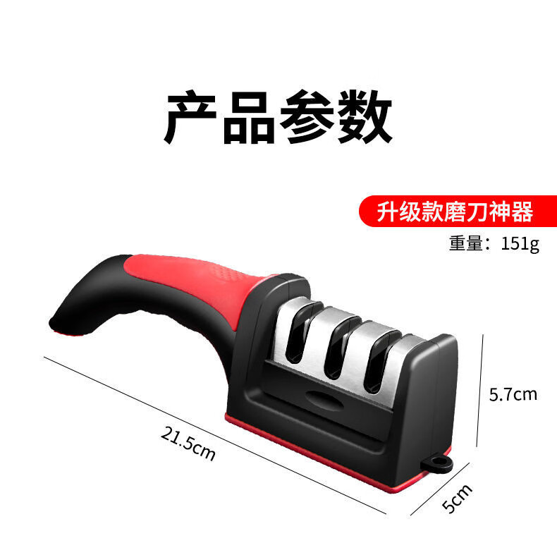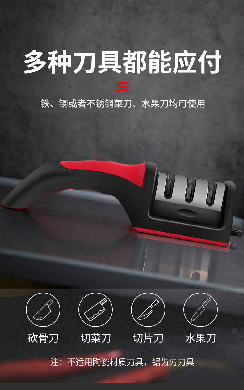 The household quick knife sharpener is easy to use and can be hung with a tail hook. It is a three-stage knife sharpener, a multi-function handheld tool for sharpening and shearing.