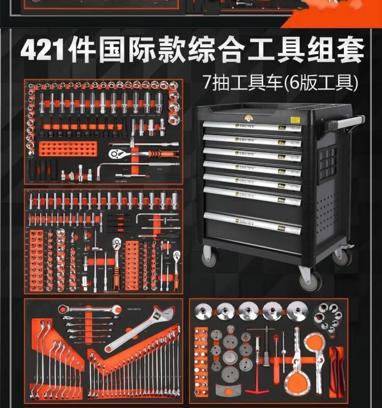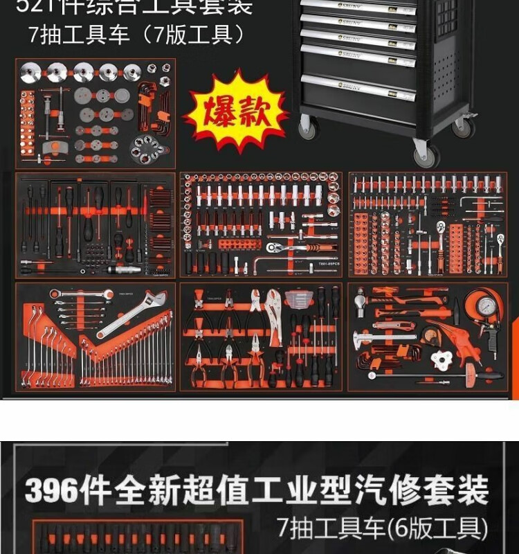 463 pieces, 521 pieces, seven-layer heavy-duty vehicle repair tool cart, tool cabinet, trolley-type tool box, auto repair set, seven-layer luxury tool cart