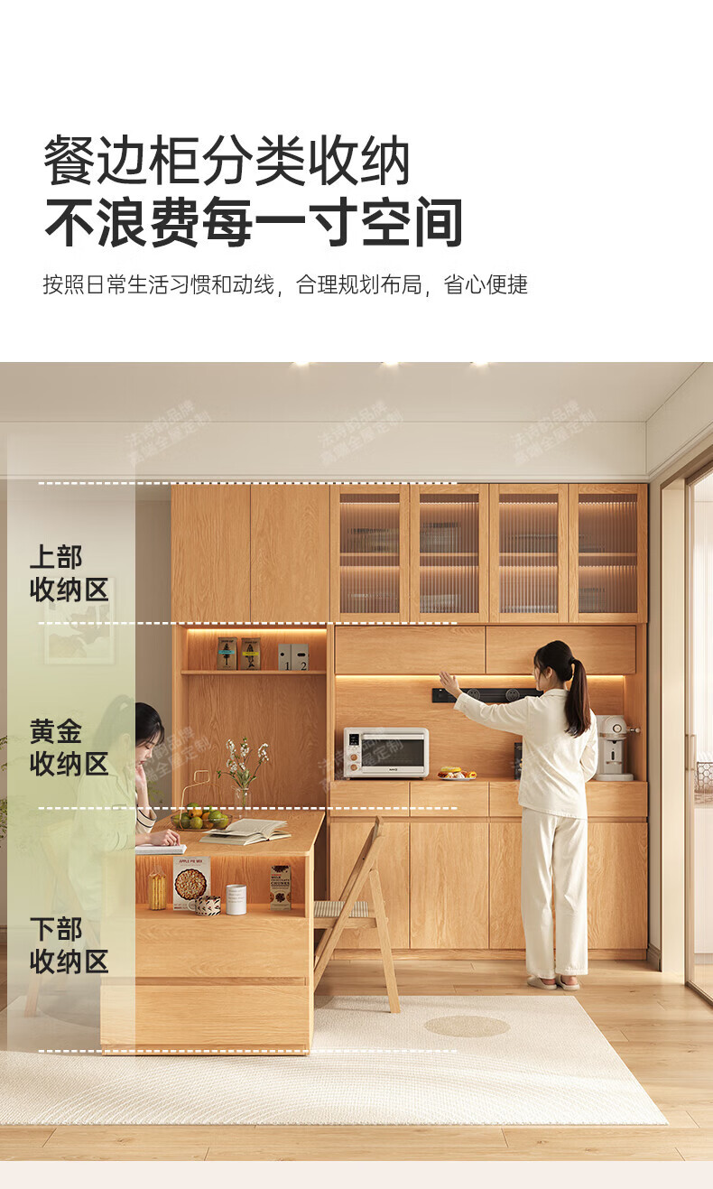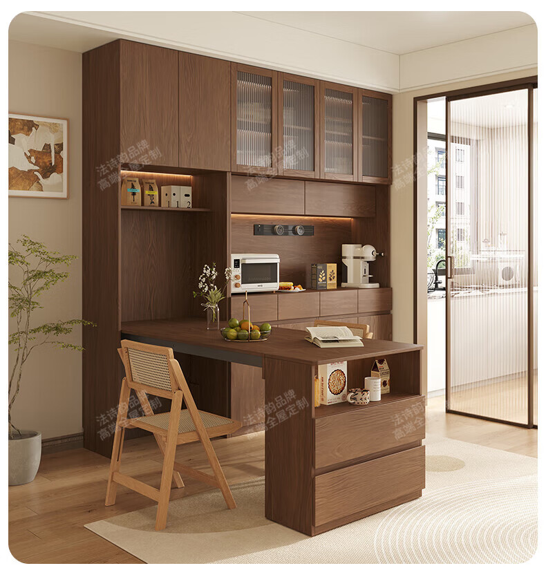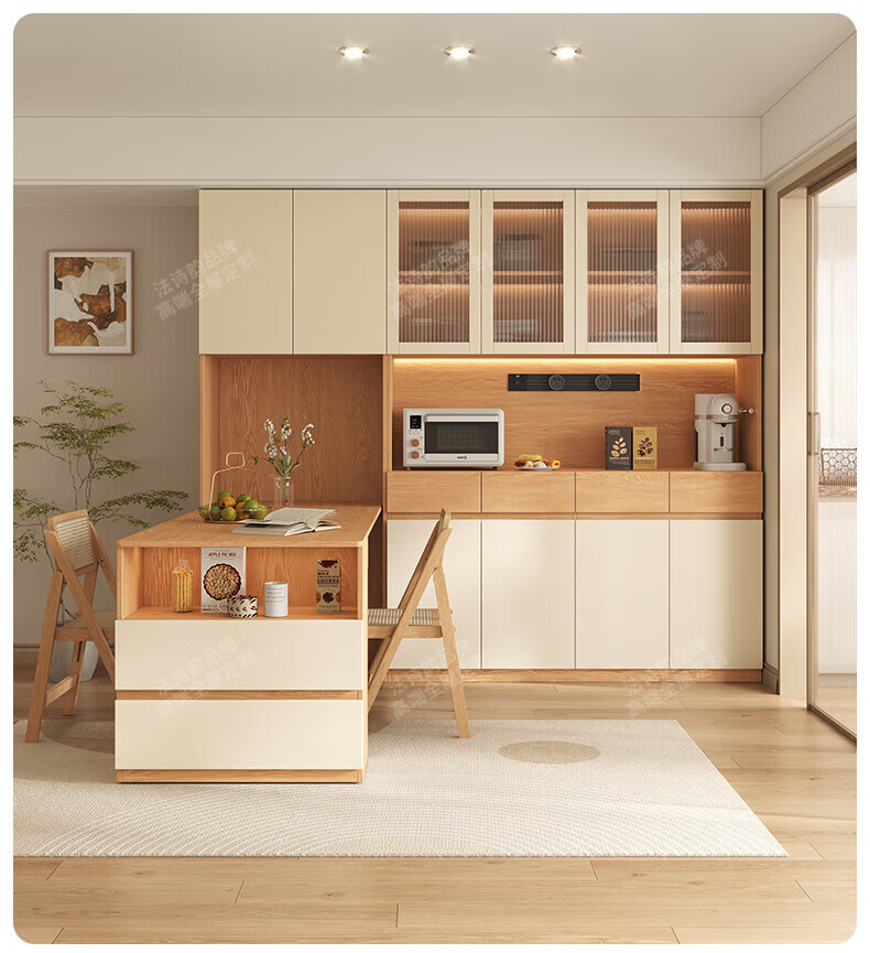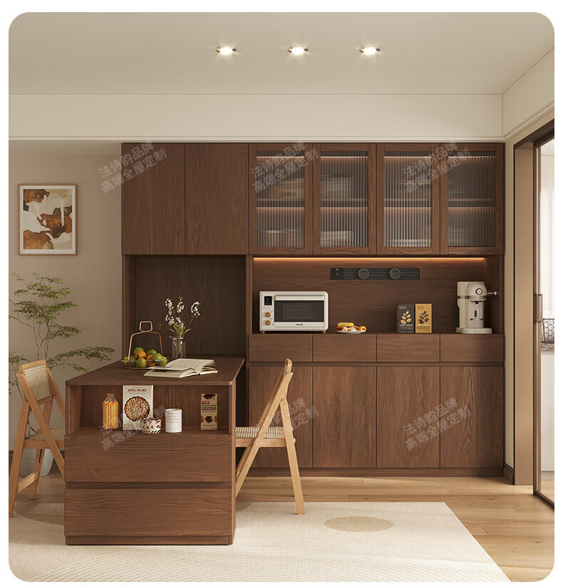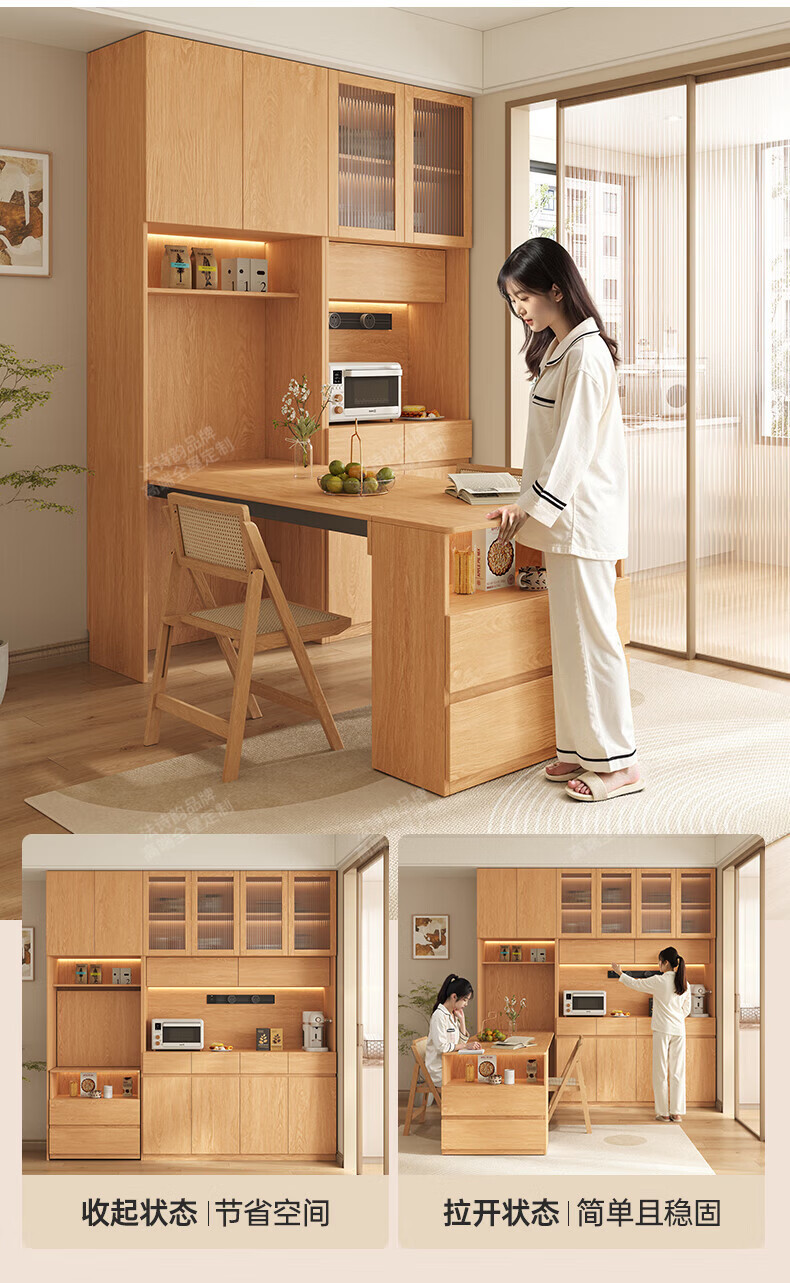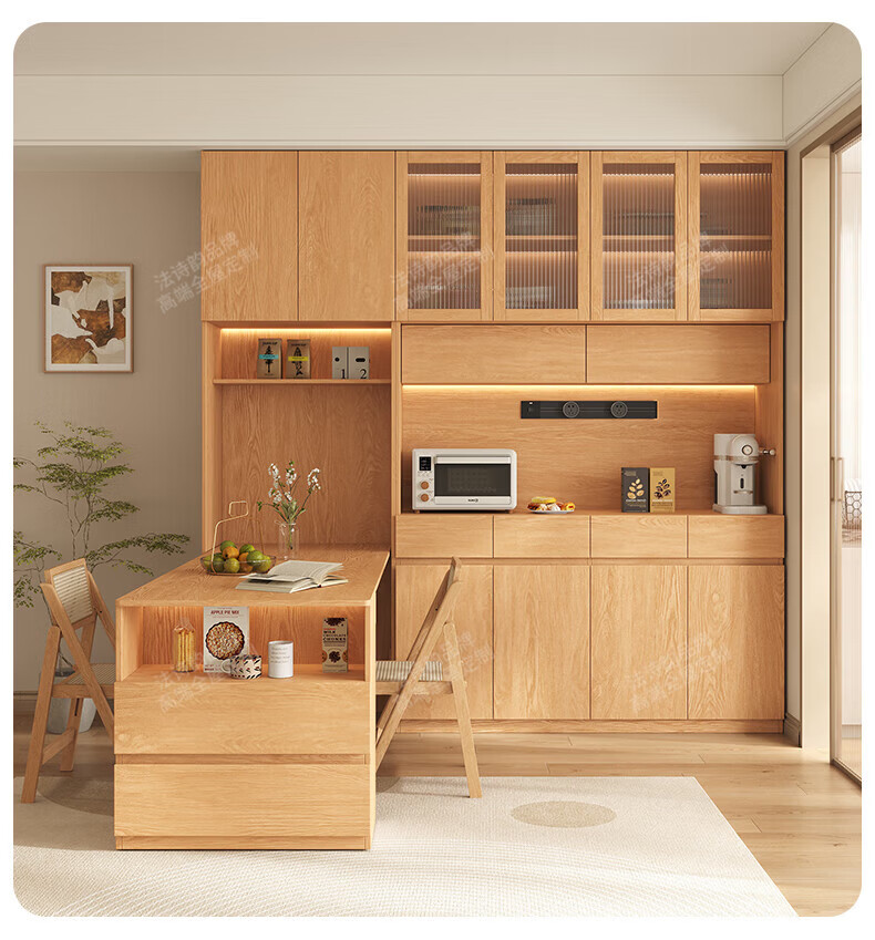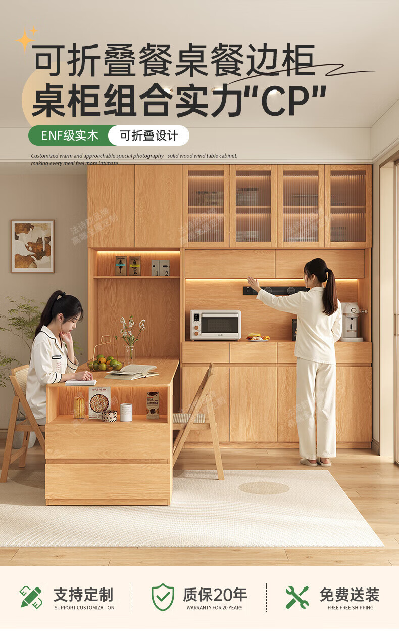 French poetry custom solid wood sideboard folding dining table integrated wall-to-top cabinet hidden oak glass bowl cabinet 1.6 long * 2.0 high (four-door sideboard) ENF maternal and child grade environmentally friendly antibacterial 18MM thickened oak